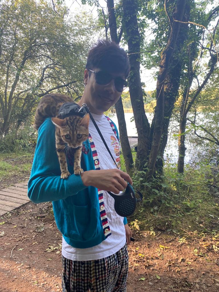 Posts 298 Likes 532 aggie 路Oct 10, 2021 tad How鈥檚 this for random鈥ent for a walk today and come across this guy out with his cat on his shoulder. Poor little guy! ( the cat I mean...) Doesn"t seem very happy to be on a leash....