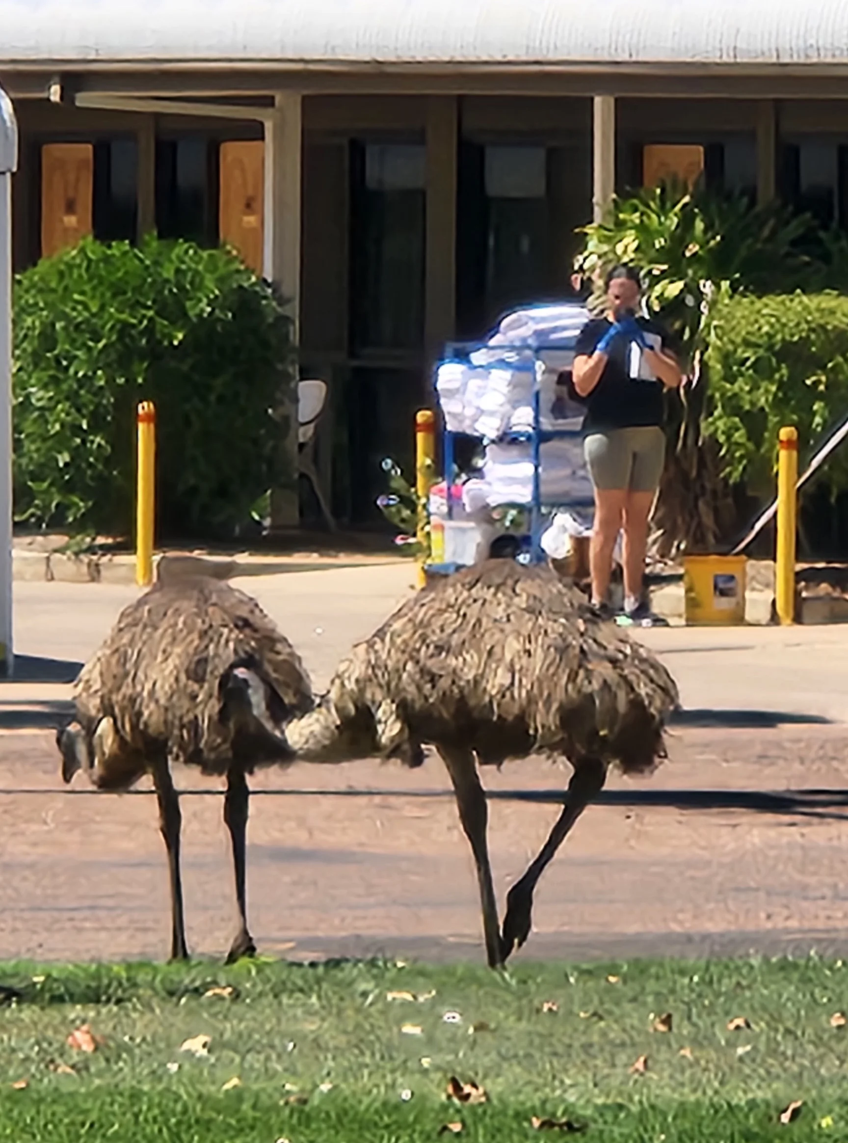 Posts 418 Likes 804 TasMike ·Oct 19, 2025 Longreach, Central Queensland Torrid is a good description - 42 degrees today. Emus taking a stroll through a local motel. They must have had a good season, they are everywhere this year. For those non-Australians present: emu is pronounced eem-you, not eem-oo.