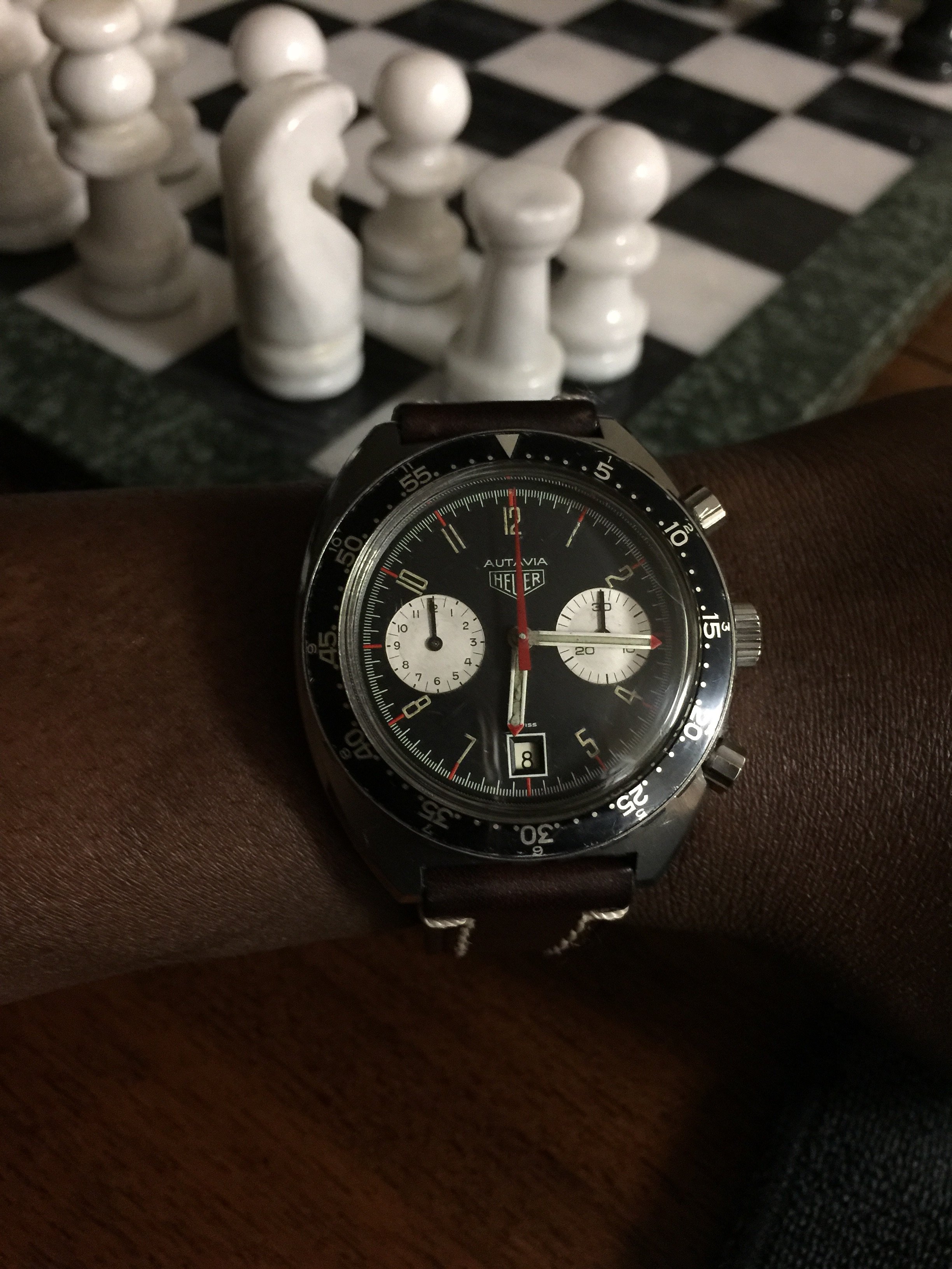 Beautiful watch..and even more special given that your Dad wore it. These Autavias with arabic numerals are really quite rare, especially one in this condition.