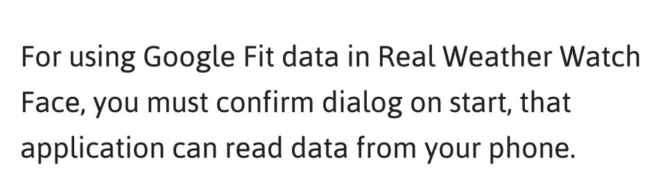 ·Hi Im using the above watch get Google Fit to face which I really like but I don't seem to be able to load data onto it. I am using Fit separately on my watch and it has the data on it. When i use the real weather watch face and click on the fit it says enable locations which i have done and it also says "Google Fit did not return any data reopen this data view to force data update" but not entirely sure what to do. Any help much appreciated. thanks