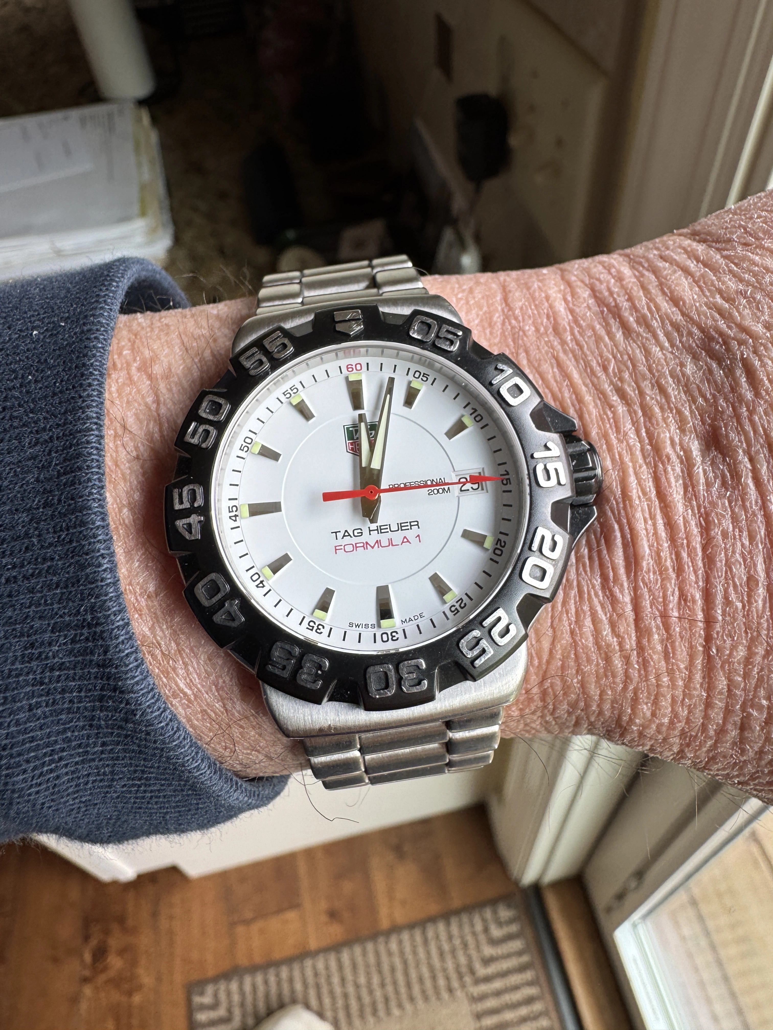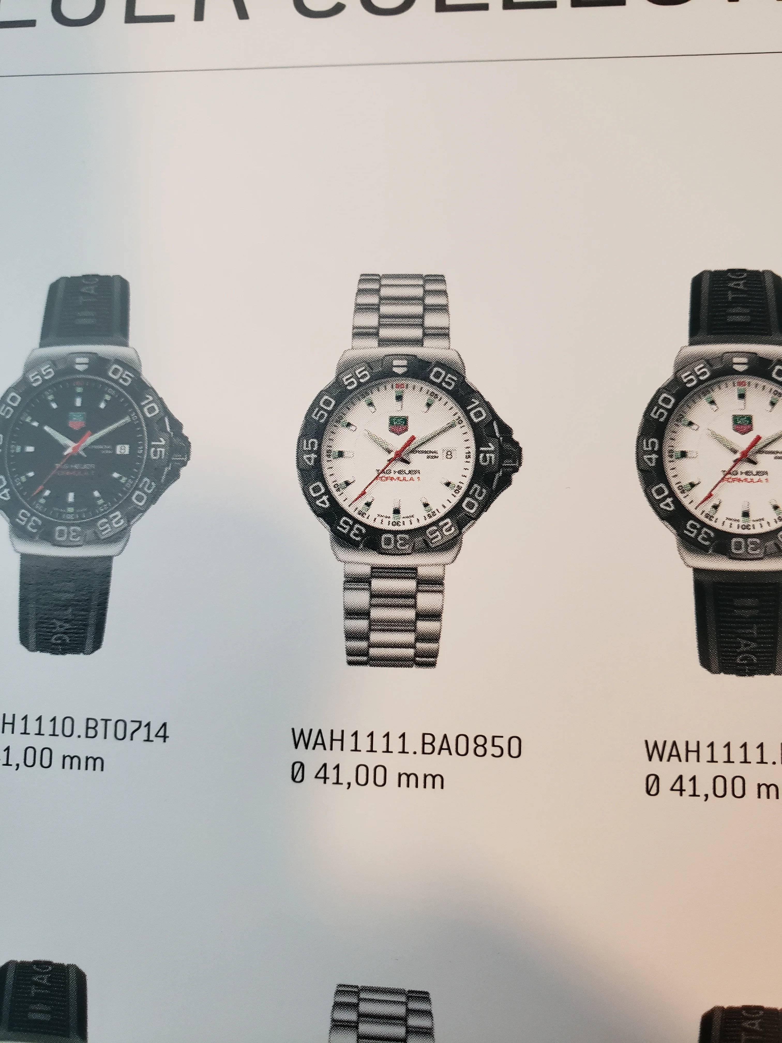 ·In 2008, for a work accomplishment, I received a Formula 1, WAH1111.BA0850 JF0640, steel, black bezel with raised numbers, white face. The codes I have seen in this discussion don't match up to this watch. Any idea when it was actually built? Great timepiece, still keeps excellent time and still getting 3 years or so in battery life.