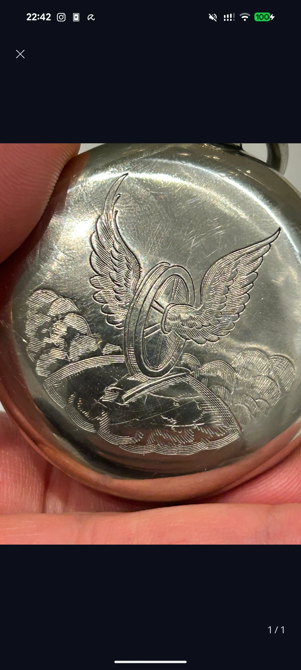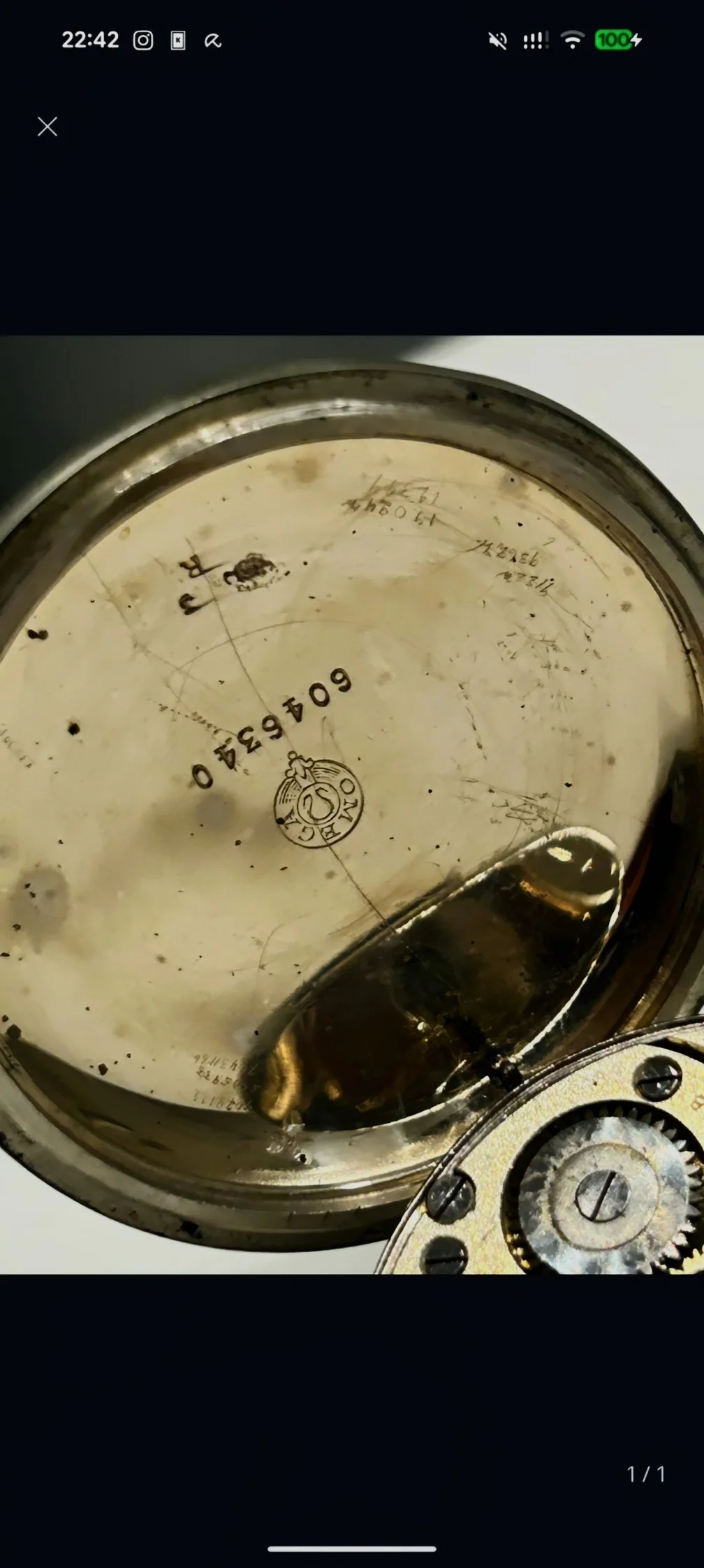 I need help identifying a small mark inside the caseback of this old Omega pocket watch, estimated around 1935. It is located above the letter “r” and is not the large maker’s stamp in the center. The mark appears scratched or lightly engraved rather than punched, and I cannot match it to any official silver hallmark. Could someone tell me what this mark is or what type of marking it might represent?