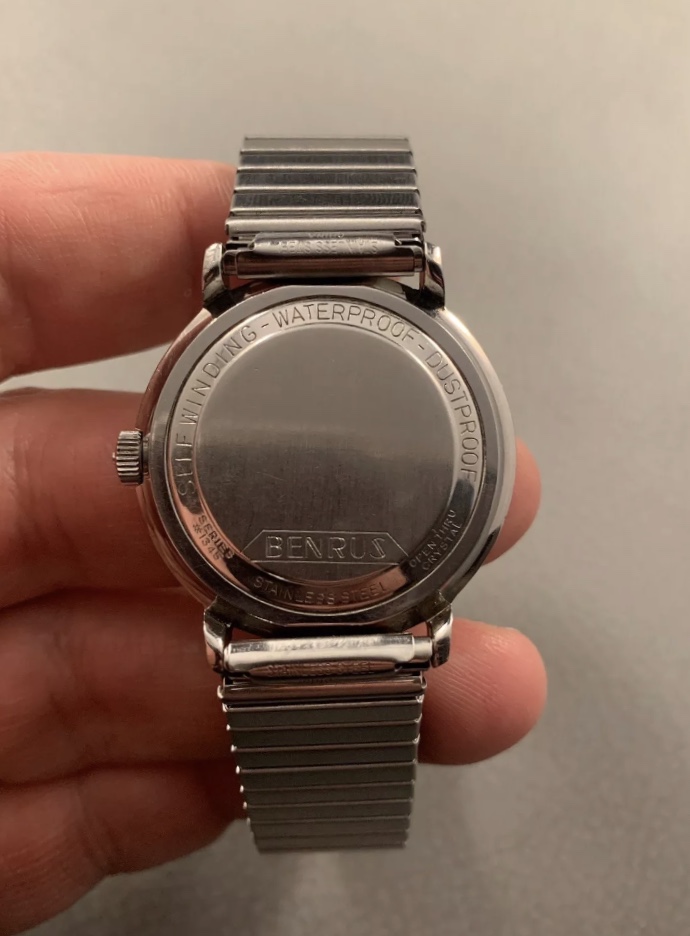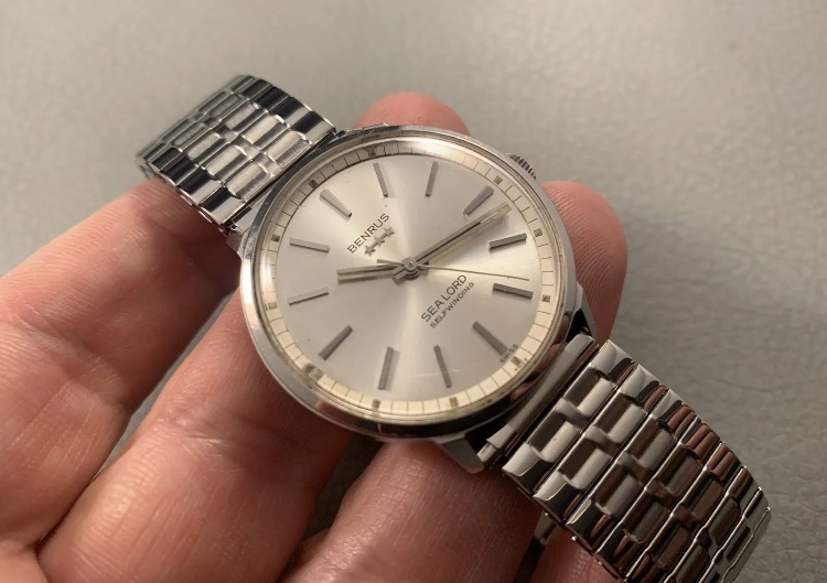 Here is another great value and one of my personal favorites from Benrus (I have owned two of these- gave one to a close friend). Stainless case, ETA movement (yes, Benrus used ETA at this time), shallow lugs and semi-tucked crown. These are a solid 35mm and wear much larger due to the slim bezel. Look great on a variety of flat endlink bracelets and straps.