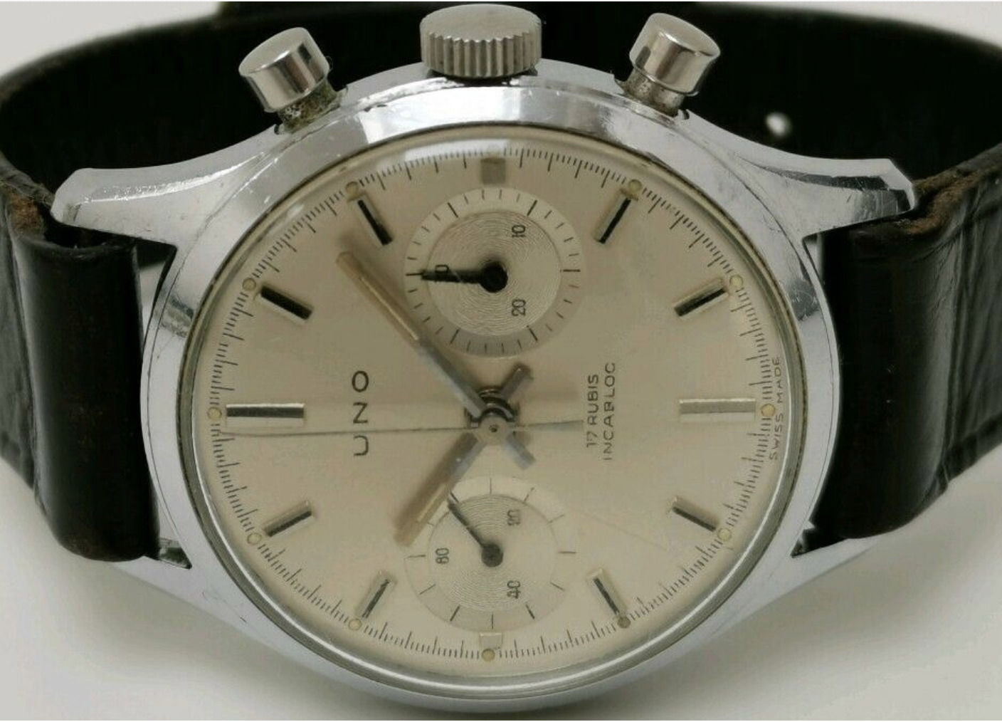 Here's one I've been trying to convince myself not to buy. Great looking vintage chrono with a very cool case and dial and not a bad price at all. Unless I'm missing something.