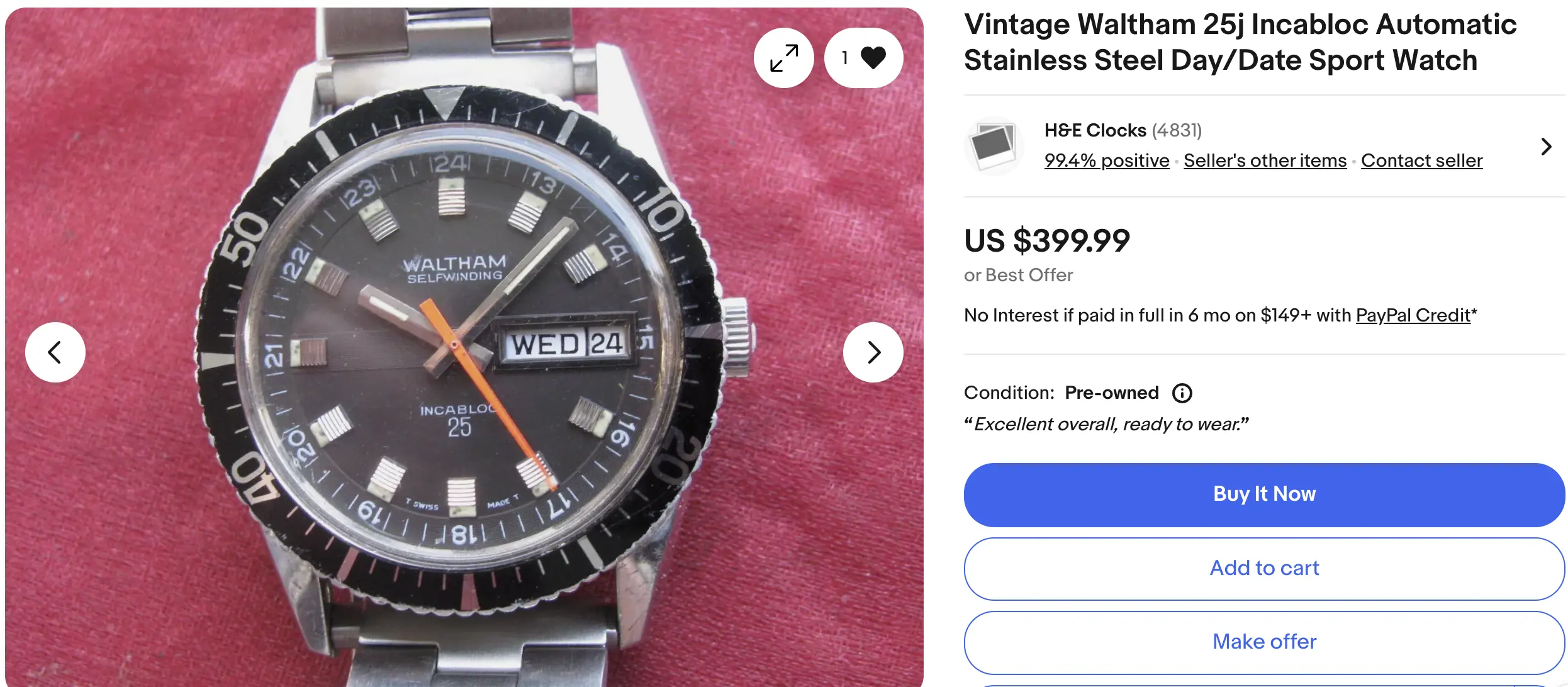 Nevertheless, I would ask the seller for more pictures, outdoors in daylight. BIN of $250 is reasonable; seller says it works. It might even have its original mid-50s (aftermarket) strap, which has the classic wide single keeper.