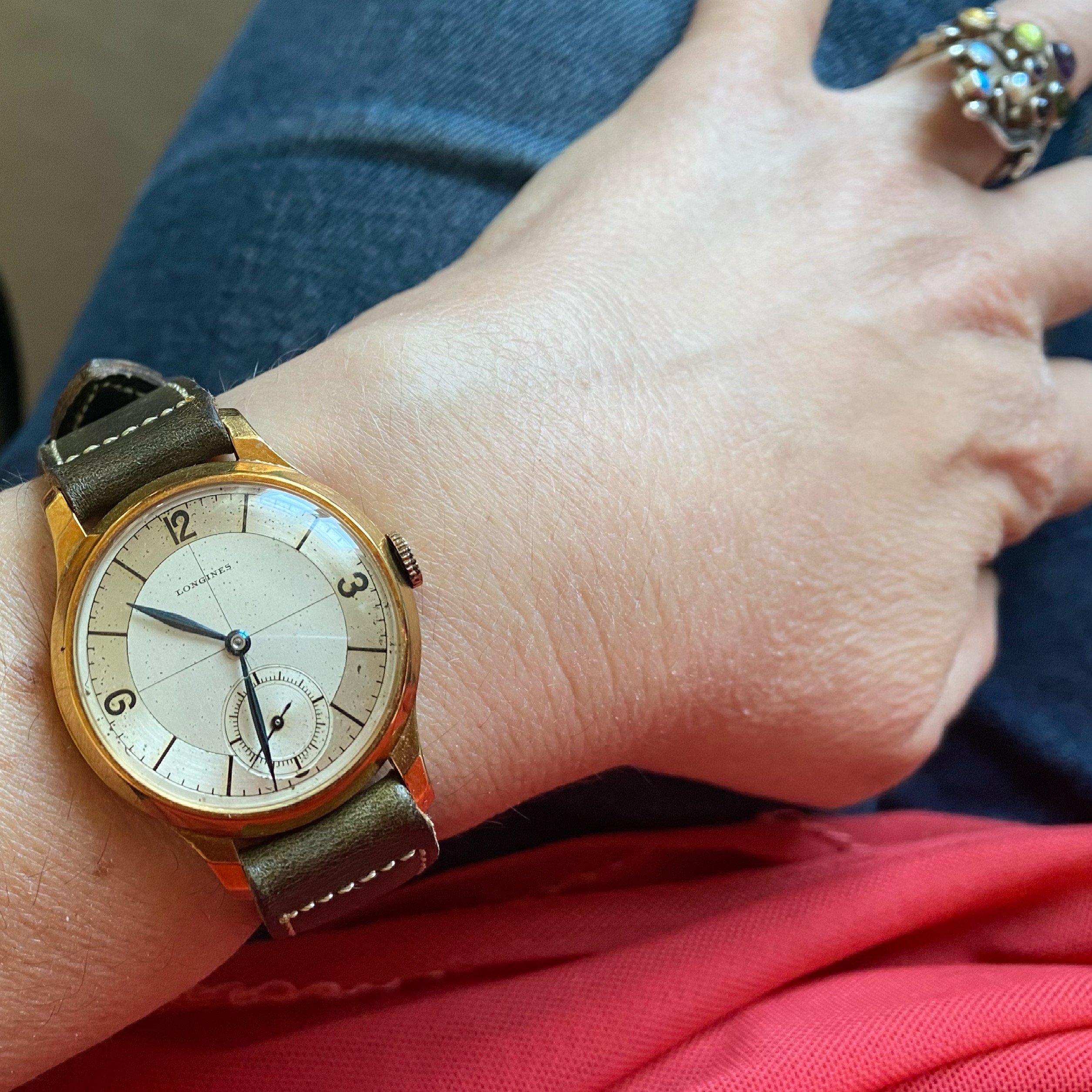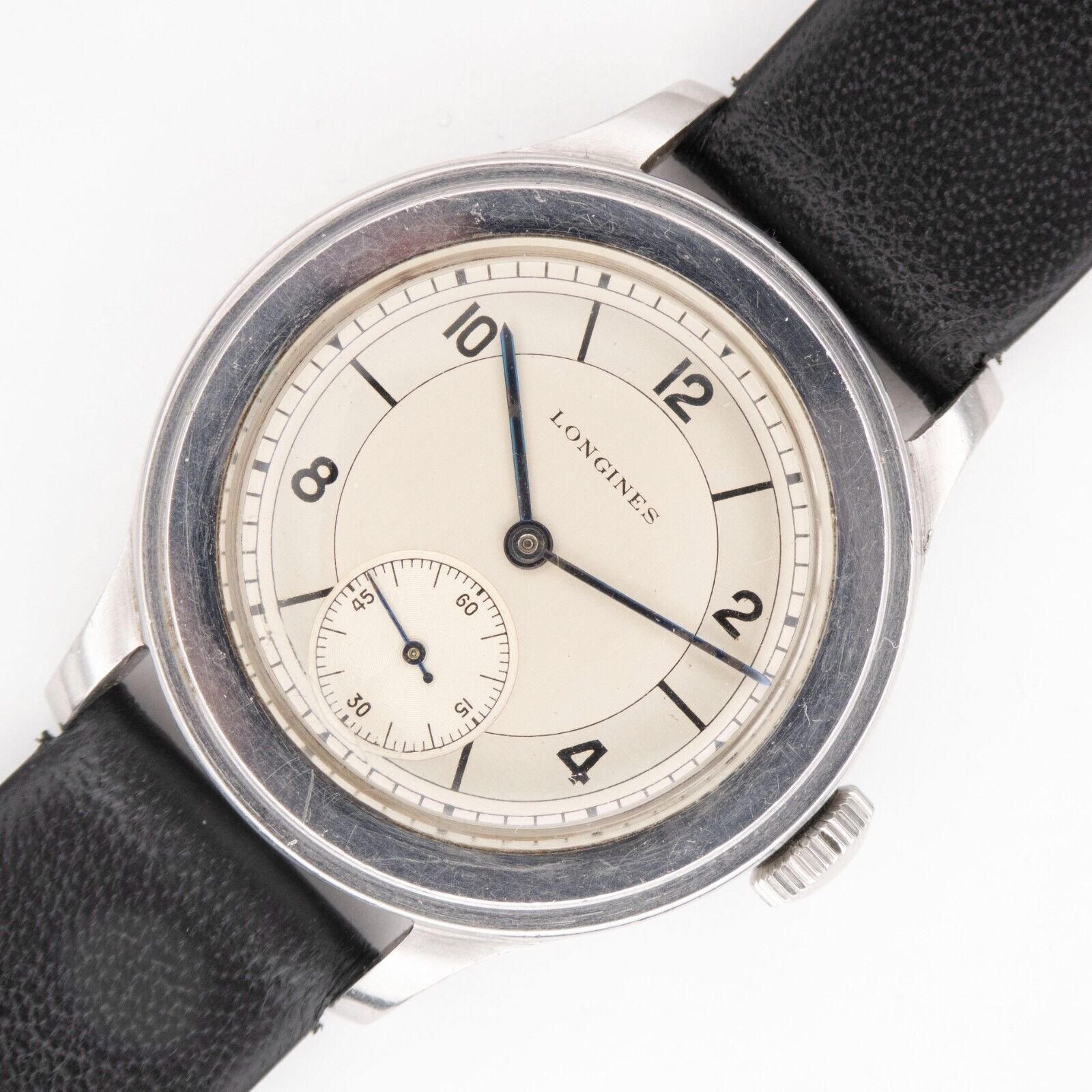 One important thing I would add is that the dial is a typical 1930s dial- how it landed together with an early 1940s case and a late 1940s movement is not so much of a mystery, given that this chunky case may well be bigger than the original one.