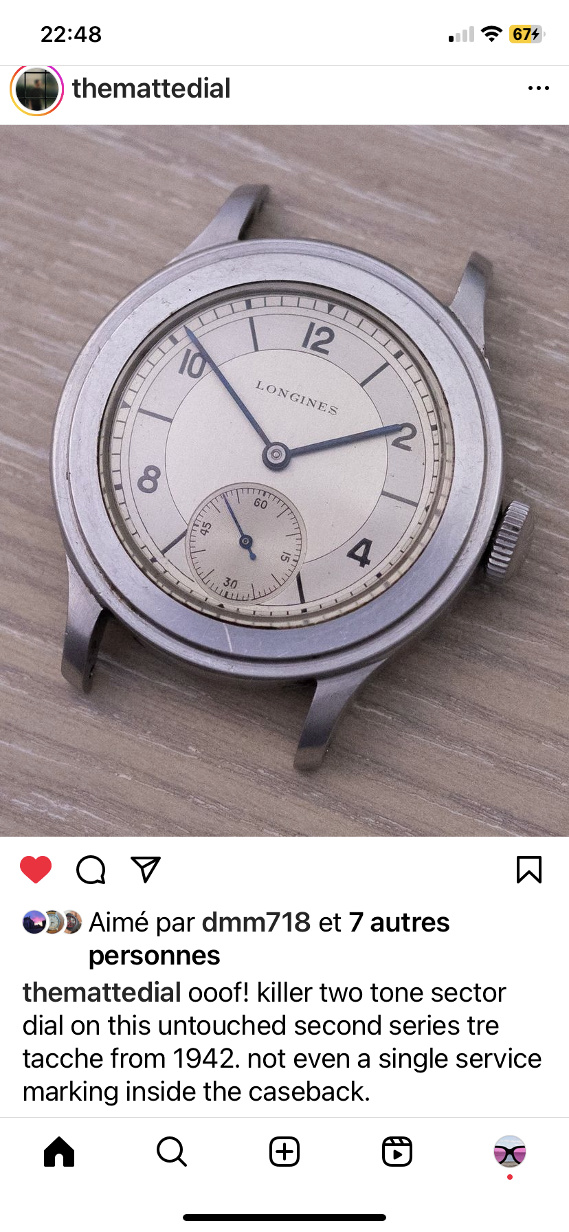 Apologies for not wanting to share the links, but I think it’s useful to know that the watch is being offered for sale as it was bought, as so many of these 35mm Tre-Tacche are sold with recently “upgraded” dials. The evidence I’ve seen suggests this is a legitimate and fresh to market example.