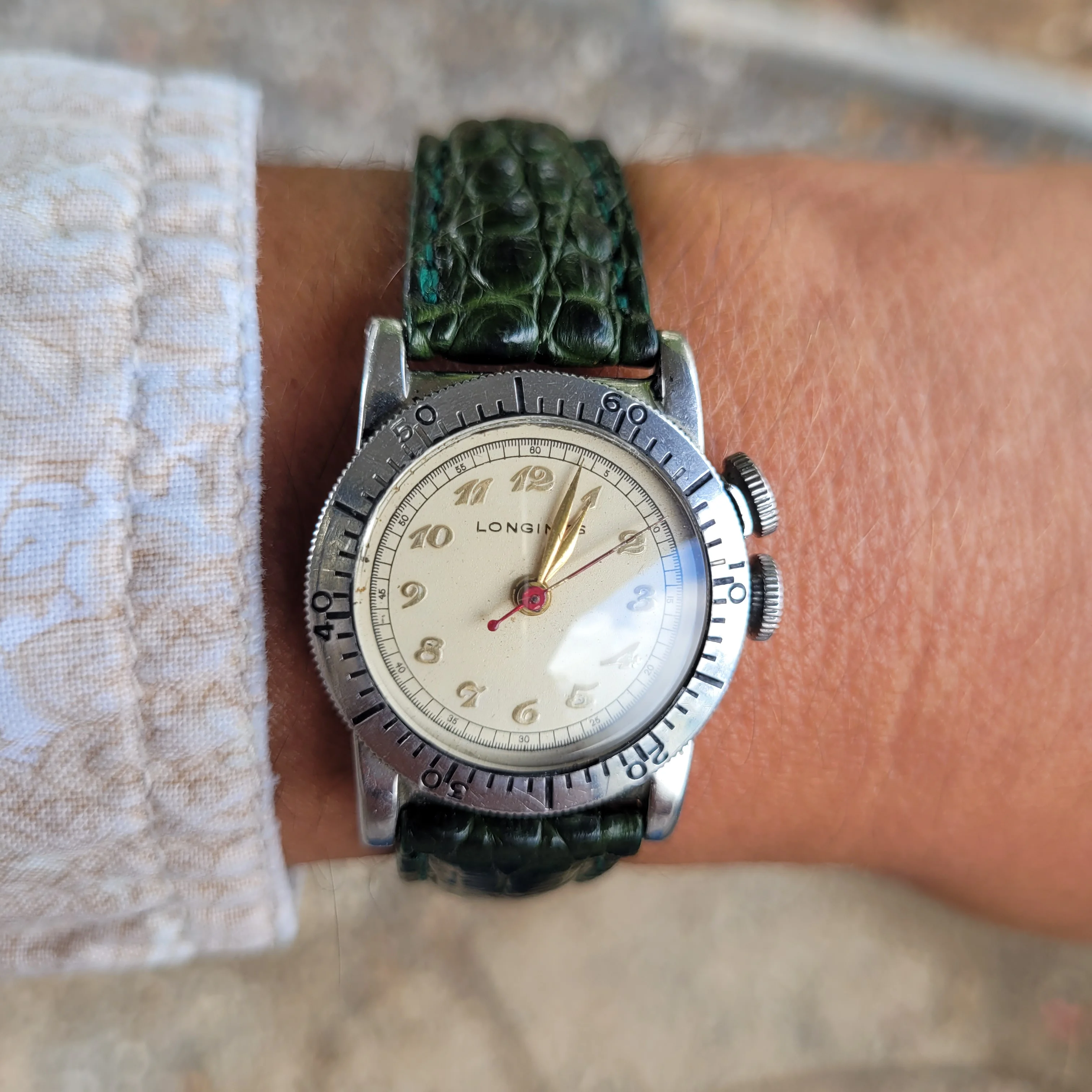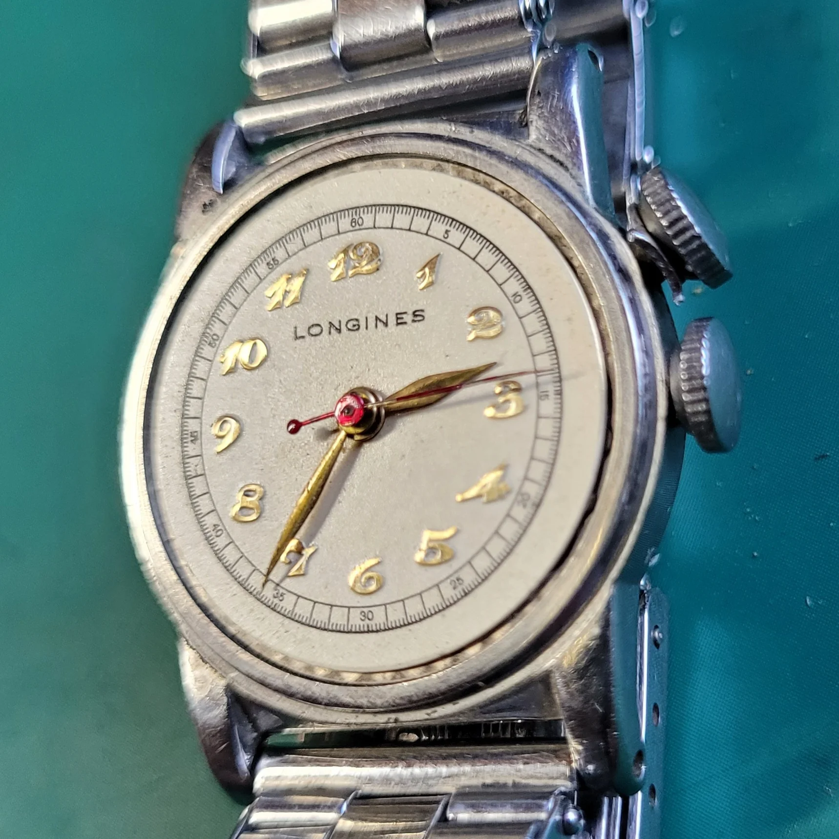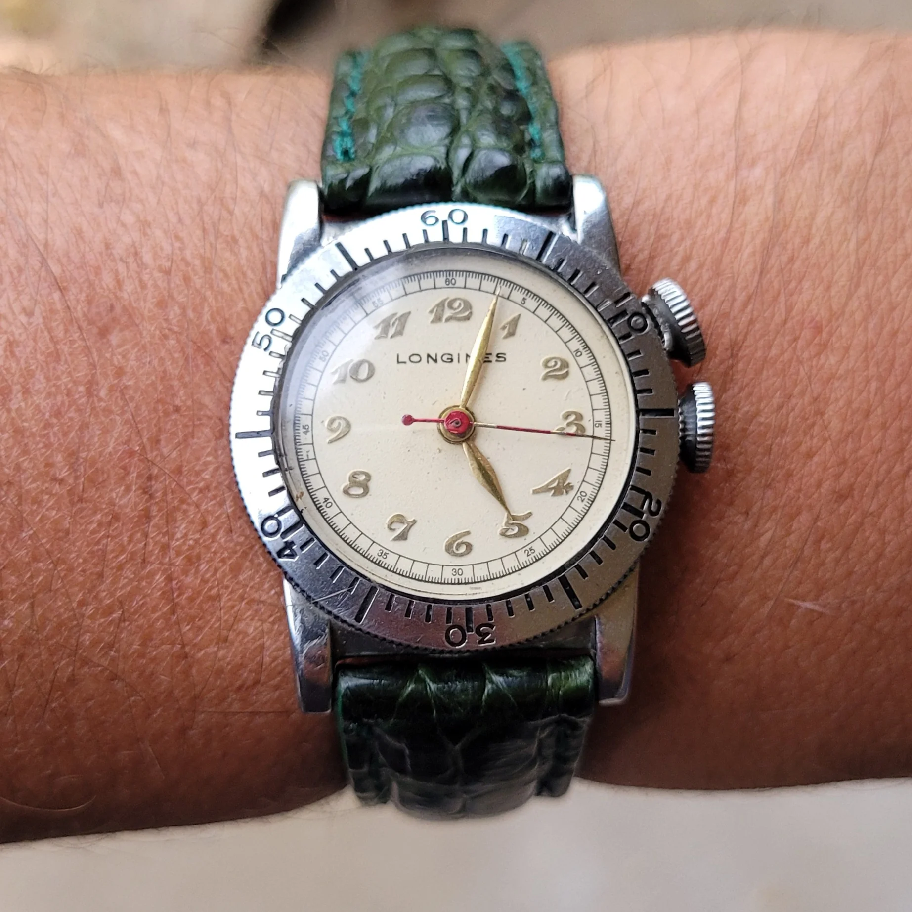 Howdy fellas, I'd like to consult the brain trust on my 1940 small Weems. I originally bought this watch figuring it was a redial based upon the 'S' and a couple of other inconsistent features of the print. Honestly, I don't think I've ever seen a sans serif print "Longines" I didn't wonder about. And, this was fine, because I bought it to steal the bezel lock off it for my A-11 project. Anyway, I digress. When the watch arrived I was rather pleased with it in hand. The S still is wonky, but my confidence that it was a redial was a touch shaken. I decided to wear it some, and to post it here. When no one here said anything about the dial being redone I started to talk myself into it being original with possibly a touch up here or there. Anyway, I posted this watch on the Longines group on Facebook a few days ago and two of the three comments were that it is a redial.