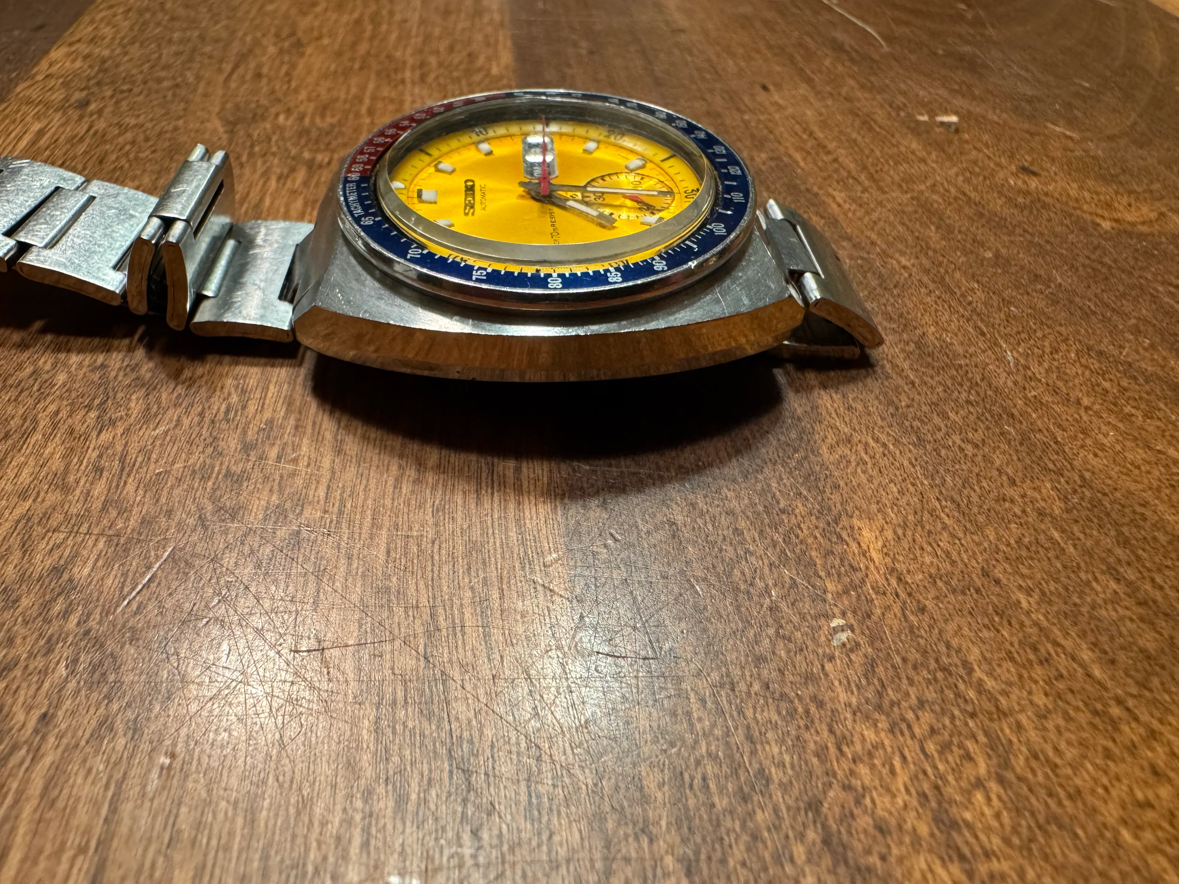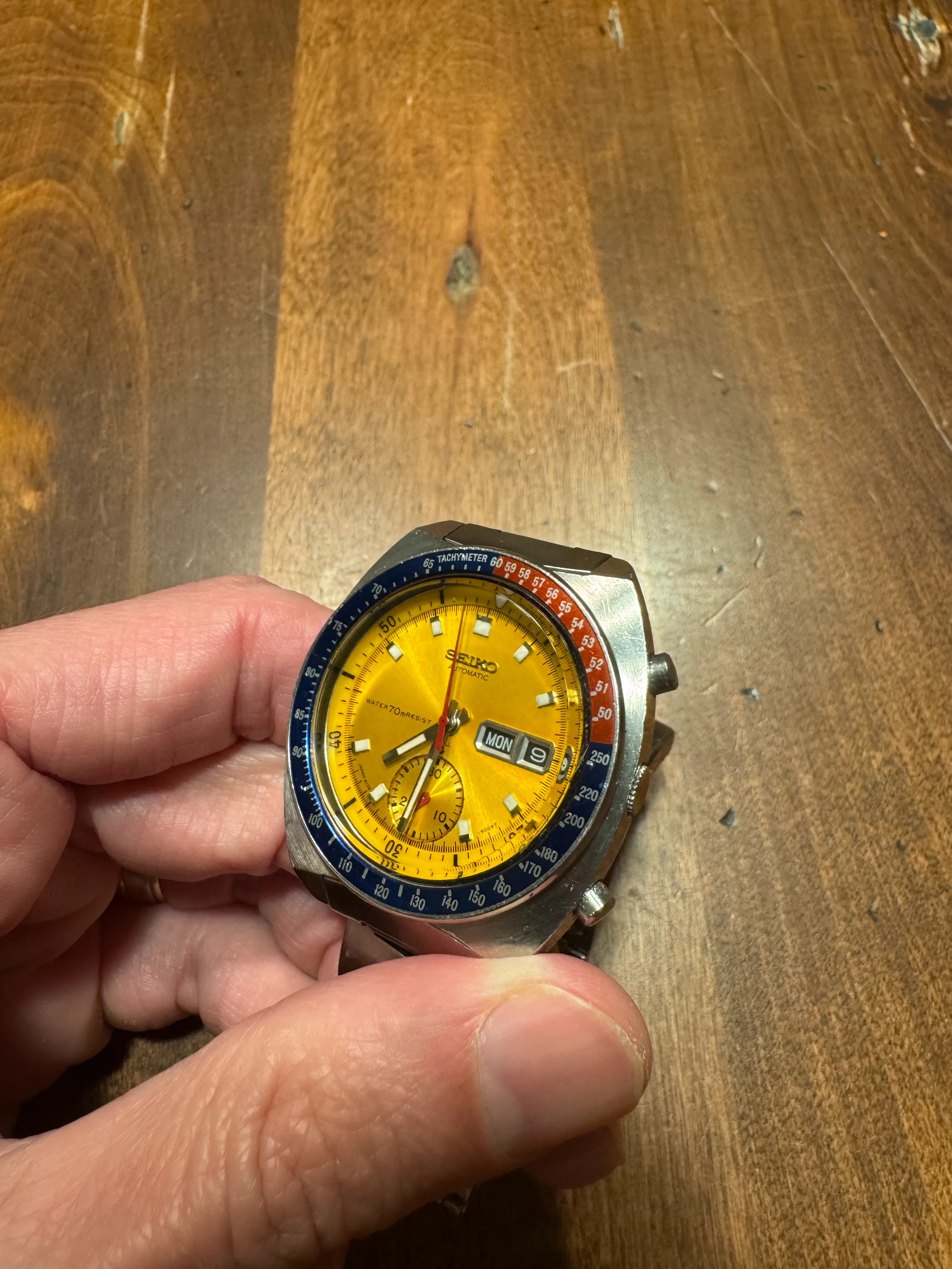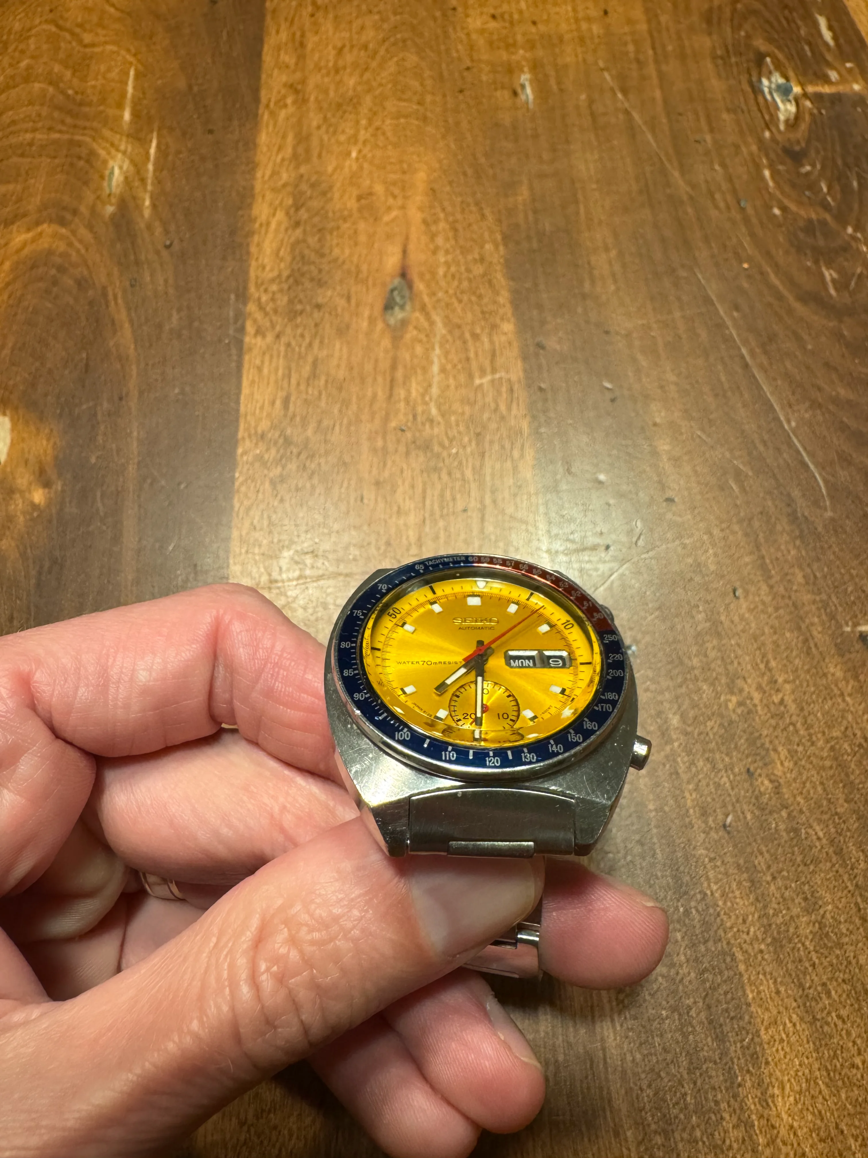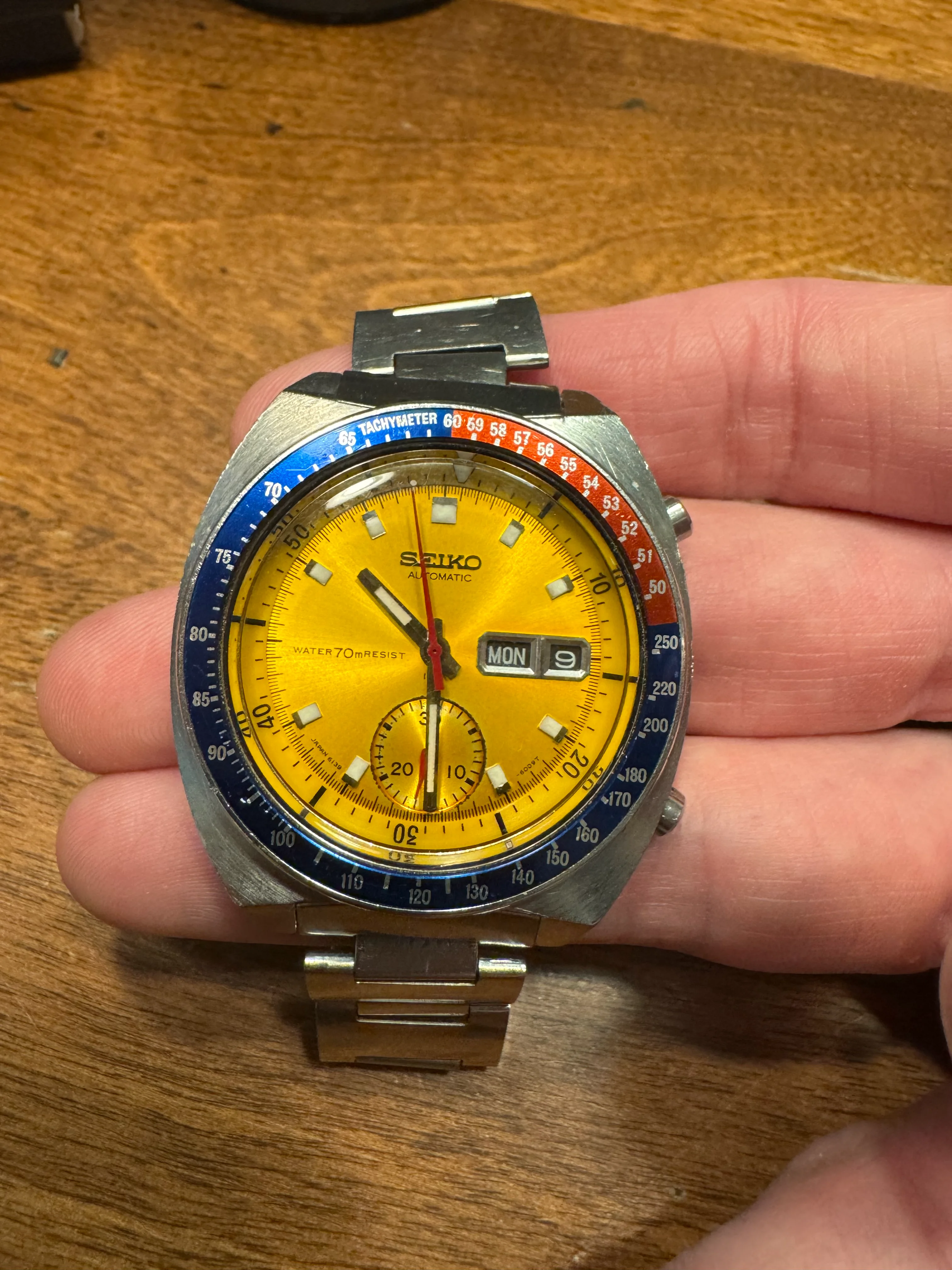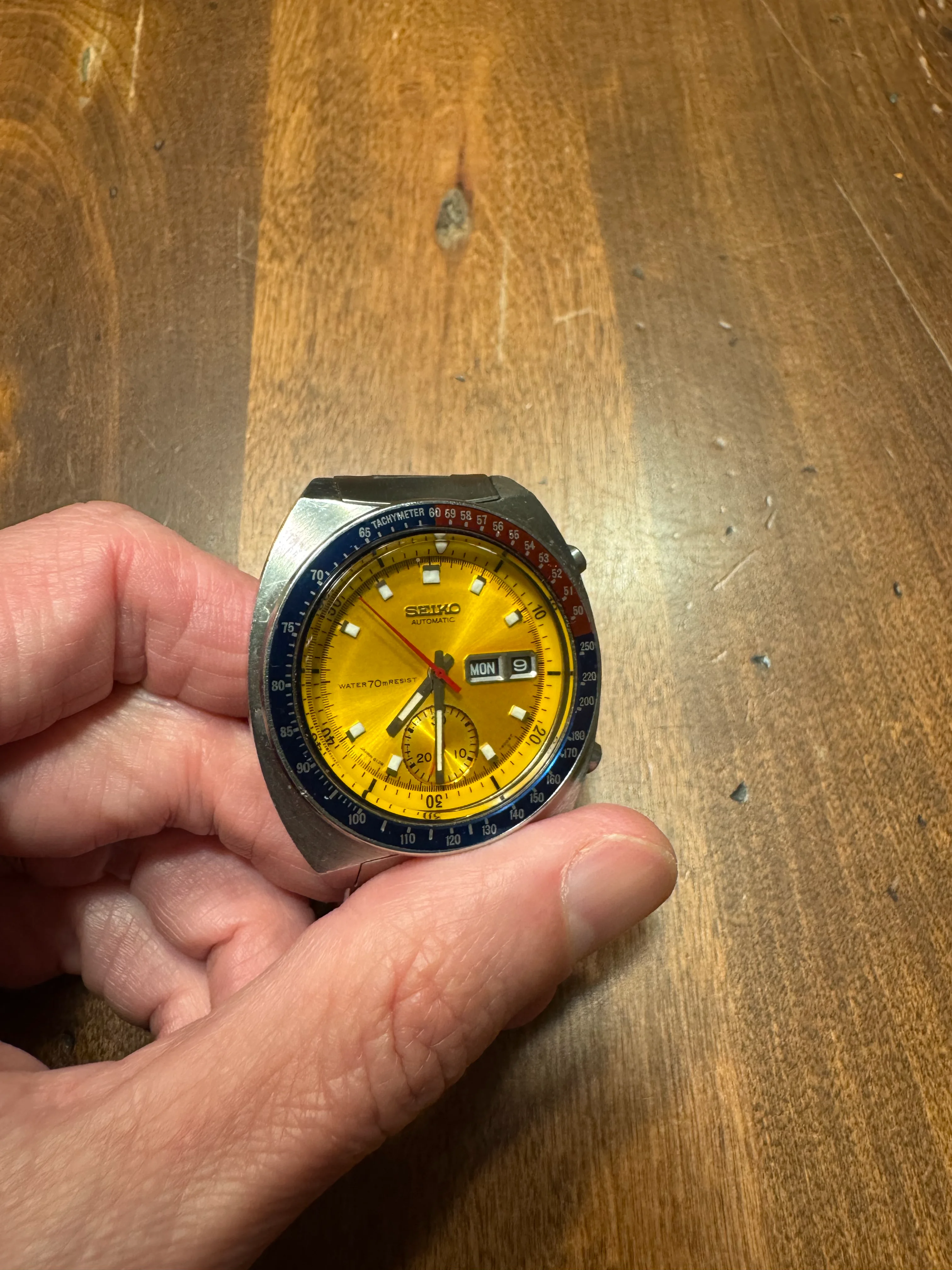 ·As noted in my other listing, I have to make room for a new watch I got the call on, so I am listing my 1971 Seiko 6139-7005 True Pogue with the "Resist" dial". For anyone who knows their Seiko's, they know that a Pogue is only a "True Pogue" if it has the resist dial and I will say this dial does shine. As for provenance I acquired this watch from Seth at Hub City Vintage 2 years ago, which means that it was also serviced within recent memory as well (5/23). You can validate that by comparing my pictures to his original listing here.