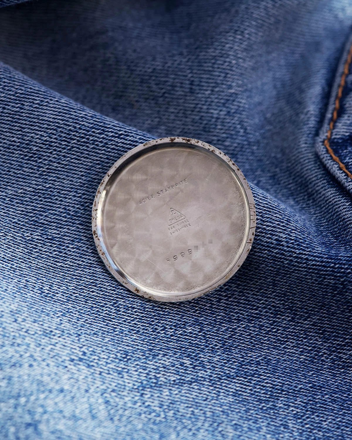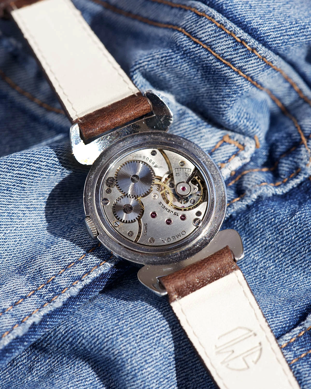 This specific watch, which I’m pleased to offer to the forum friends, features an extraordinarily beautiful dial: white, with an “eggshell” patina that takes on a slightly creamy hue under the right lighting. The finish is “grené,” a rare and delicate texture that is harder to find than the classic smooth dials (we often see it on Rolex watches from the same era). The layout is clean and minimalist, yet full of character. The curved logo is period-correct. The blued sword hands add a strong personality to the piece, which in my opinion is full of charm.