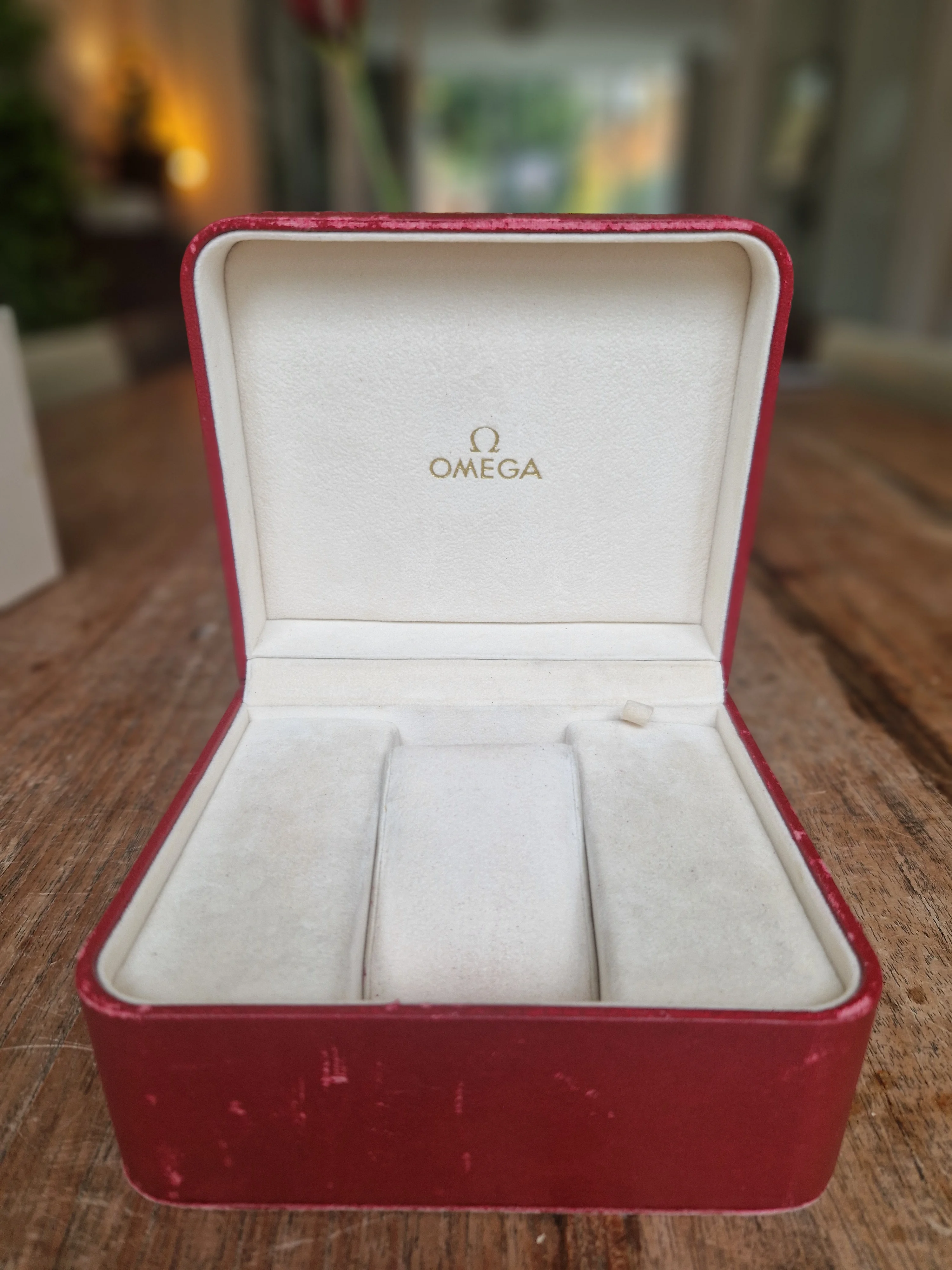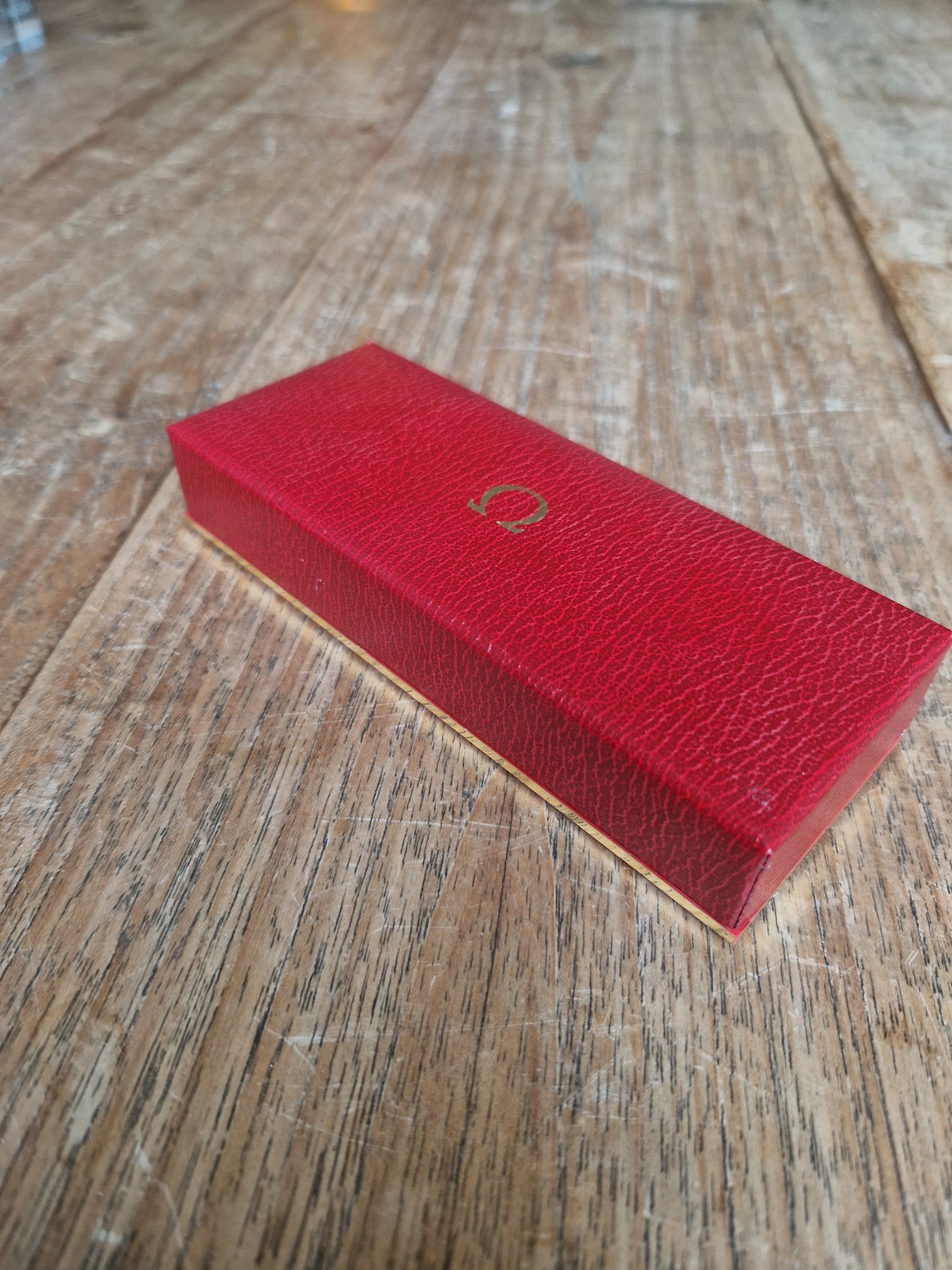 2. 1960’s Omega box ( nr.1). This is the version with the removeable insert. Excellent condition. 14 x 5 x 2.5cm. €75