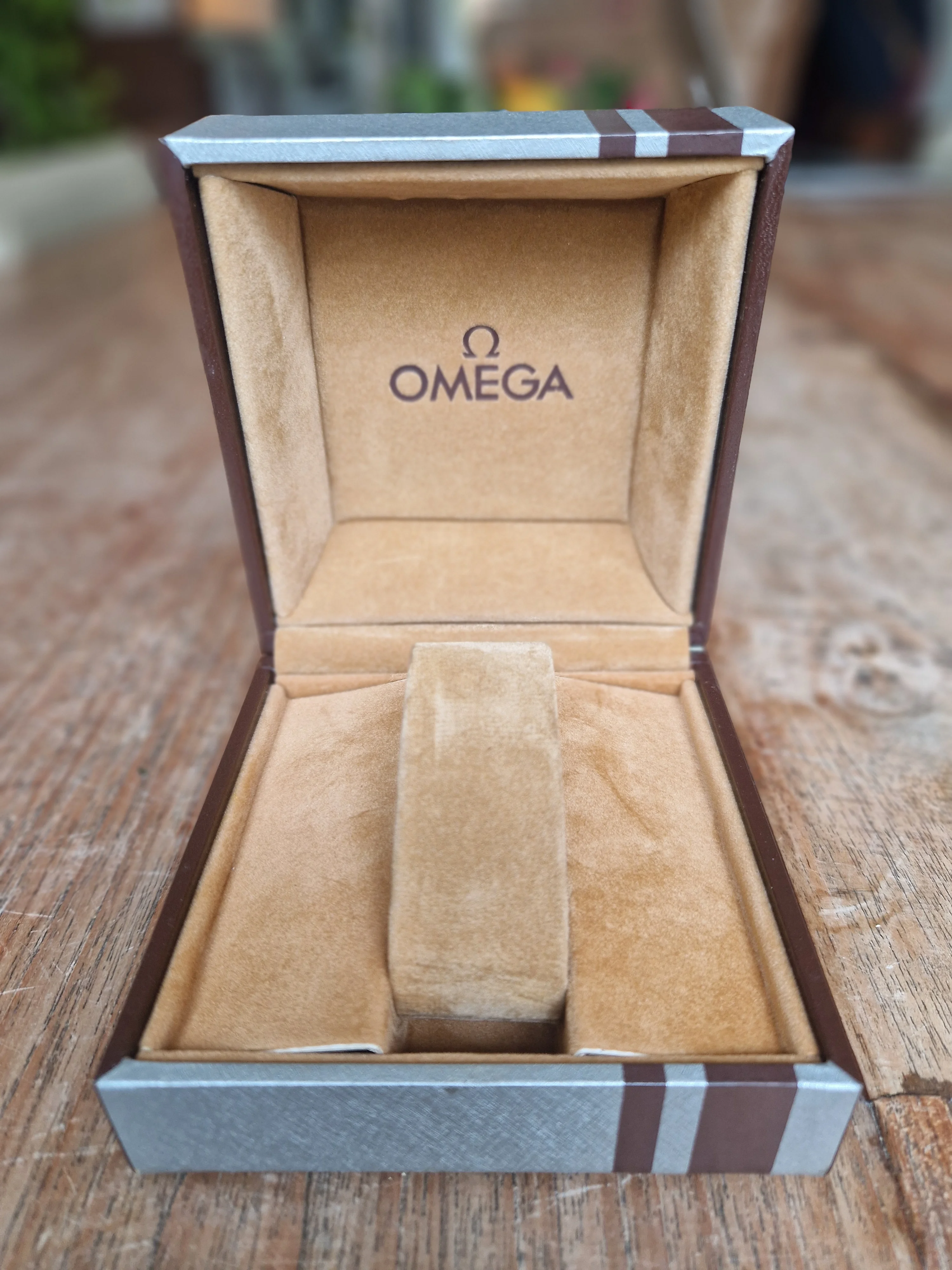 3. Sold! 1970’s Omega Megaquartz box. Cool design in great shape and with a perfect brown velour insert. 10 x 10 x 6cm. €75