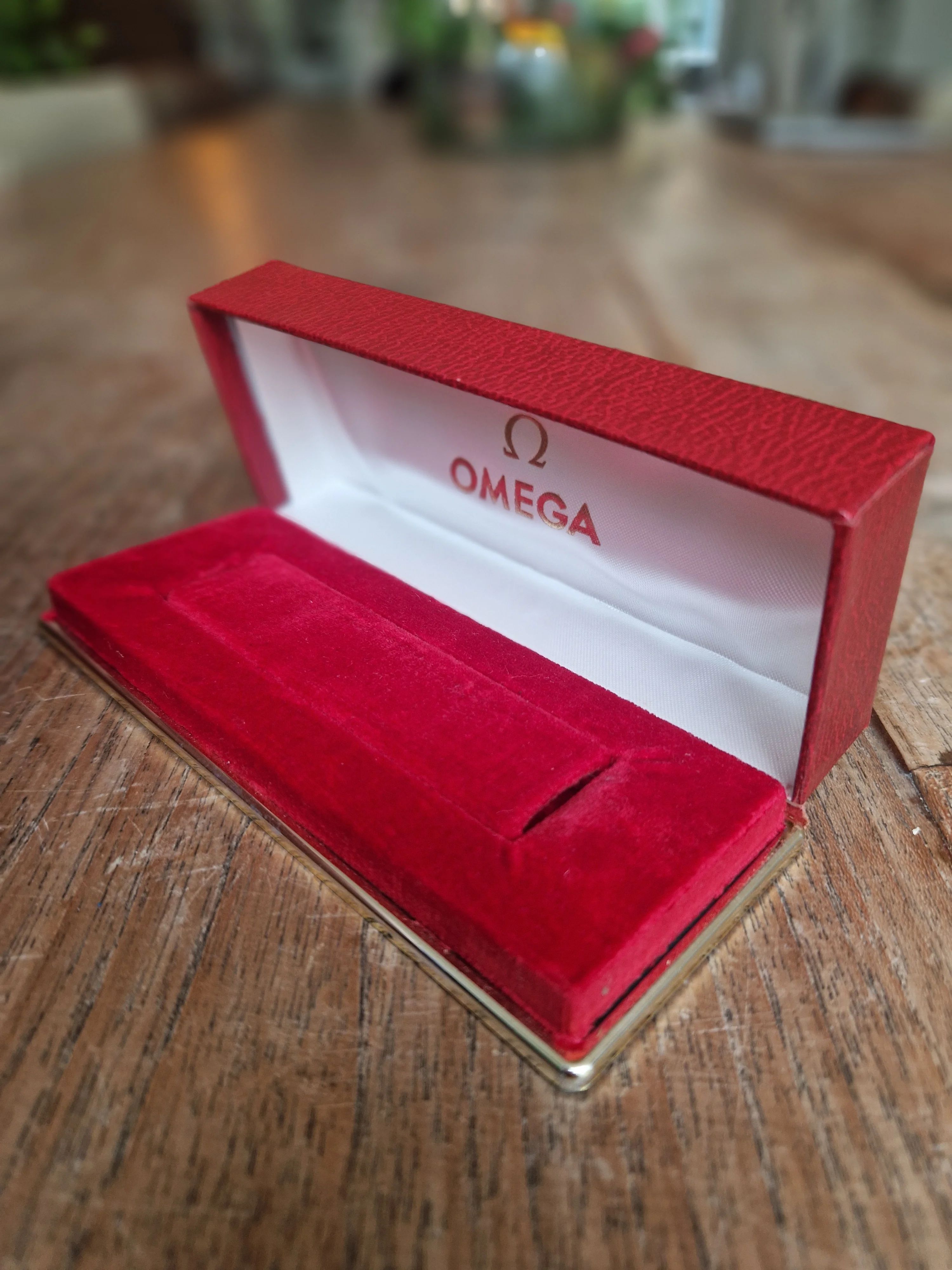 5. 1960’s Omega box (nr.2). This is the version with the removeable insert. Perfect condition. 14 x 5 x 2.5cm. €85