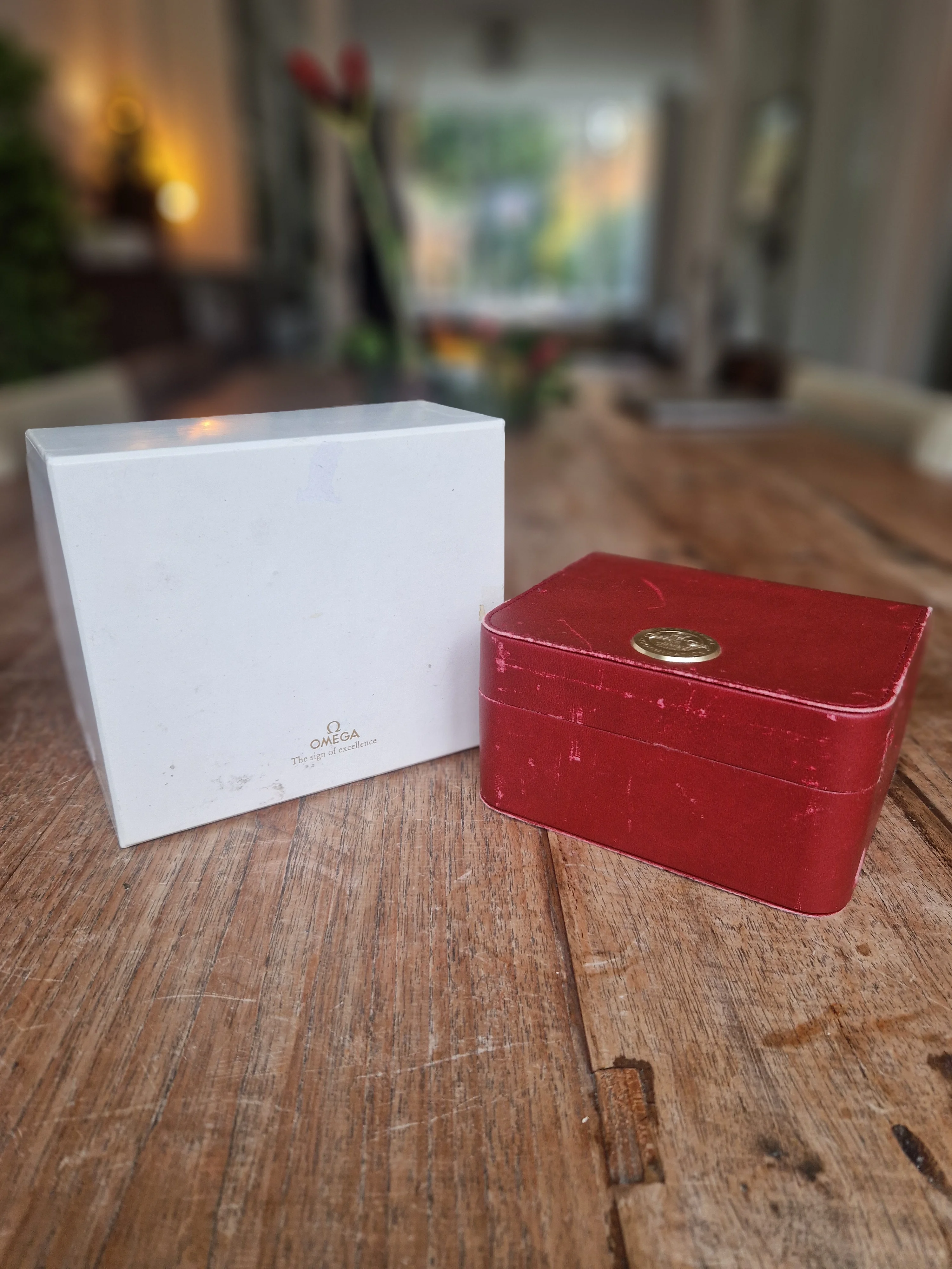 6. Sold! - Modern Omega boxes: Inner and outer, condition with some wear as seen. €40
