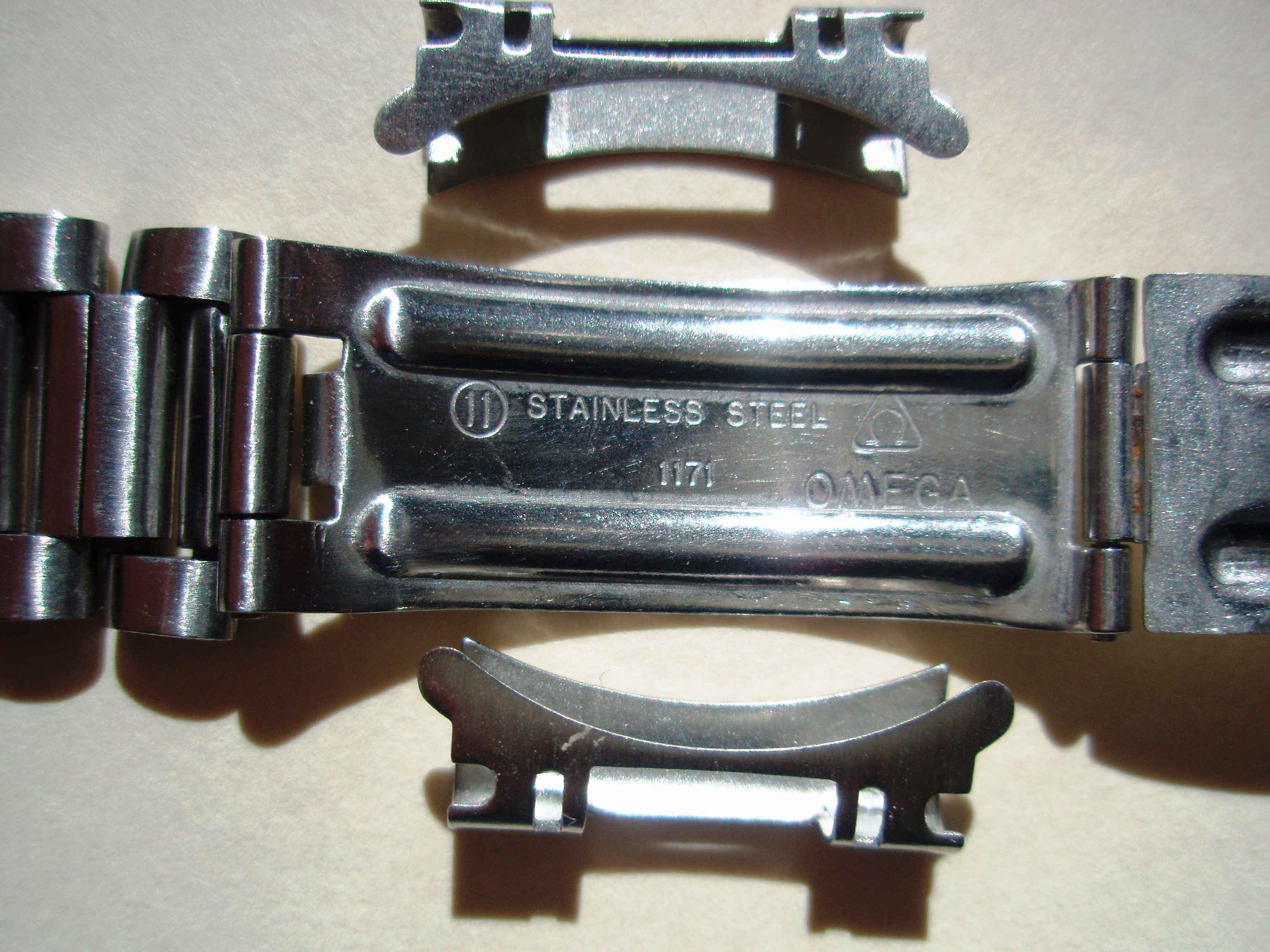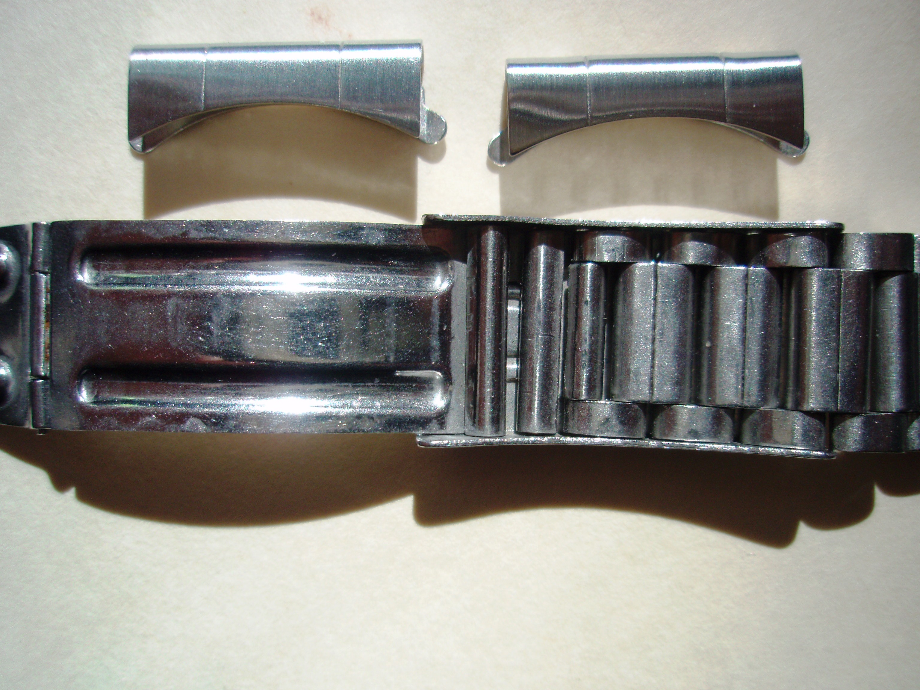 bracelet and almost new, from Otto, came with my newly captured 145022-69. Shown with 9 full links on either side plus 3 full links under the clasp, which locks tightly. Unfortunately not original to my watch but absolutely original, not made in China. Before I post this elsewhere, I will effort to share it with you. Asking $350.US includes PayPal and USPS Priority Mail insured shipping CONUS. Others pay actual shipping. Any questions, more scans, references, "reasonable offers" just ask. Thanx for your "time", Miki