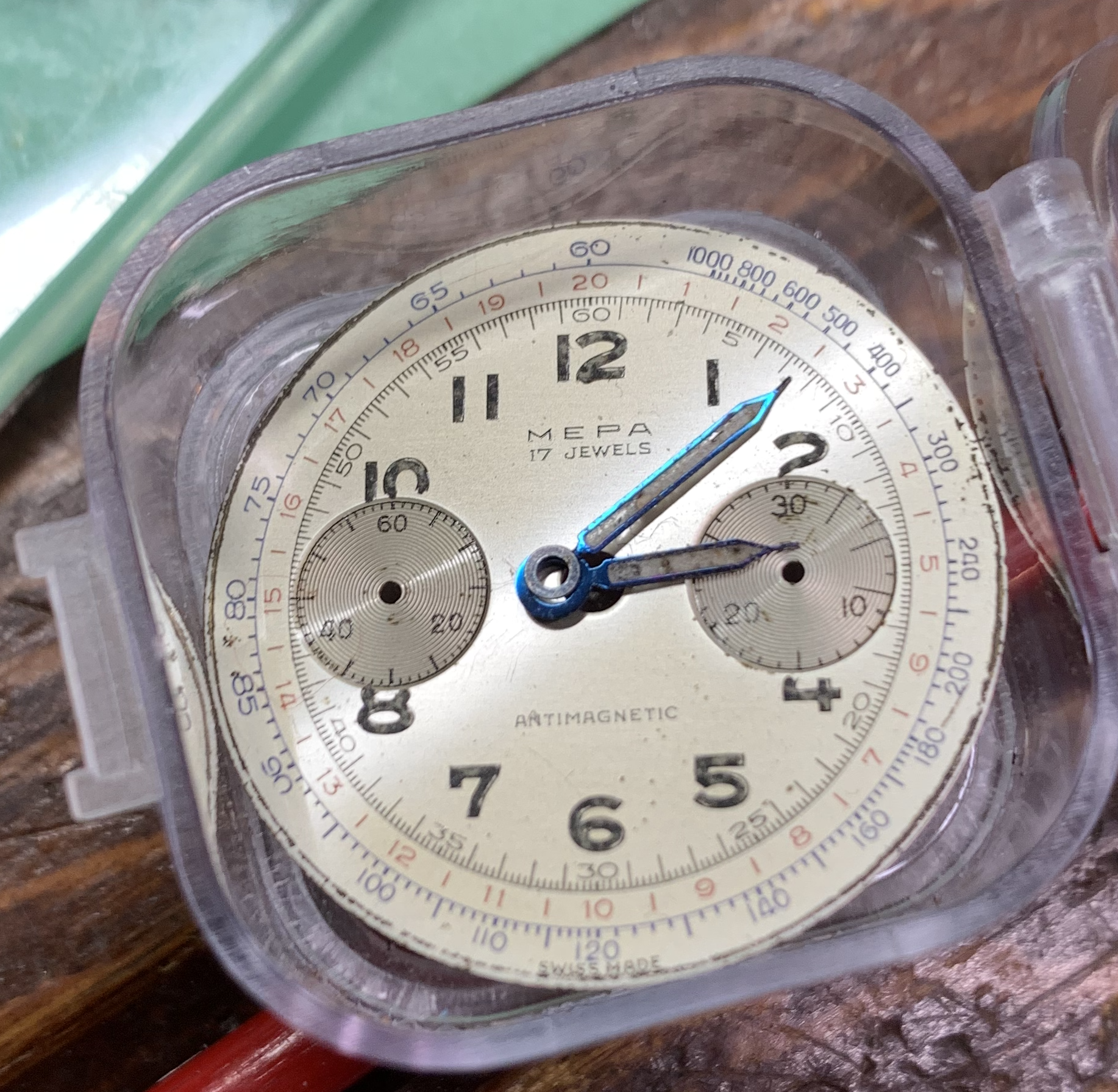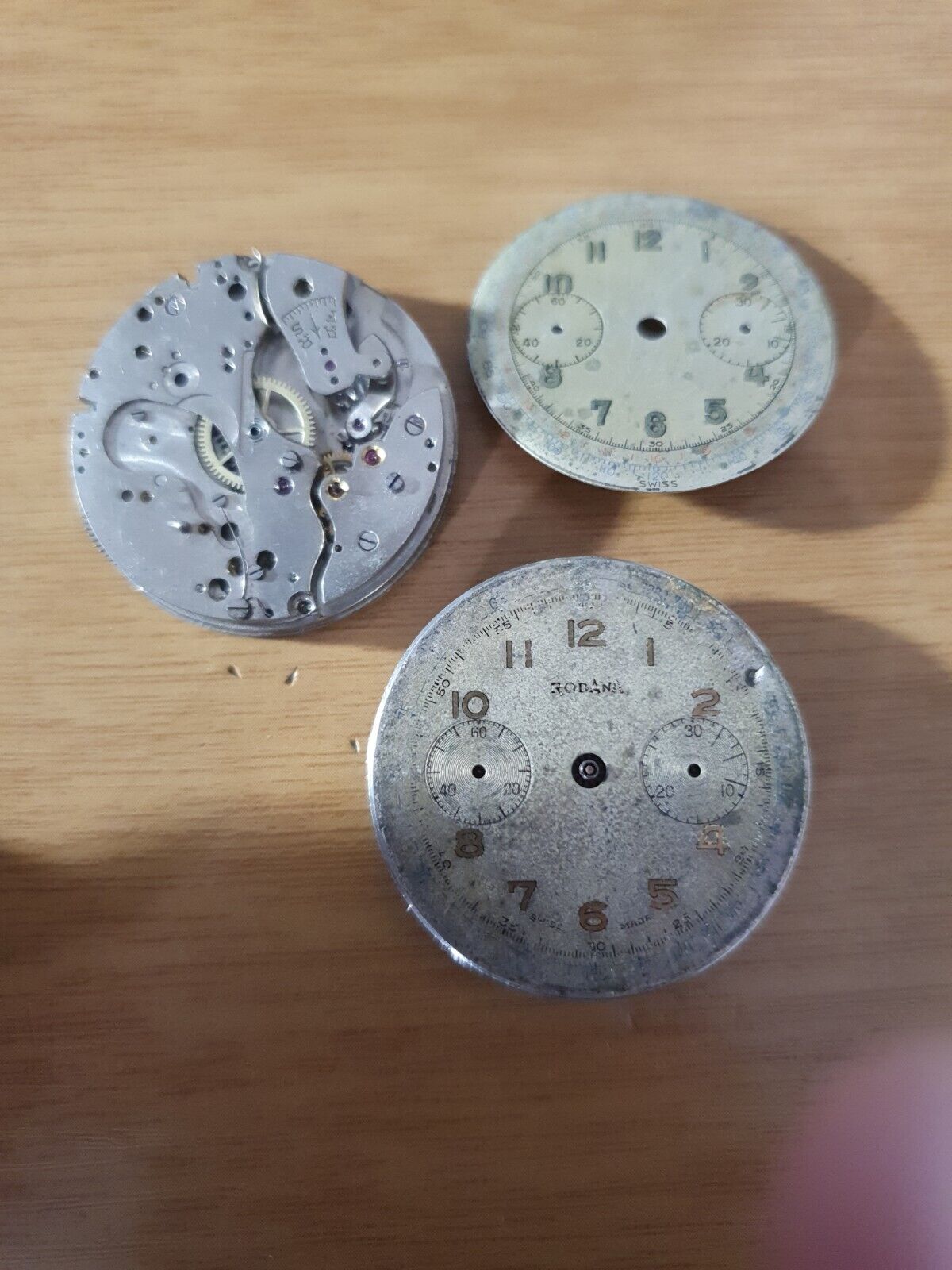Here again, below, is the before photo of the watch which started this trip down the rabbit hole. This also is a mix of landeron parts. One which was mostly assembled was a Timecraft which has it's own thread. https://omegaforums.net/threads/on-the-bench-landeron-48.149921/#post-2046401