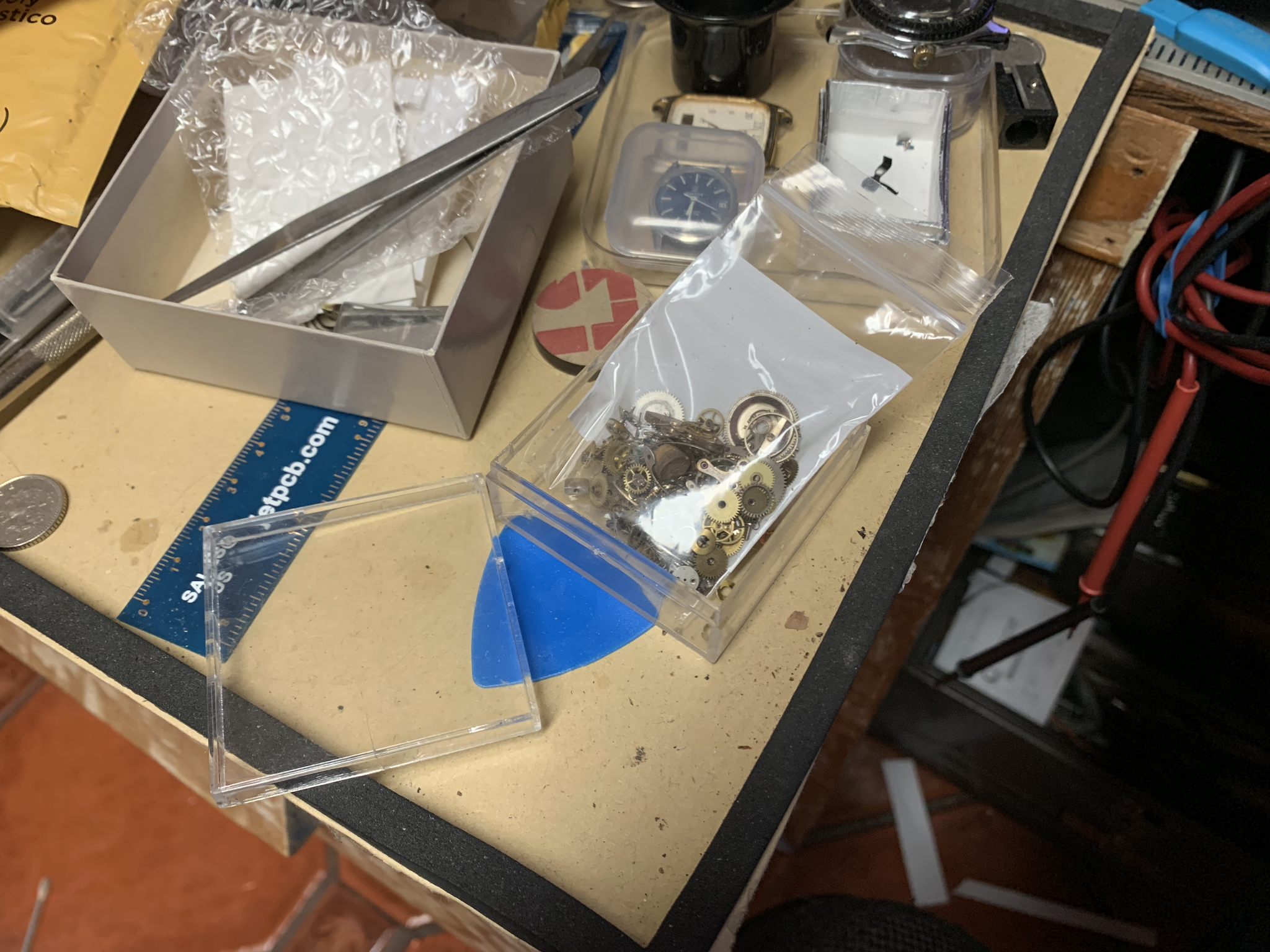 Assembling the parts back into movements helps with the organization. Some things like working with the dials and hands though are risky. With the Delbana, I now have two sets of hands. It is possible I did have the dial at one time. This does give the option to attempt to re-lume the hands.