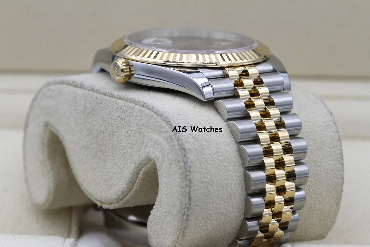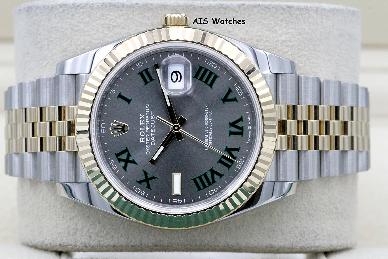 Up for sale is a Rolex 126333 DateJust 41MM 18K YG/SS Slate Roman / Wimbeldon Dial Jubilee Bracelet Box & Papers. The timepiece is in excellent condition.