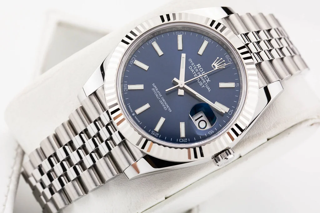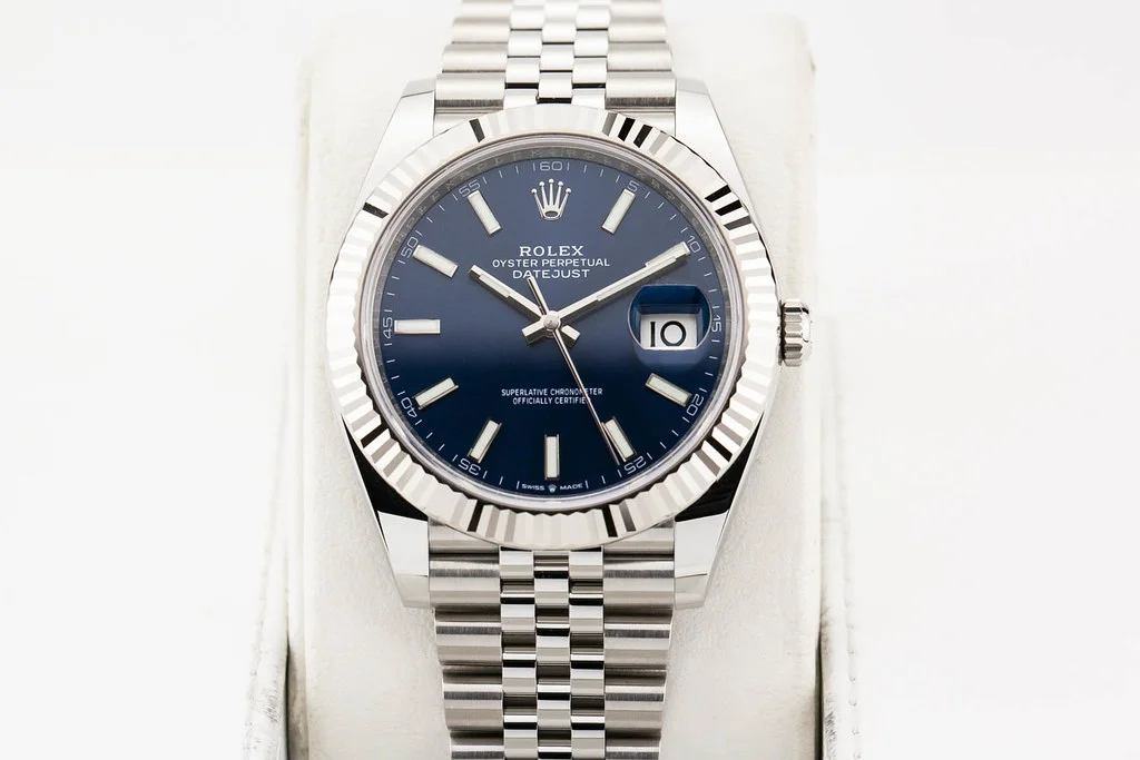 ·Up for sale is a brand new Rolex Datejust 41 with Blue Stick Dial with Fluted Dial on Jubilee Bracelet, reference # 126334. It comes complete with all newly redesigned boxes, papers, booklets, hang tag, and Rolex Warranty Card dated September 2025.