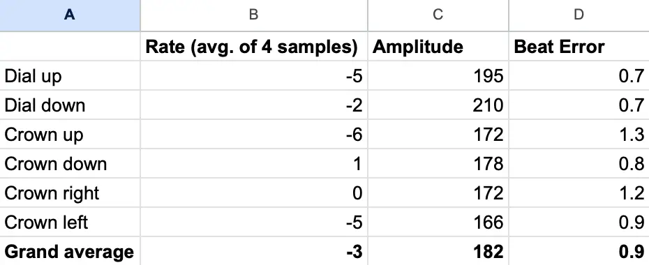 ·Hi OF, I just got an Explorer 14270 and am trying to decide if the combination of timegrapher parameters is cause for concern (amplitudes lower than 200 and beat errors around 1.0). In my experience with vintage/neo-vintage watches (~20 of them over the years), I've certainly seen some with higher beat errors, or with worse timekeeping, but none so far with amplitudes this low, even for a Speedy with a damaged mainspring! I know that some people would say that either of these values indicate problems in need of servicing, eg https://www.beyondthedial.com/post/collector-guide-interpreting-timegrapher-results/, but I haven't owned many Rolexes (not sure if that matters, but I know there can be different norms for different watch brands)...