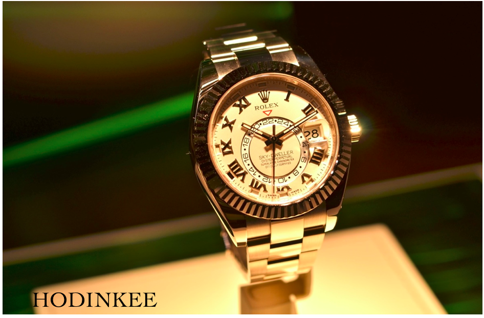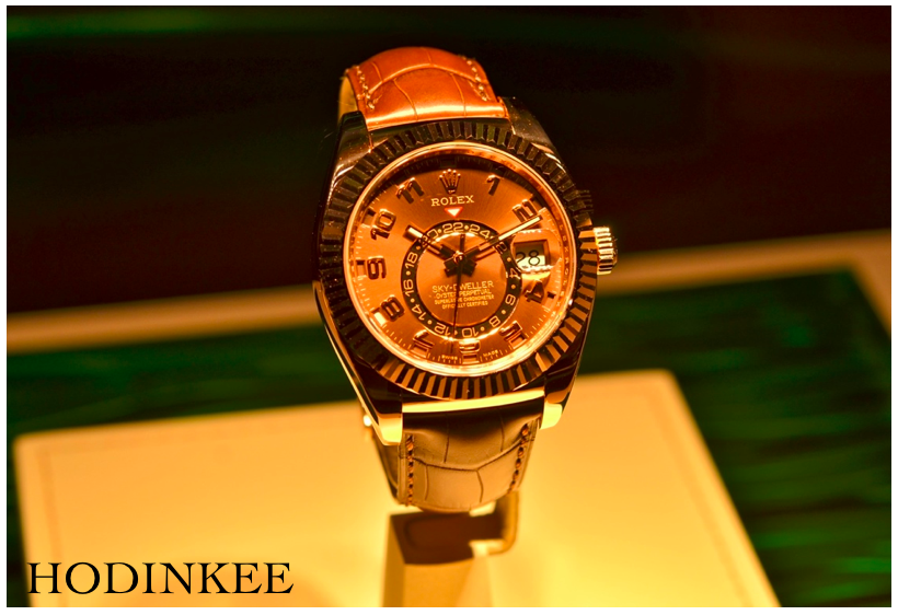 The biggest problem this watch has by far, is that Rolex seems to have completely forgotten that there's a company called Patek Philippe that makes a model called the 5035 with Day, Date, Month, 24H which can be had for under $20k, and hell if the 24H complication isn't everything, you can have a 5146 brand new for around $35k. This Rolex Sky-Dweller appears to be priced around $38K euro on bracelet, or $32K euro on leather strap, so if you can't afford a Rolex, you may be forced to settle for a Patek Philippe.