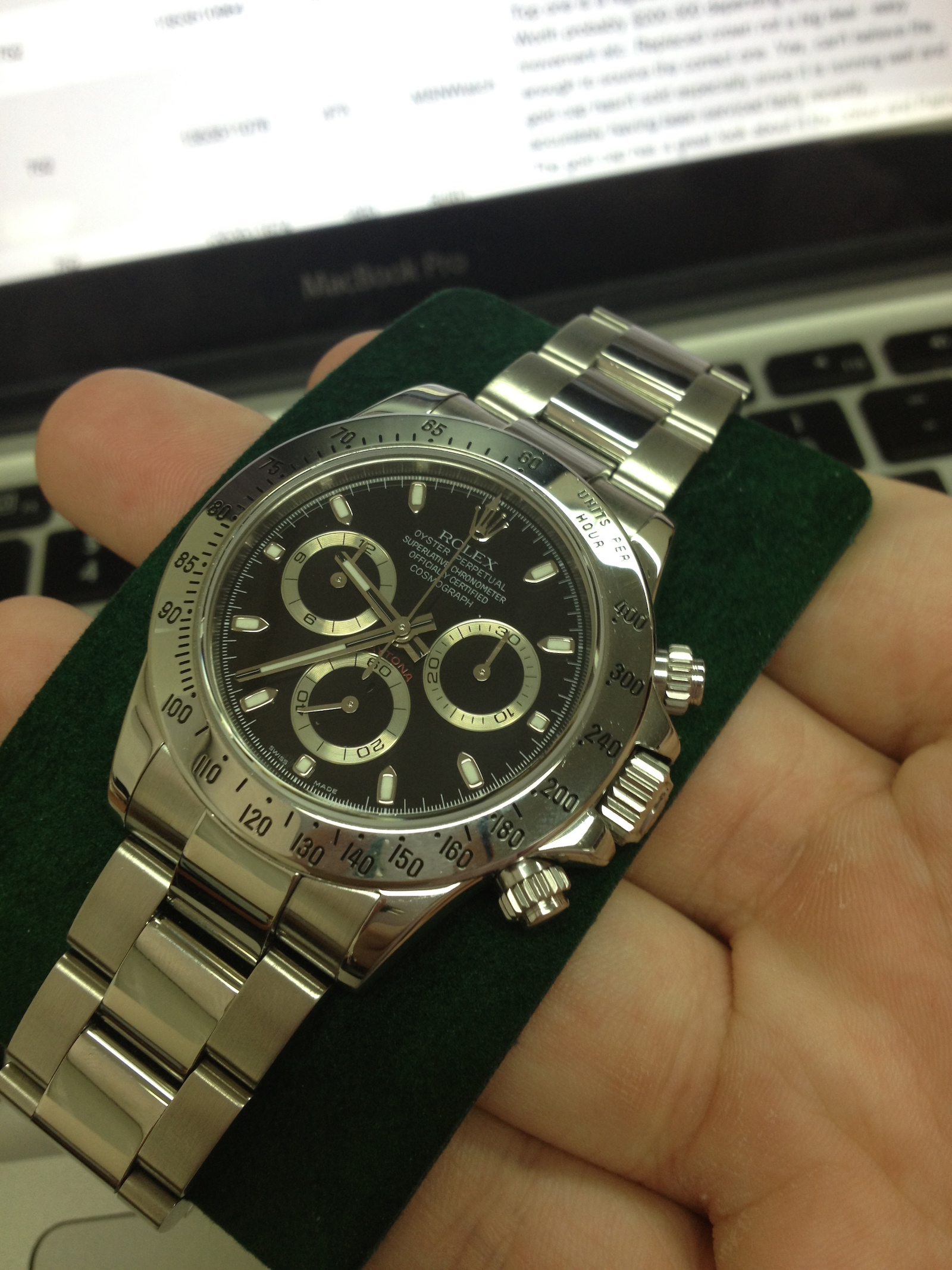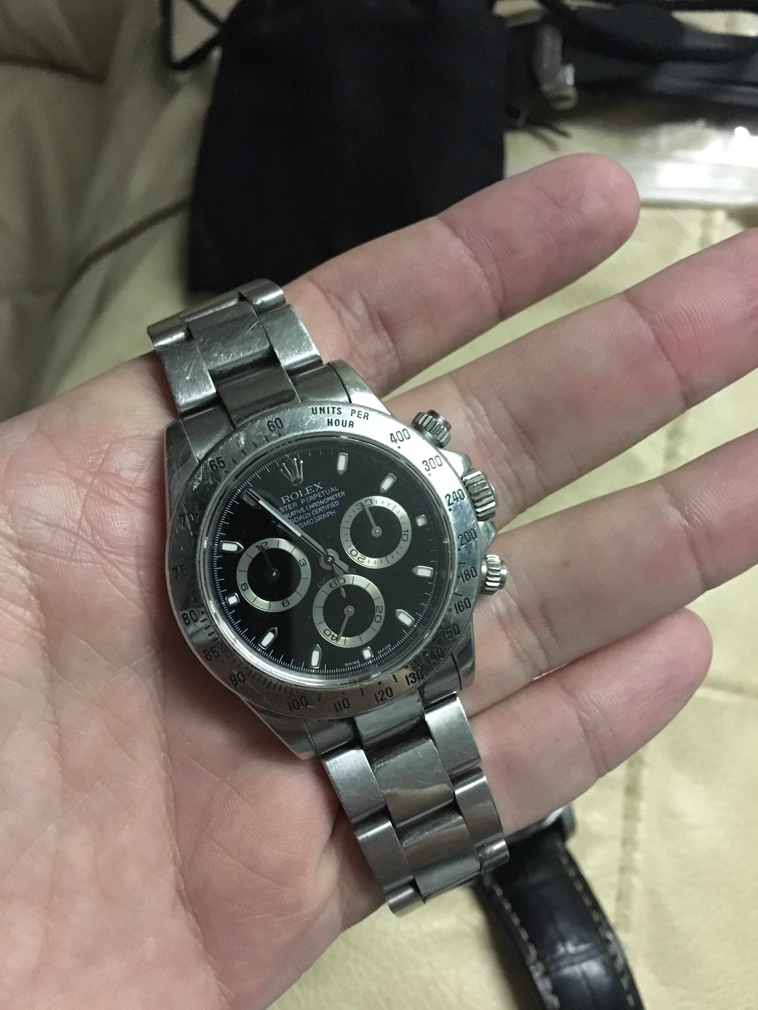 ·Within months, he wore if fishing, slipped on a rock, fell, and threw out his arm to break his fall! Wiped out the crystal, all the hands, dial, and whatever else I don't know! I saw the watch before he took possession of it. I didn't see it after he destroyed it. If that is called "wearing it that way because he can", and "not buying it to impress others", I don't know how many people would see the logic!