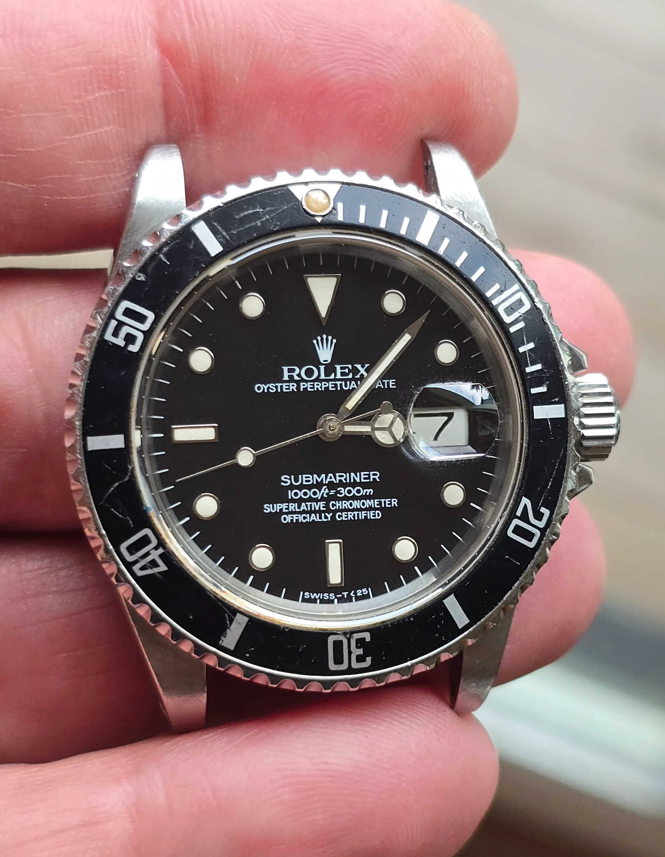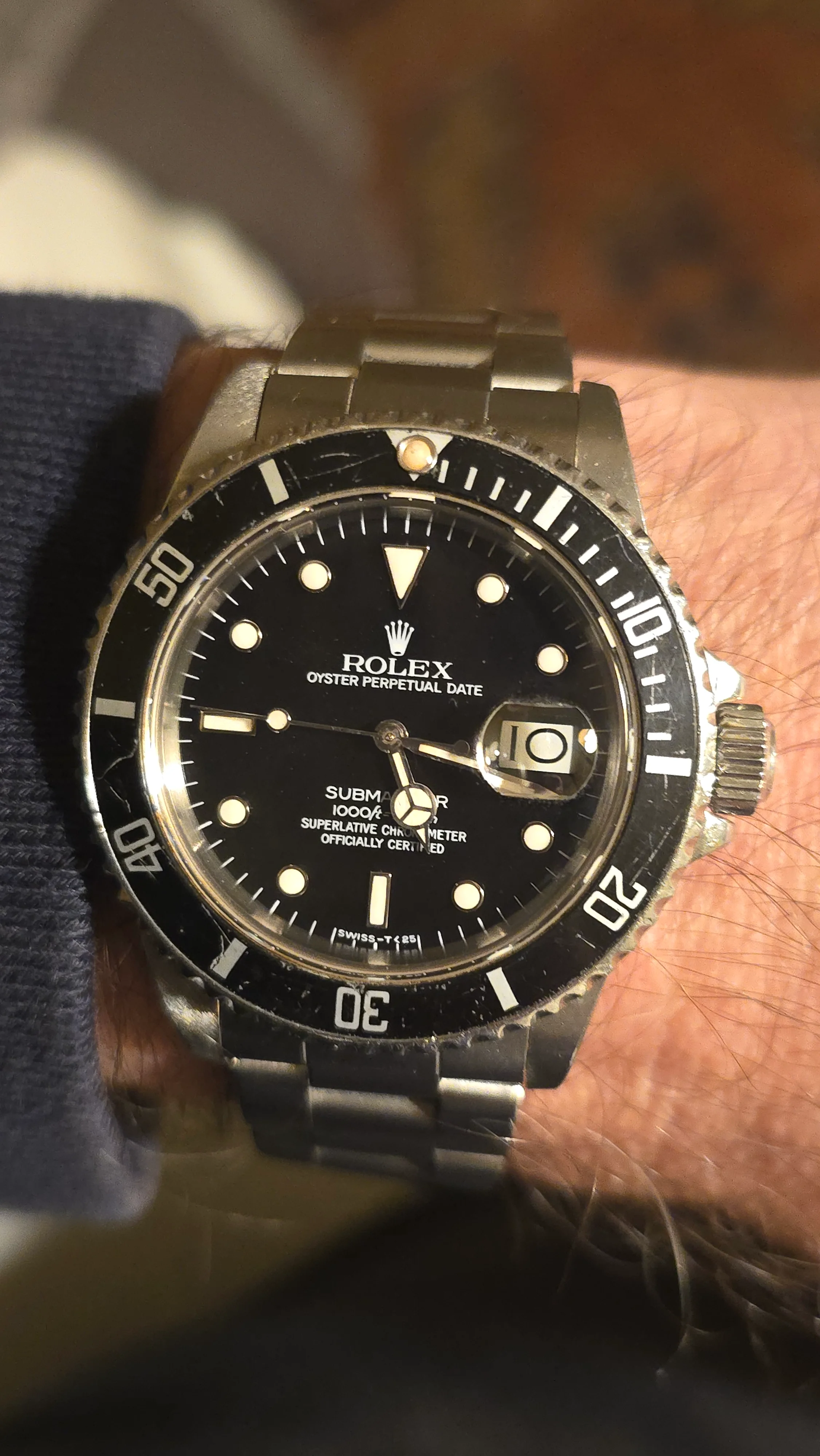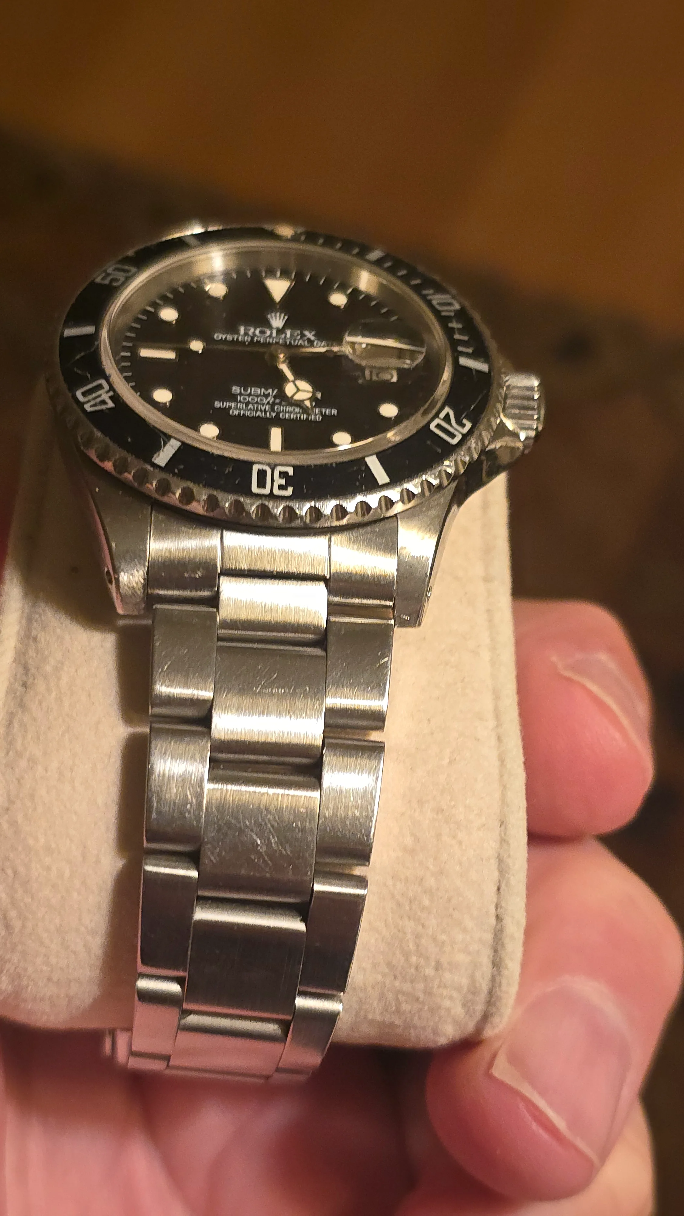 ยทI haven't had this long. My local guy got a watch from an estate and offered it to me because I told him I wanted a 14060M. It didn't look heavily polished or dealer prepped so I bought it. Since then I've picked up 3 watches, including a new Omega for my wife. My fling with the Submariner is over.