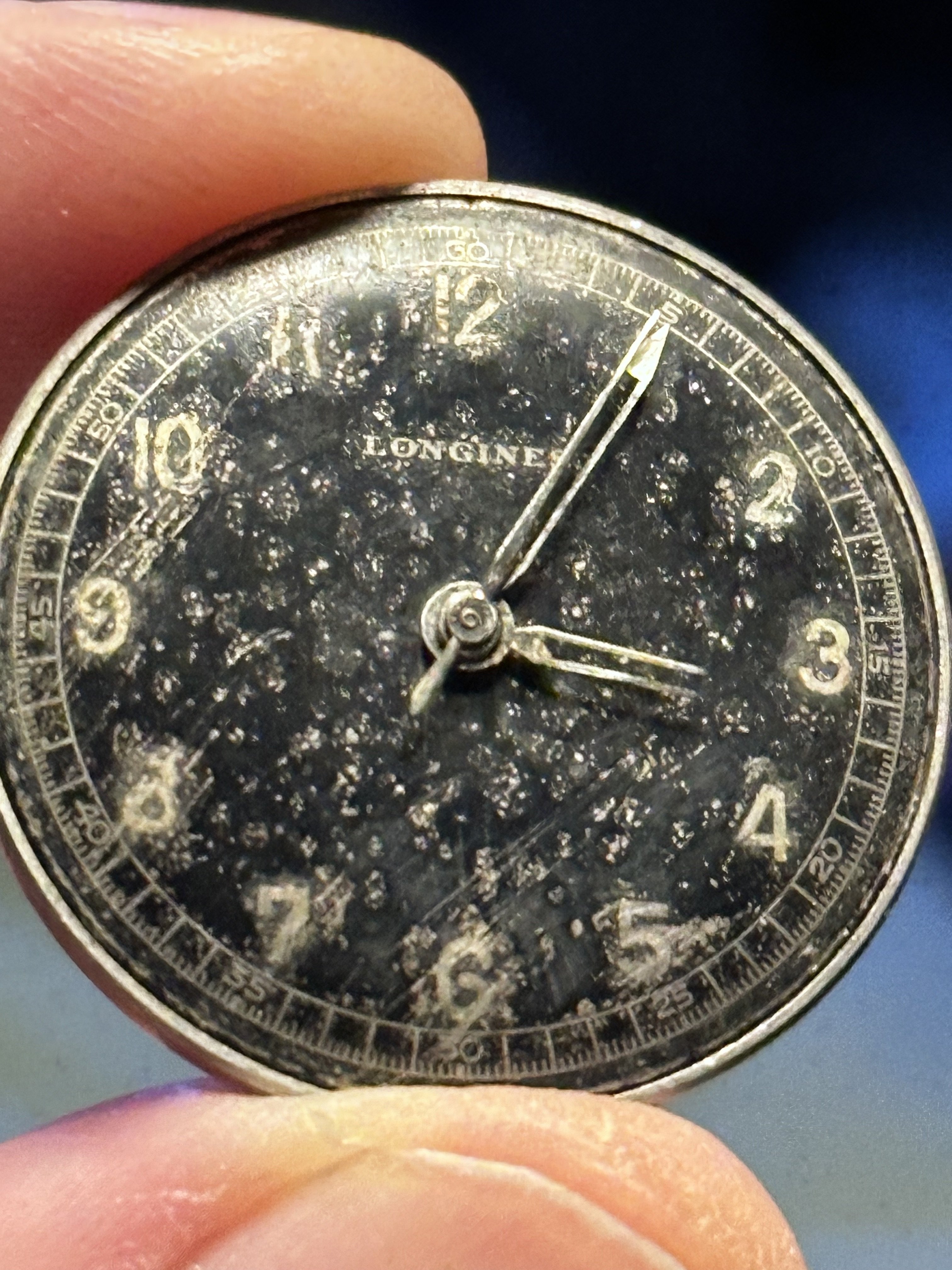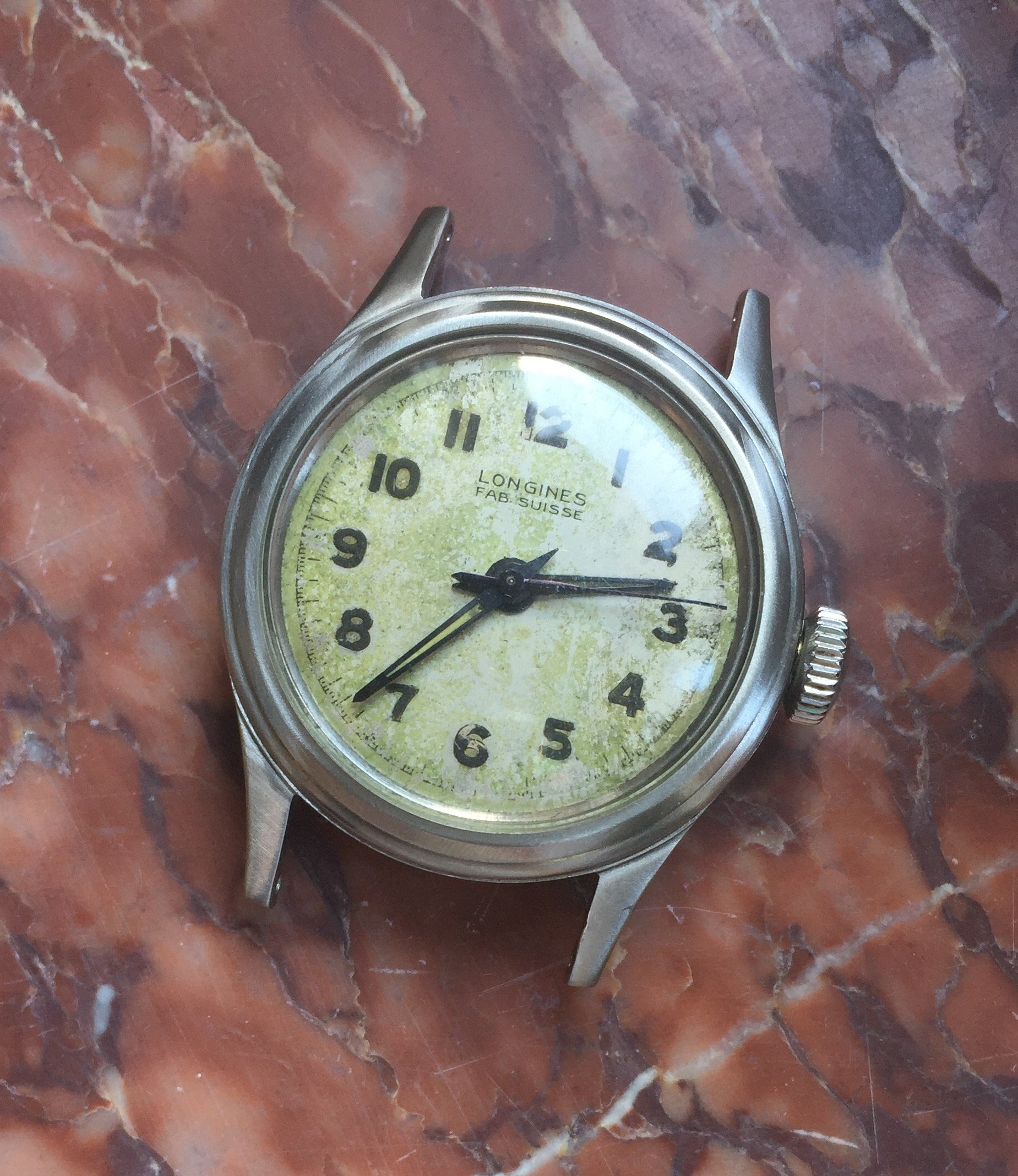This watch would require significant work as it’s also missing a crown-and you’d have to find suitable replacement hands, that’s another subject.