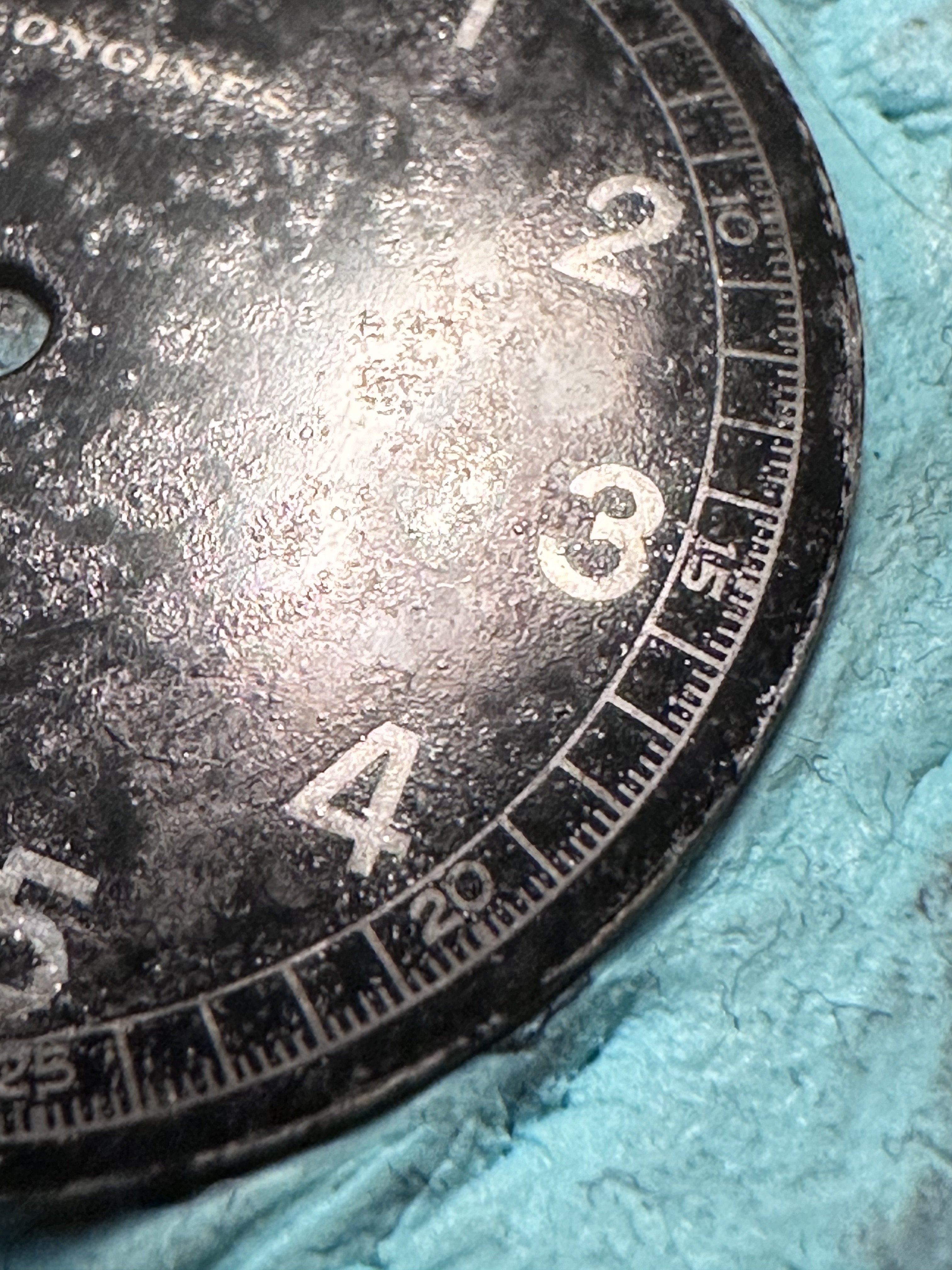 The dial below required two days and lots of tests- and again you’d have to be prepared to accept a bad outcome of completely destroying your dial. That’s the standard collectors use when making those decisions.