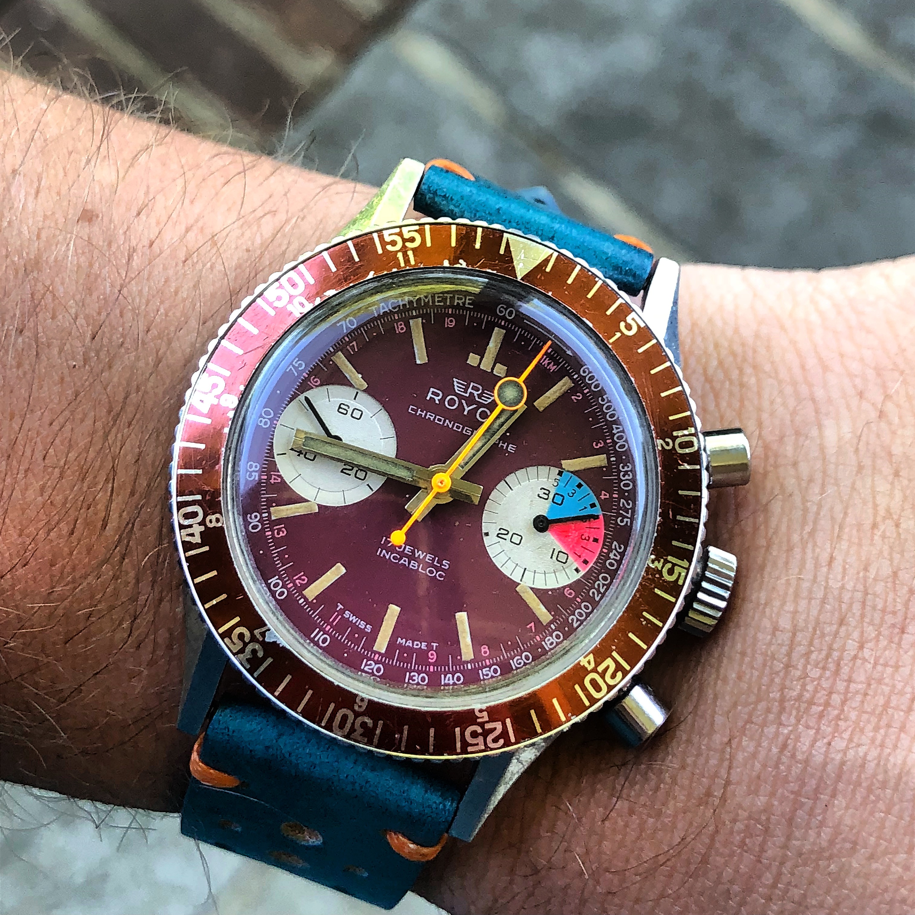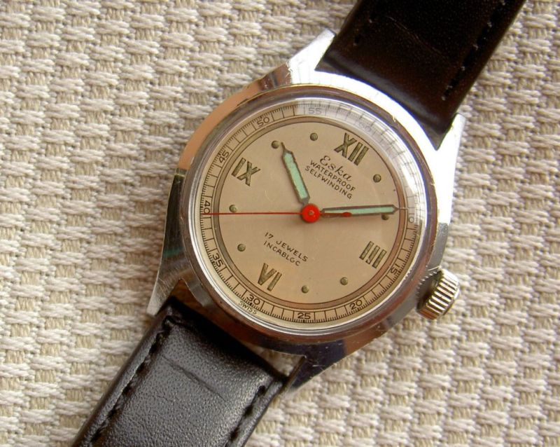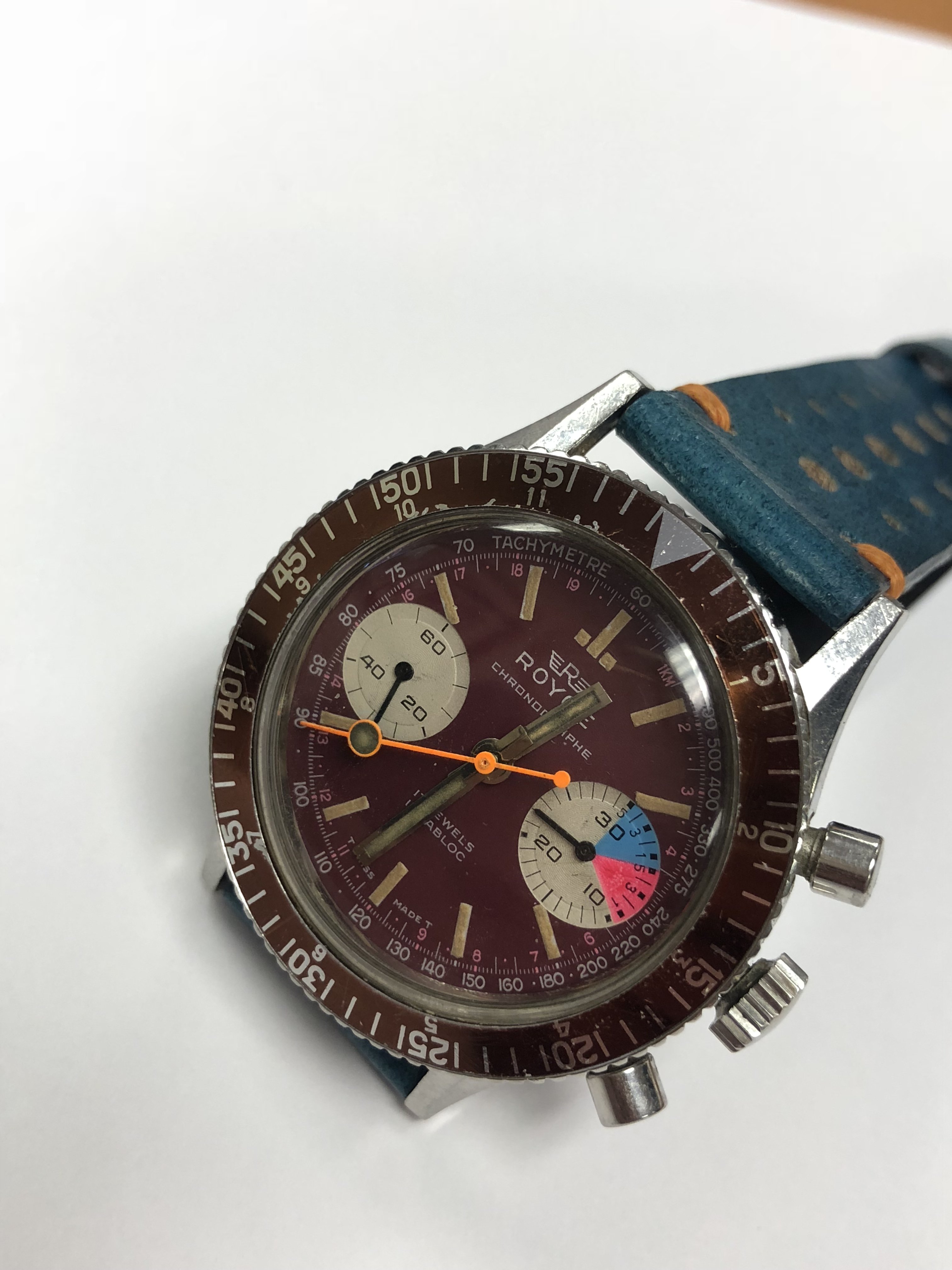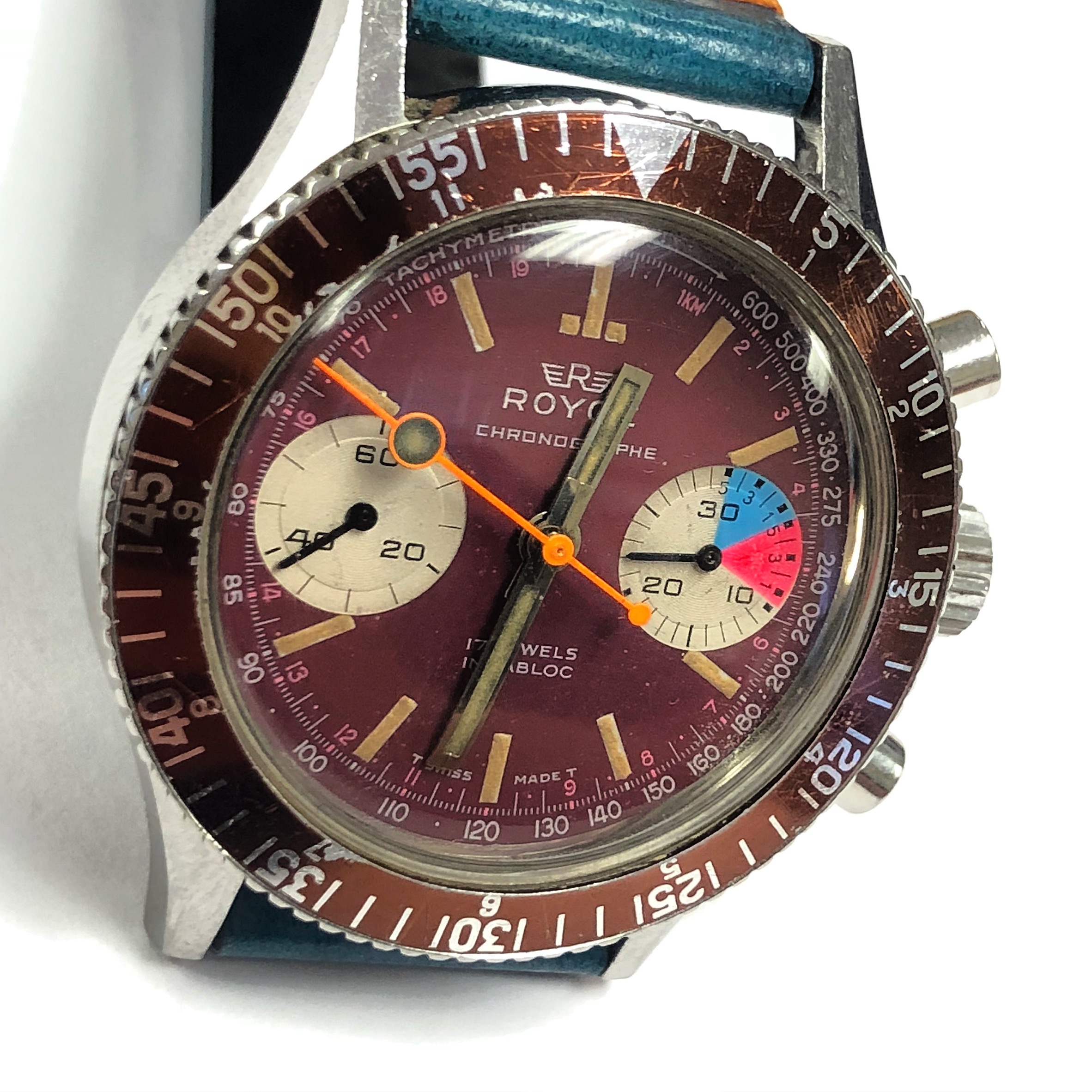 ·Just thought why not start a thread to focus on Royce and Eska watches--which has always been my focus in collecting. I often get asked why Royce, or why Eska--to this I have no answer other than why not. Eska was founded in 1922 by Sylvan Kocher in Grenchen--Eska stands for the phonetic pronunciation of his initials "S.K." (pretty witty eh?) Generally Eska/Royce watches can be snagged at affordable prices, and the brand has quote the portfolio.. stretching from insane Eska cloisonne dialed watches, Eska Split-second chronograph, Eska Jump Hour, etc. Royce dialed watches are also the brainchild of Walter Kocher, and was used to sell primarily, or at first anyways in the US market through New York--aka the export brand. Royce watches are all over the place in design/movement/tool watch etc. They have some awesome chronographs and a couple real special diver's. One sought after watch that some may actually recognize is the Eska "Amphibian 600," from the 1960's as Roy Rogers was known and photographed wearing one; it sports a Huge and unusual acrylic bezel, automatic watch. The most likely well known Royce watch is the Automatic Professional Marine, monster of a watch with the crown being up @ 12:00 and recessed- with a screw back case and hooded flexible lugs! These watches were mainly used by French NAVY oddly enough, and were made for professional divers--they are HUGE,coming in 46 across × 62.5 mm lug to lug. Since i have covered probably the two most notable Eska and Royce watches, let me reiterate that there are hundreds of other just as cool and often affordable models out there! I have been collecting both brands for 4-5 years and have seen quite a variation of lovely vintage looking watches. The Royce brand name/logo is currently officially owned by Tutima Glashütte/SA. I will share some of my collection going forward in the days and weeks to come, anyone else out there fancy Royce or Eska? Maybe i am not the only one.