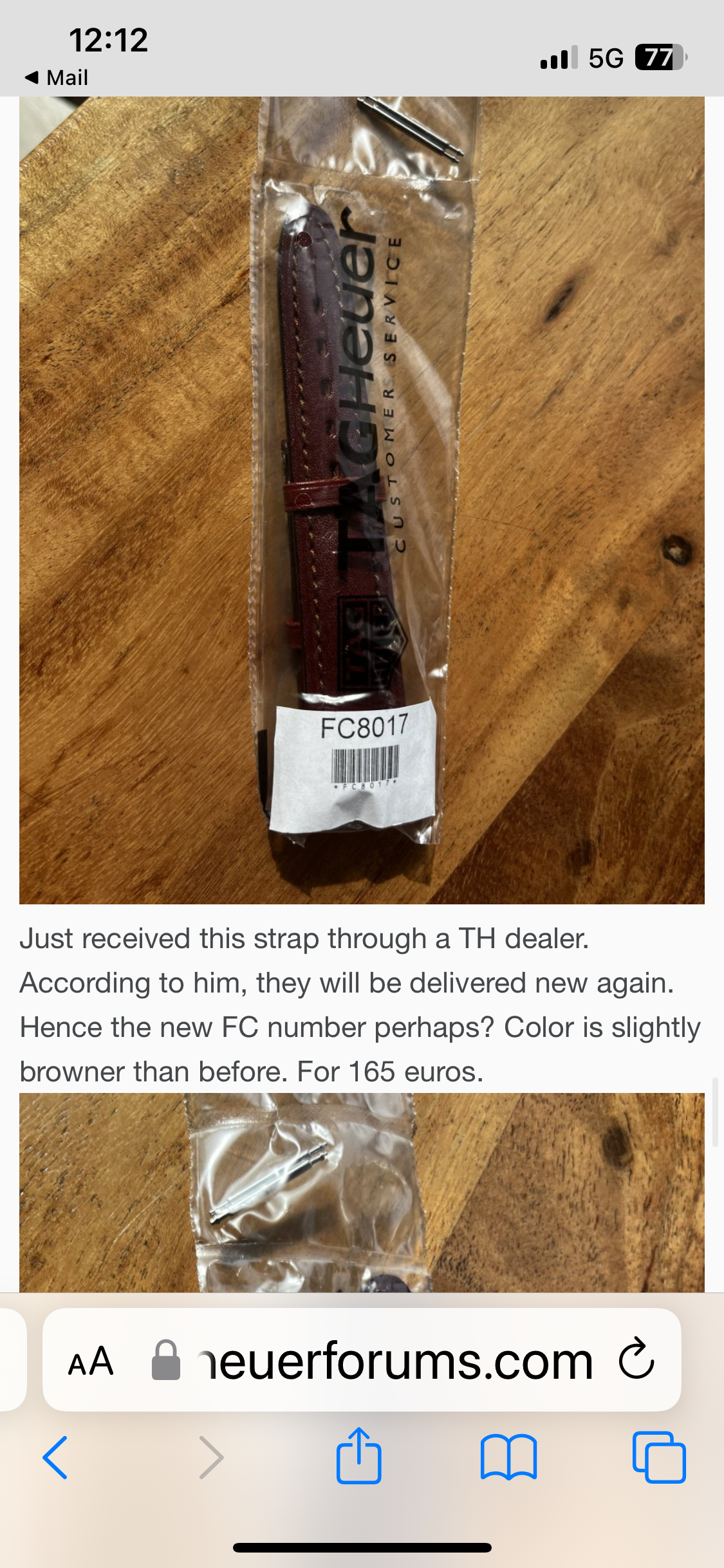 ·Just received this strap through a TH dealer. According to him, they will be delivered new again. Hence the new FC number perhaps? Color is slightly browner than before. For 165 euros.