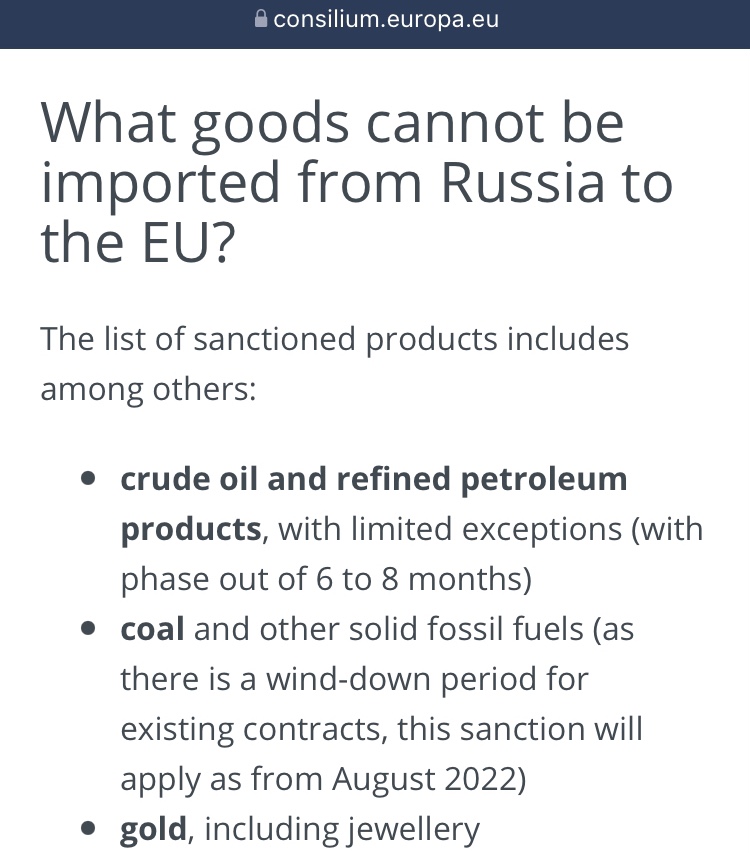 ·Hi, firstly please remove this post if deemed inappropriate. I’m conscious that the importation of gold (including jewellery) from Russia is on the list of EU sanctions against Russia, in response to that country’s war against Ukraine.