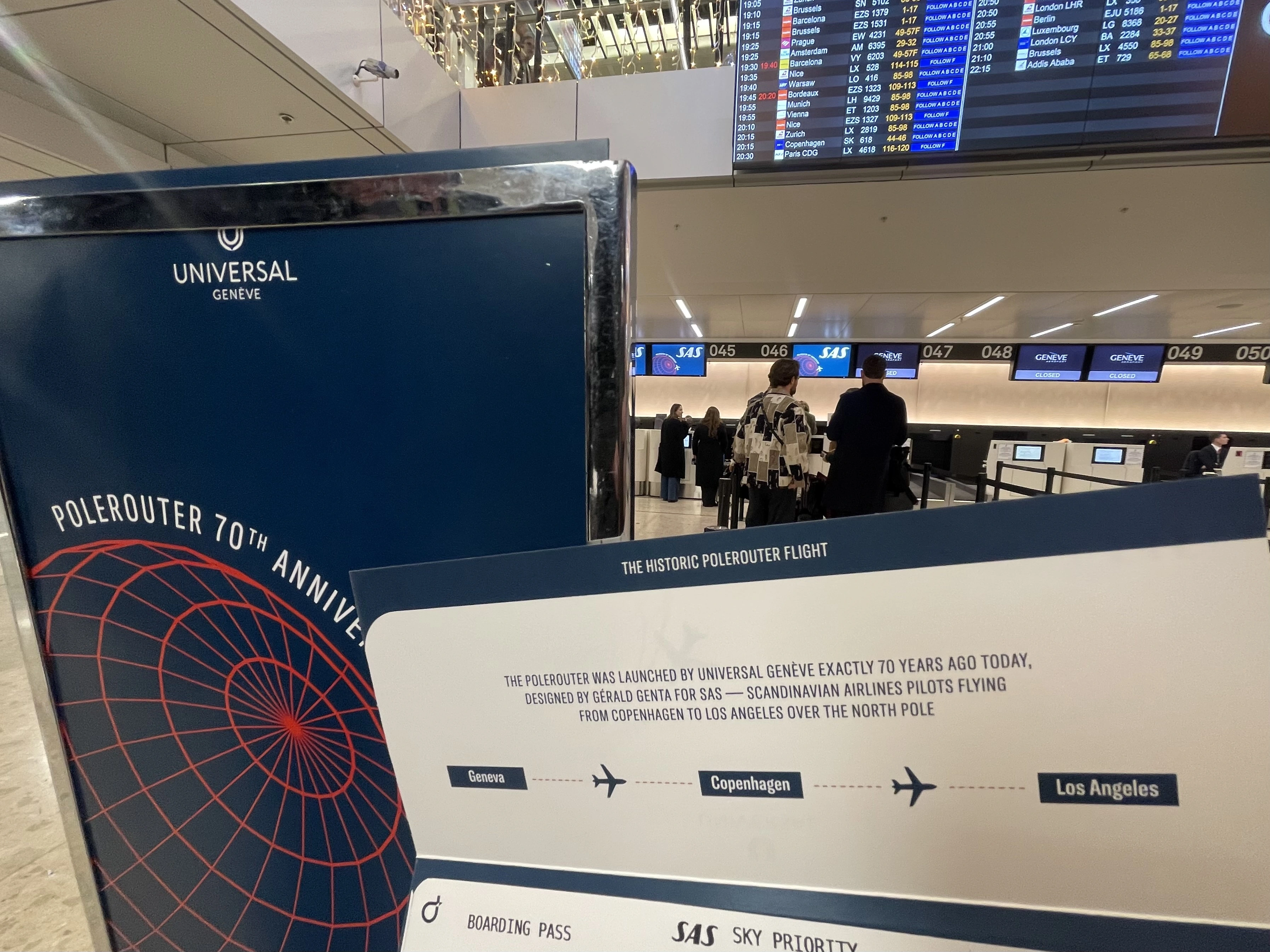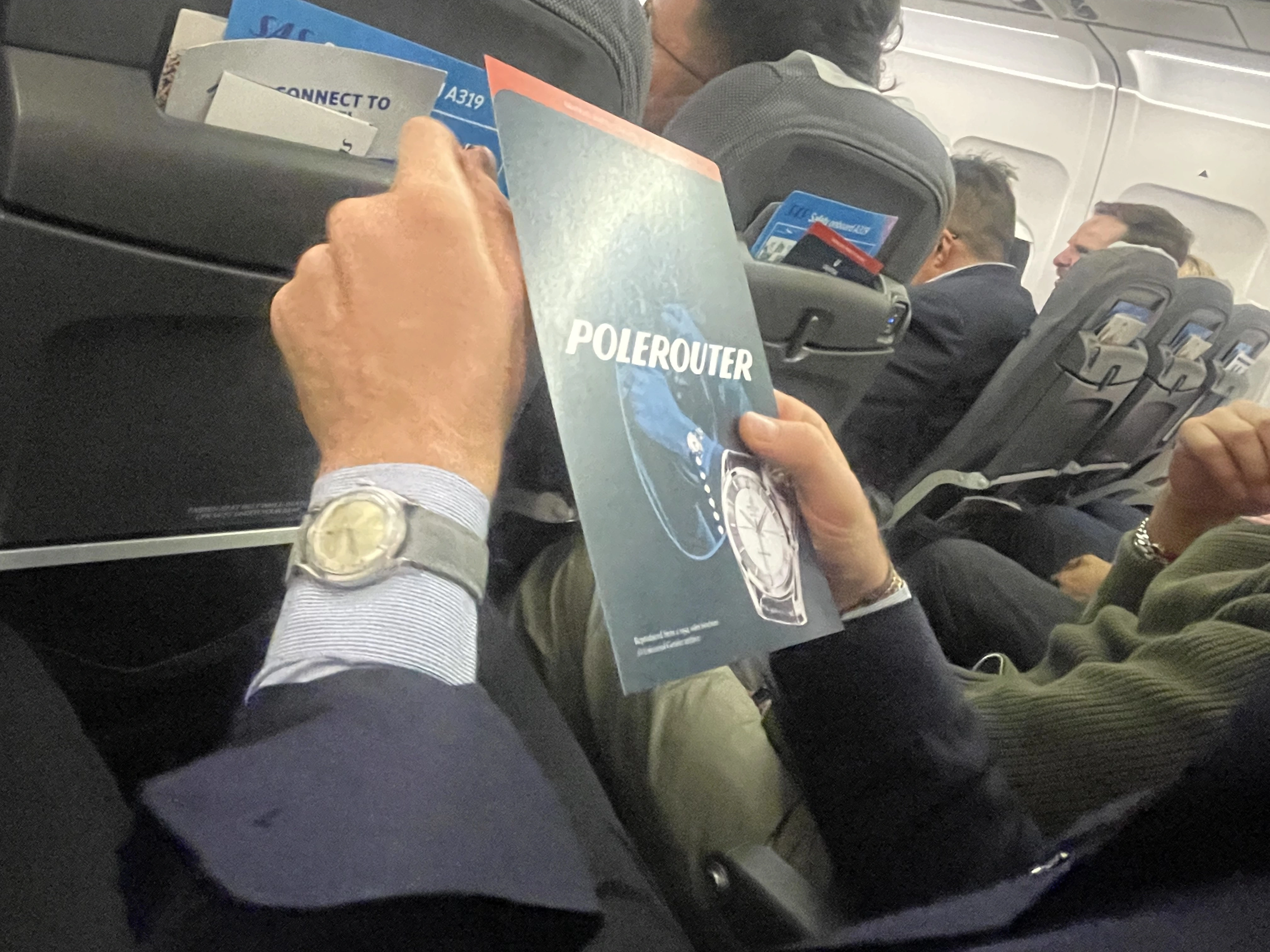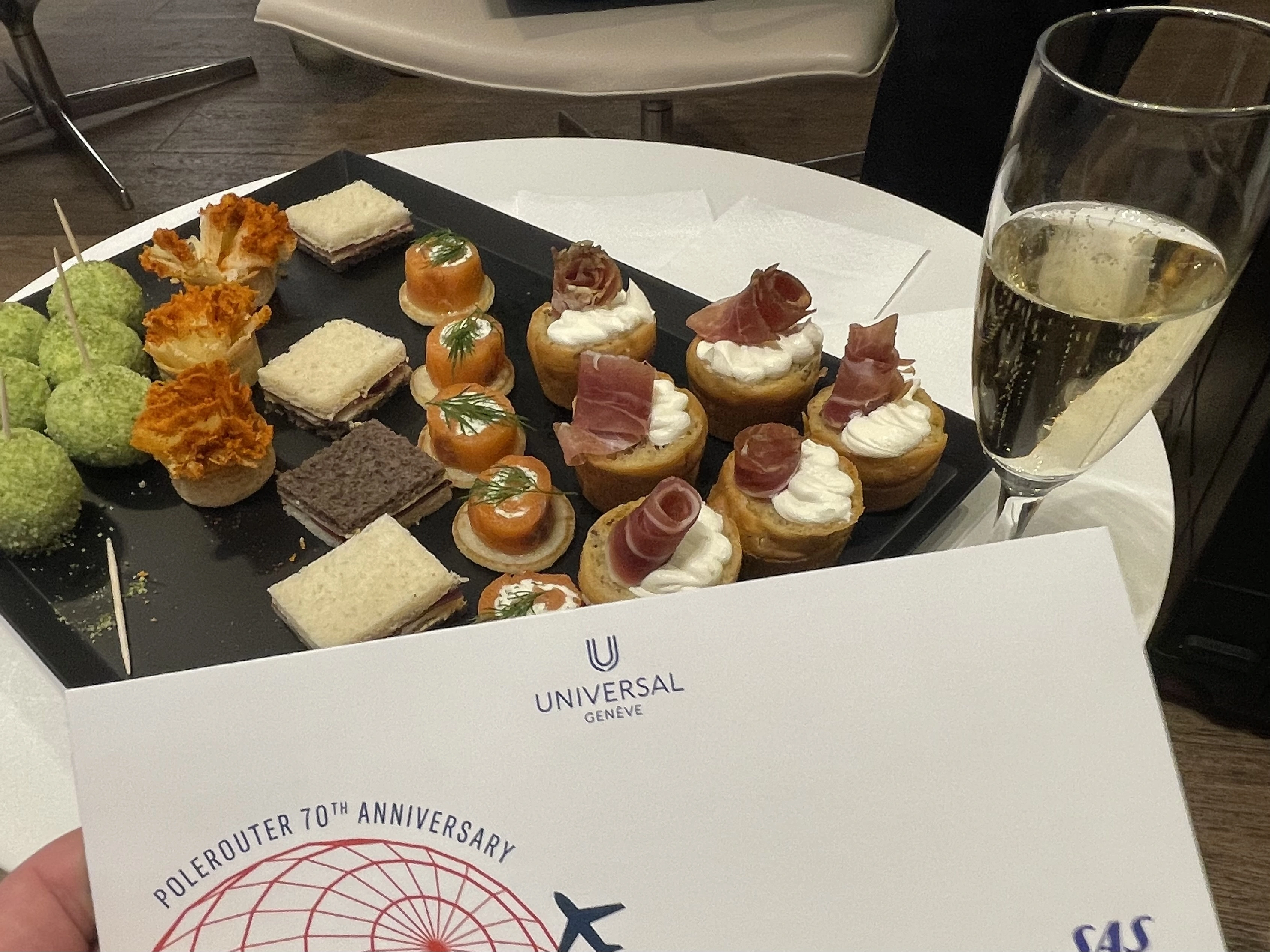Upon arrival at the Geneva airport, we gathered in a private lounge, where we enjoyed champagne, great food, and an engaging conversation centered around the Polerouter and its place in horological history.