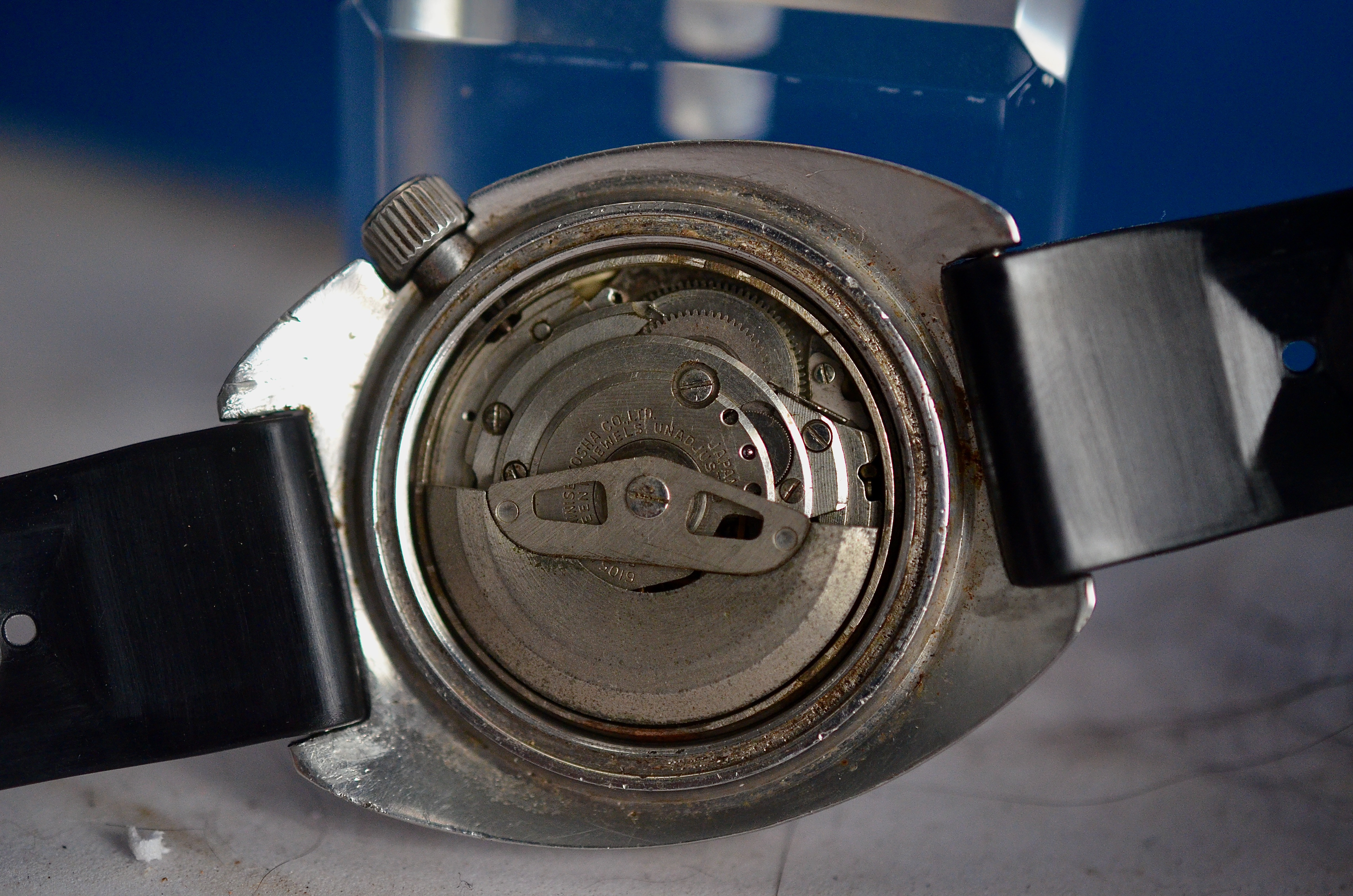 We agreed that I will take the watch home with me and see what I could find out. Home and first job was to take the case back off to determine the movement type and sure enough it is a 6105. Now to try and decipher the model number. Using a 10X loupe and just the right light I could make out 8000. Quick bit of research and I then informed him of his find and the significance of the watch as well as potential value. Potential being if you could find the correct bits over time and put it all together.