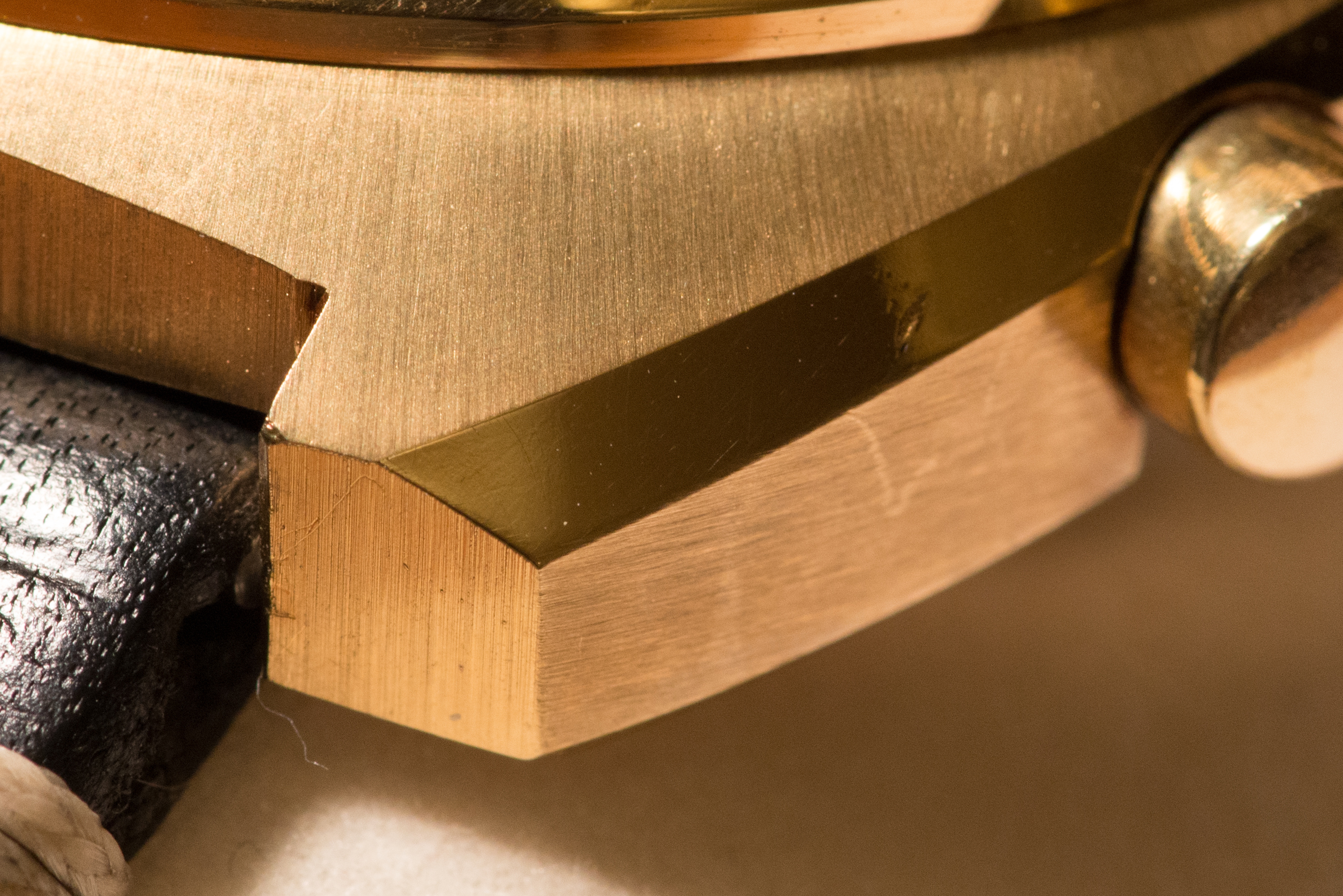 I do know that this color combination is unusual. The gold plated case versions discussed on the Calibre1040 site have gold or brown dials. I was able to find other examples of this color combination via an internet search, but few. So it's definitely possible that a dial swap occurred sometime in the past. That said, it's this color combination that sealed the deal for me -- gold with gold or gold with brown would simply be too much for me.
