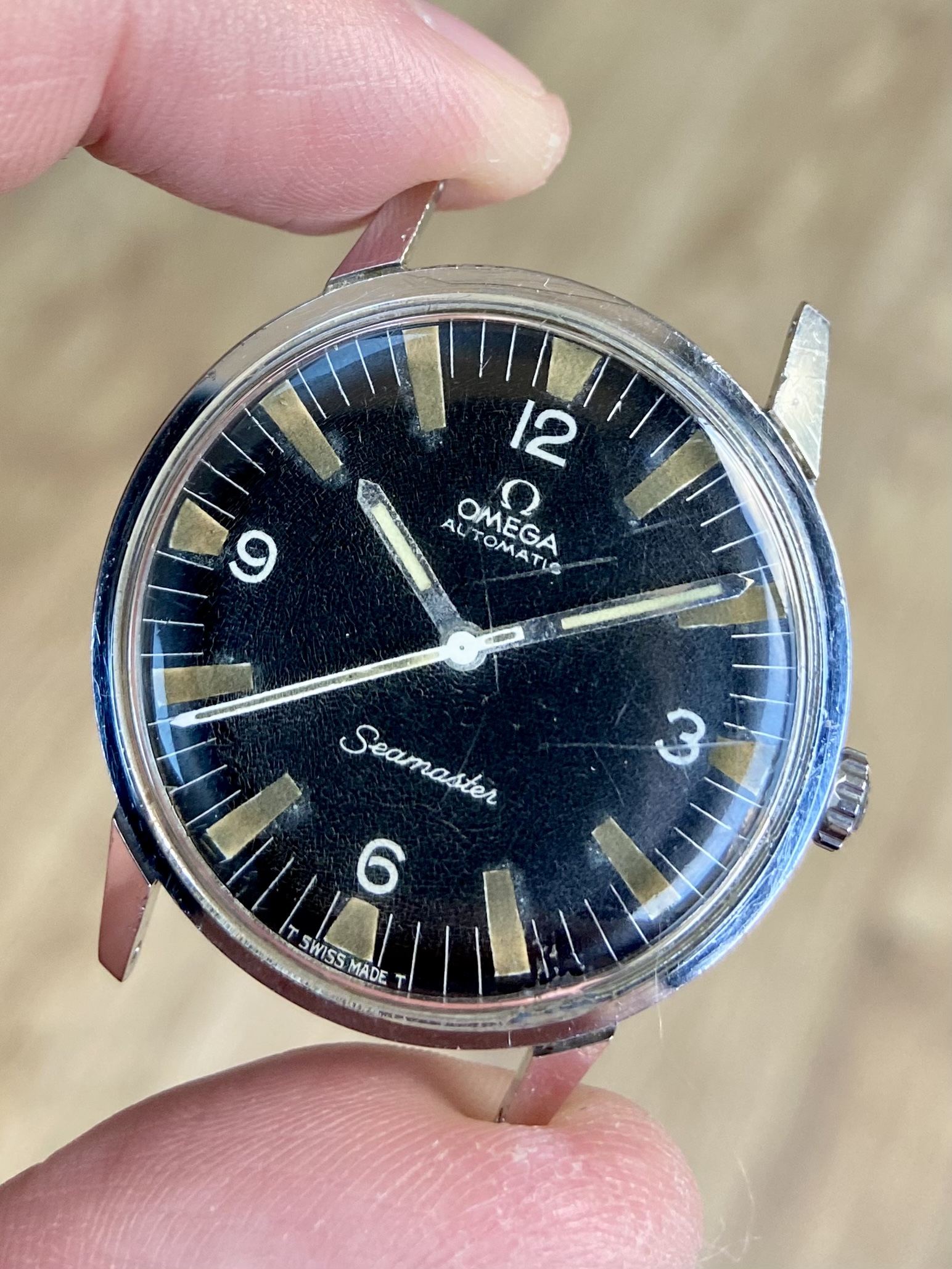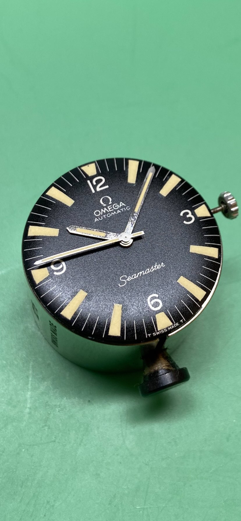 Anyway, I’ve been looking for a genuine ‘Seamaster 300 Companion’ on and off for a few years and they’re not easy to find. Crucially, it’s not just the dial but the hands that are rare, particularly the seconds hand which I believe is only seen on this specific version of the 165.002. Apart from the specific dial and hands, the case, movement and crown are the standard items seen on the 165.002.