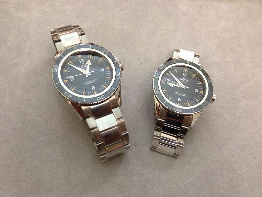 I love the 40mm case. Thankfully Omega did not case this in a 42 or 44mm case. However it is a little thick at 15mm vs 12.8mm on my 16610LV. It may be due to the movement but I will overlook this as this is after all a modern dive watch. Exhibition caseback looks nice and all but I still prefer a solid caseback for this SM300. Don't get me wrong, I love to ogle at movements under the hood and I appreciate high end finishing when I see them. The finishing is respectable but this is no Lange. Perhaps a commemorative solid caseback may be more apt. Just a thought.
