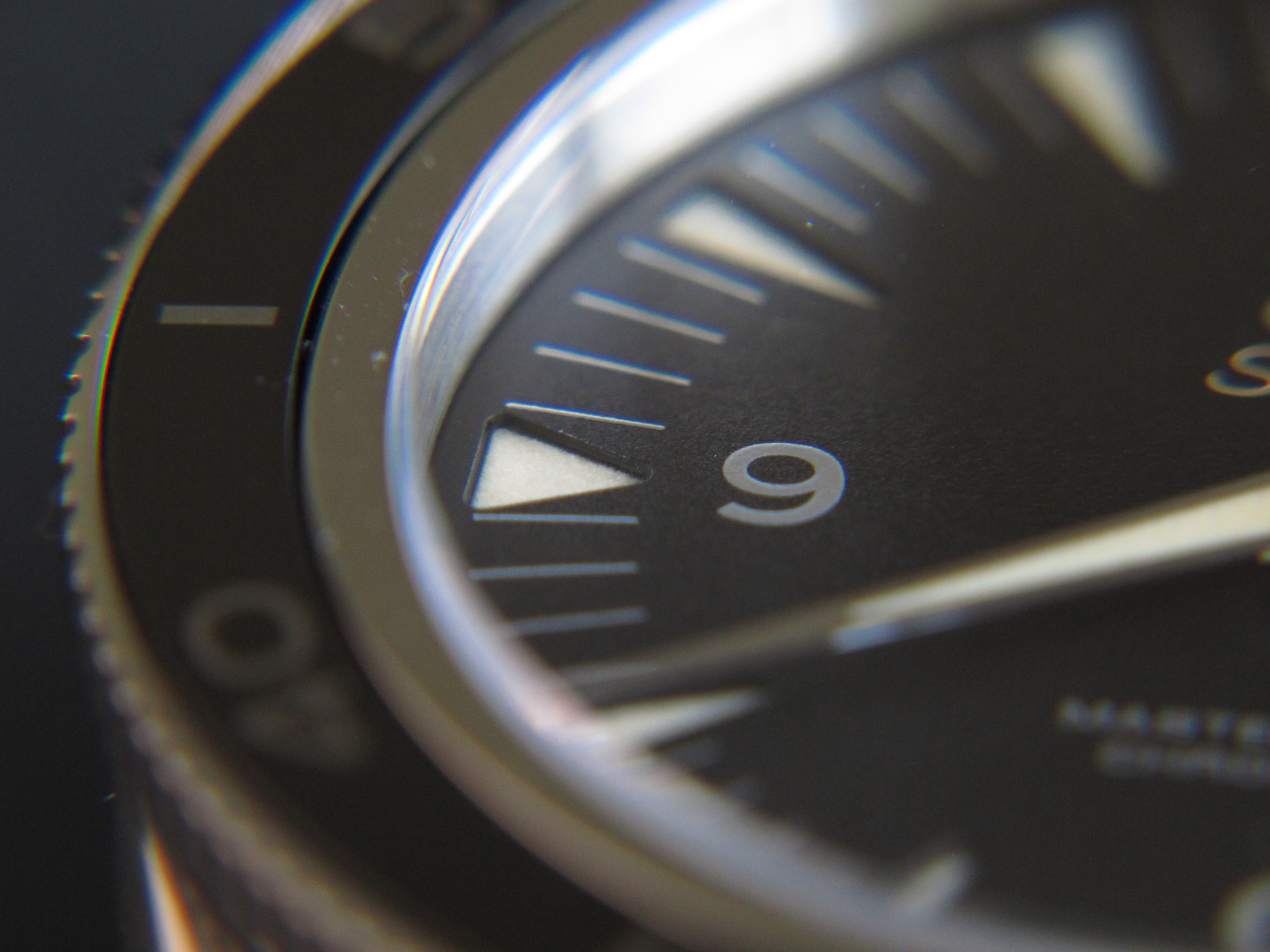 I think I like it. Was doubtful about all the text on the dial as I studied the press photos and real life photos of the watch. Would have much preferred the Seamaster text to be on the lower half of the dial but it still works. The brown /gold fonts allow for some contrast from all the other white text. Love the "sandwiched" dial with the lume wells looking faithful to the originals. The faux patina works for me and I appreciate that Omega has applied a grainy texture with the lume.