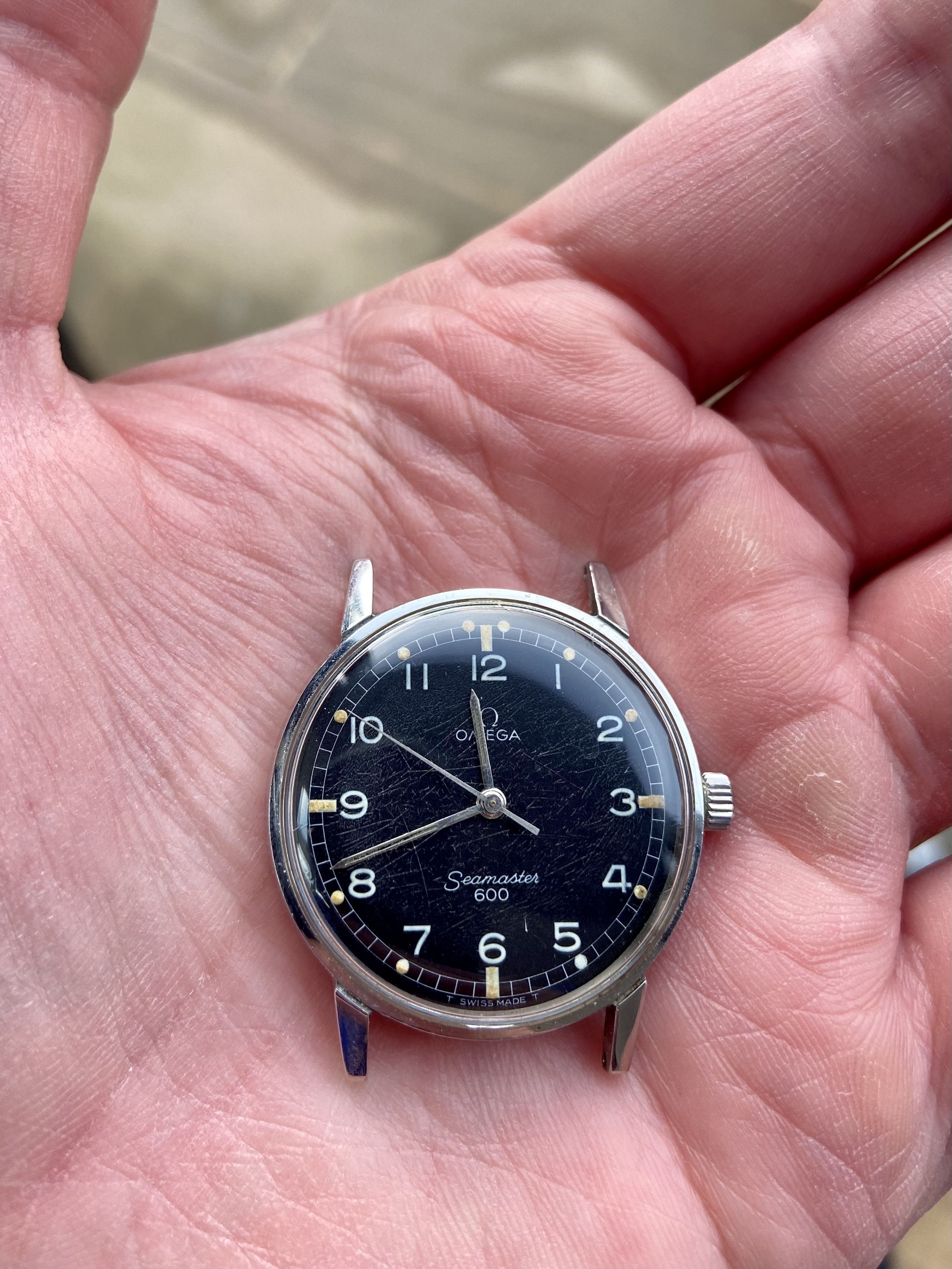 These are much less frequently seen. I’ve been looking for a good while and this was the first I’d seen for sale. Having a good look this morning, through an original a very crazed crystal, I’m happy it’s a factory original dial and it’s truly beautiful. Now to see if I can salvage the crystal...