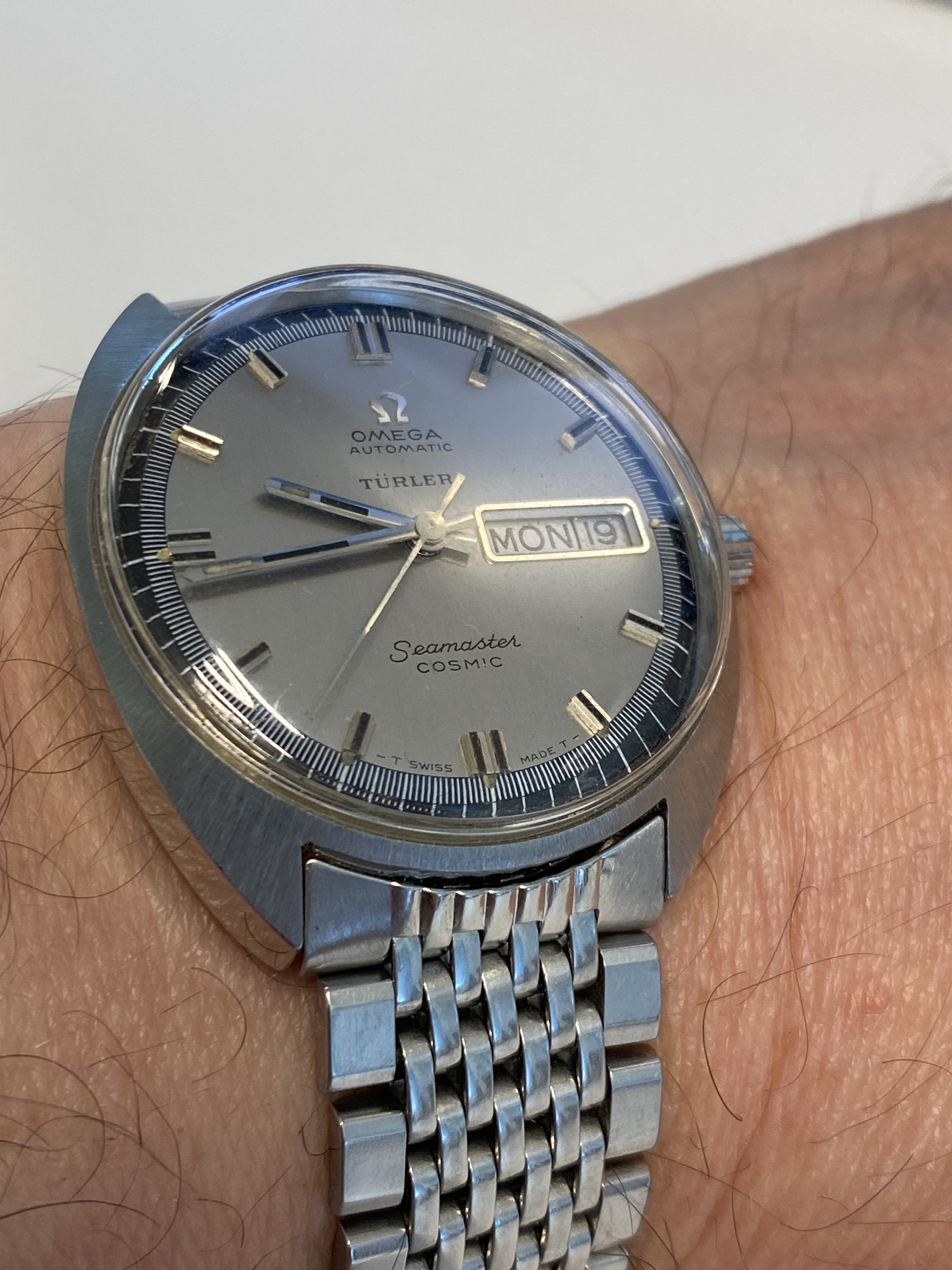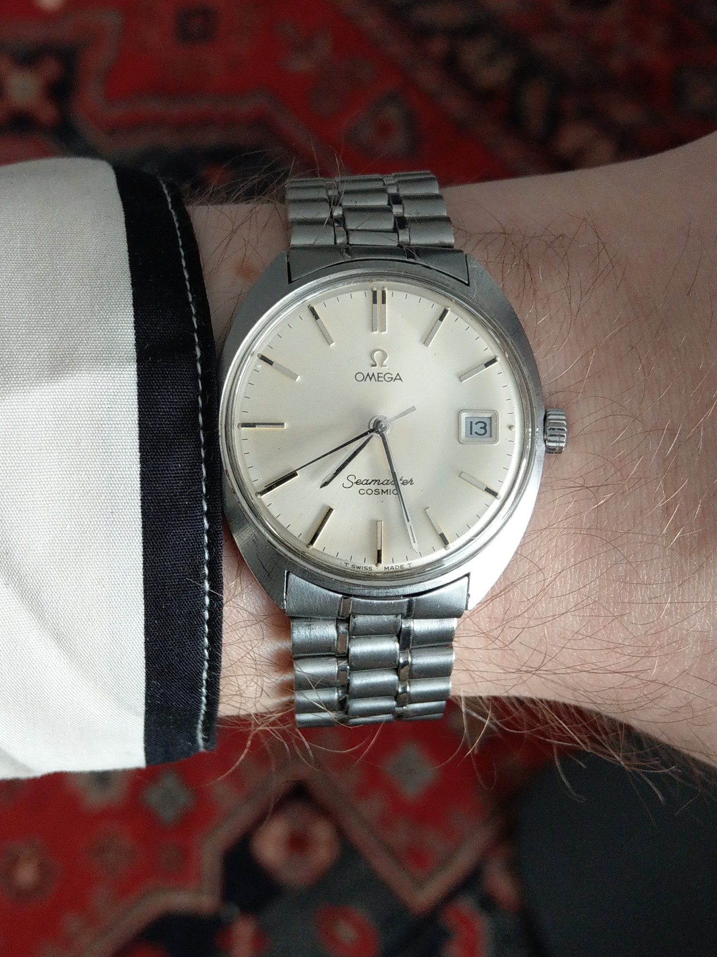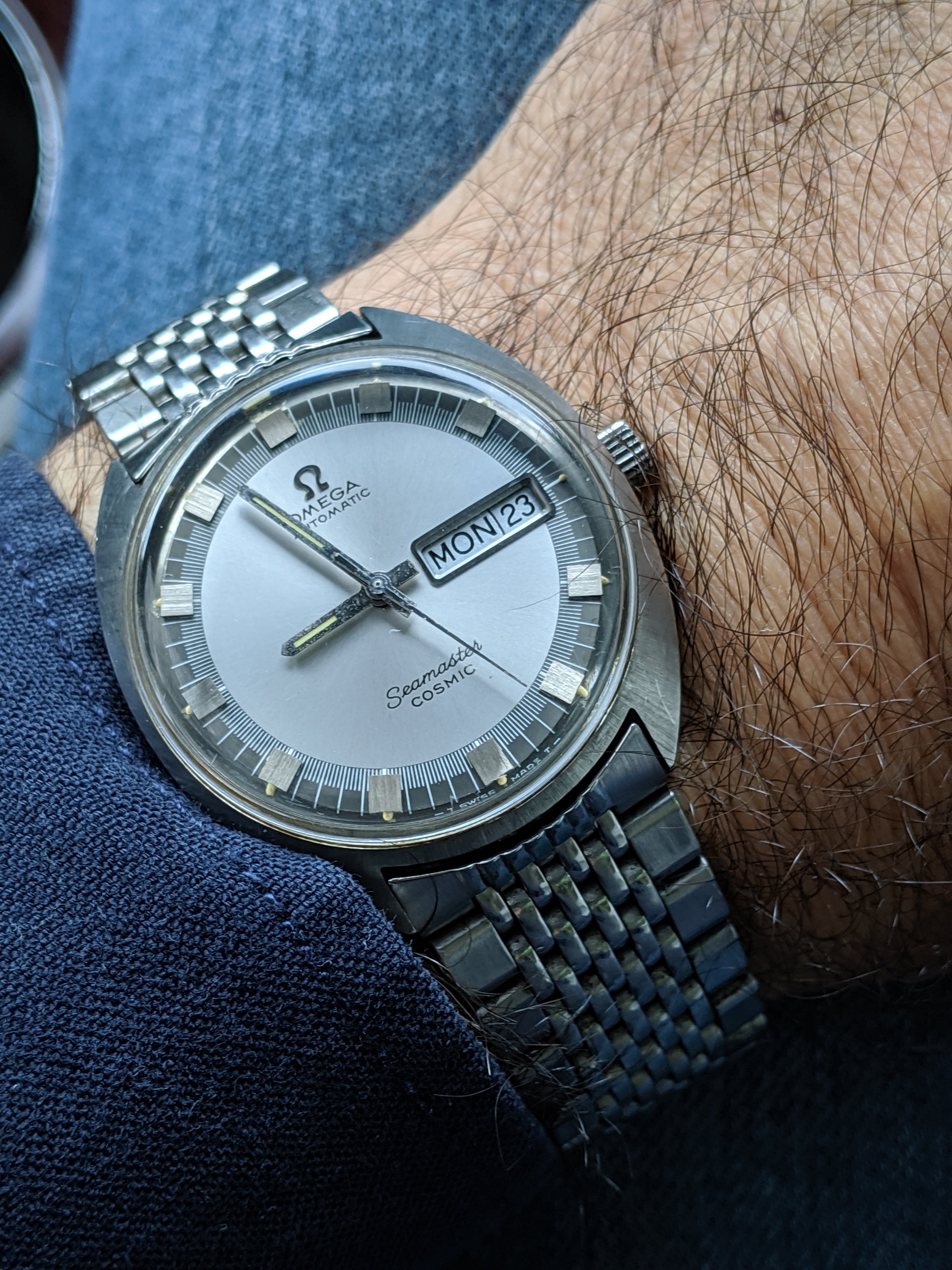 I didn’t even get to finish my sentence before the man popped up, yelled whatyoujustsay and tried to punch my teeth in. Luckily, I have good reflexes so I was able to dodge the punch. He started chasing me around the bar and I was just running, blocking and dodging strikes. But as a diehard Cosmic collector and our club’s apostle I was still trying to convince him of the joys of vintage Omega. I evaded attacks and shouted “Wait! Stop! Just heard me out!” but he flung a beer bottle at me. I kept trying to convert him: “Cosmic is lovely! Funky looks!” - evaded a strike - “Great bang for your buck!” - blocked a kick - “You will like a monocoque case!” - Nonetheless the man wasn’t having any of it. Instead, he shouted all sorts of profanities and even “I don’t want your homocock!” How rude!