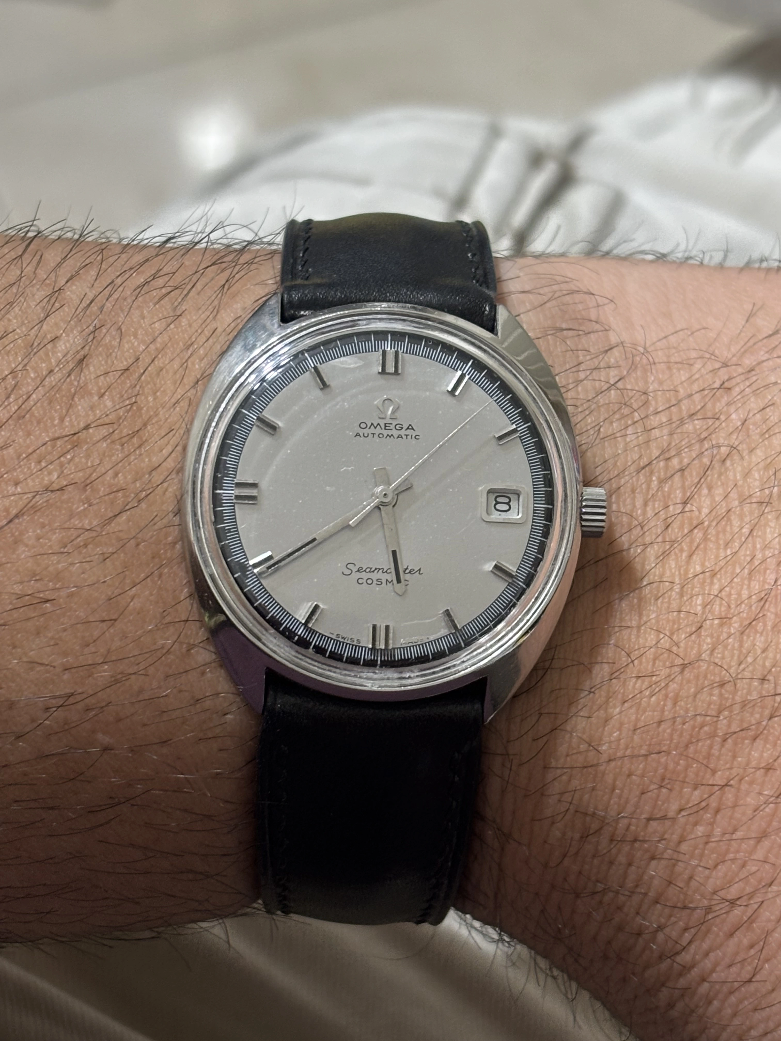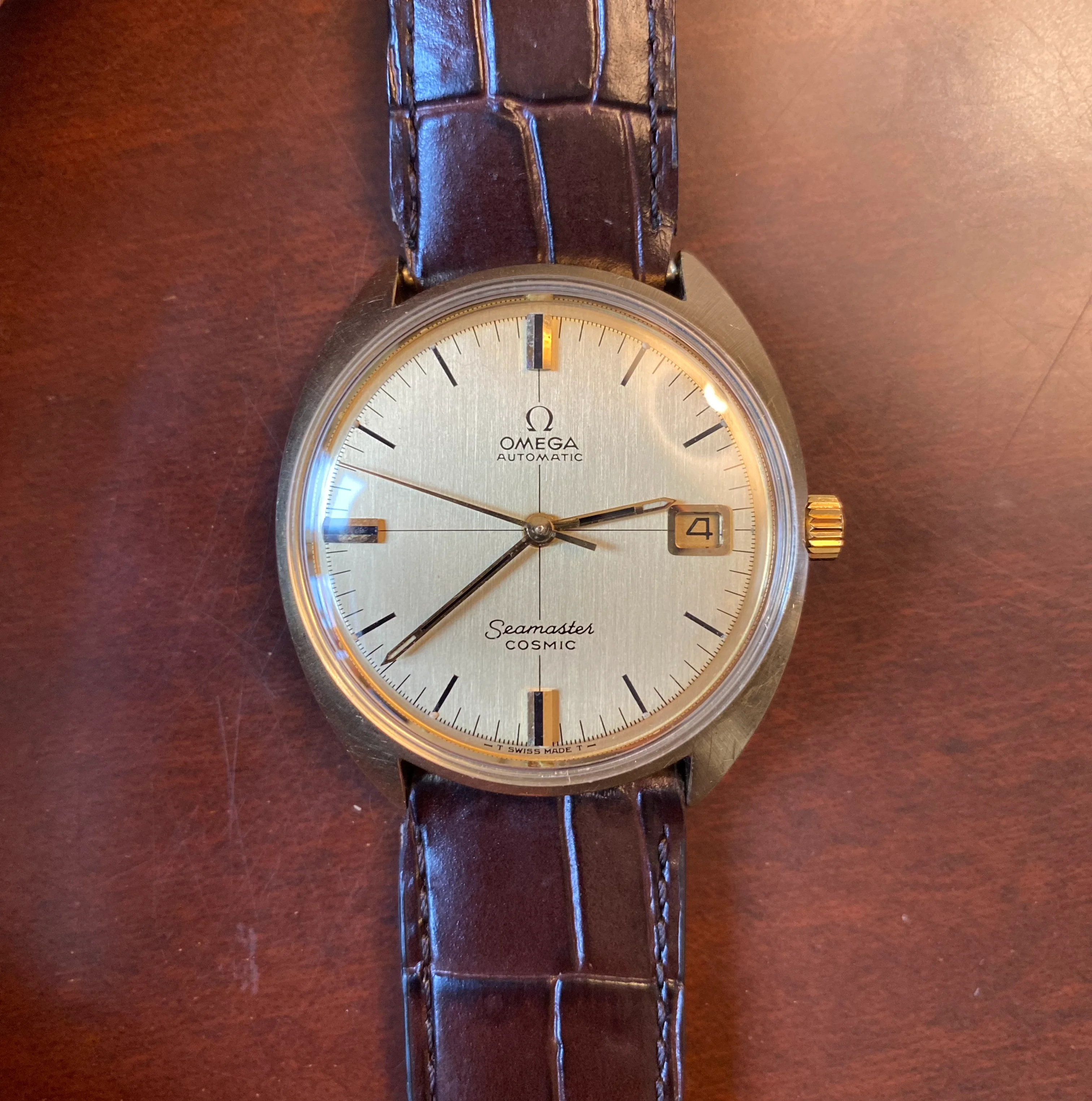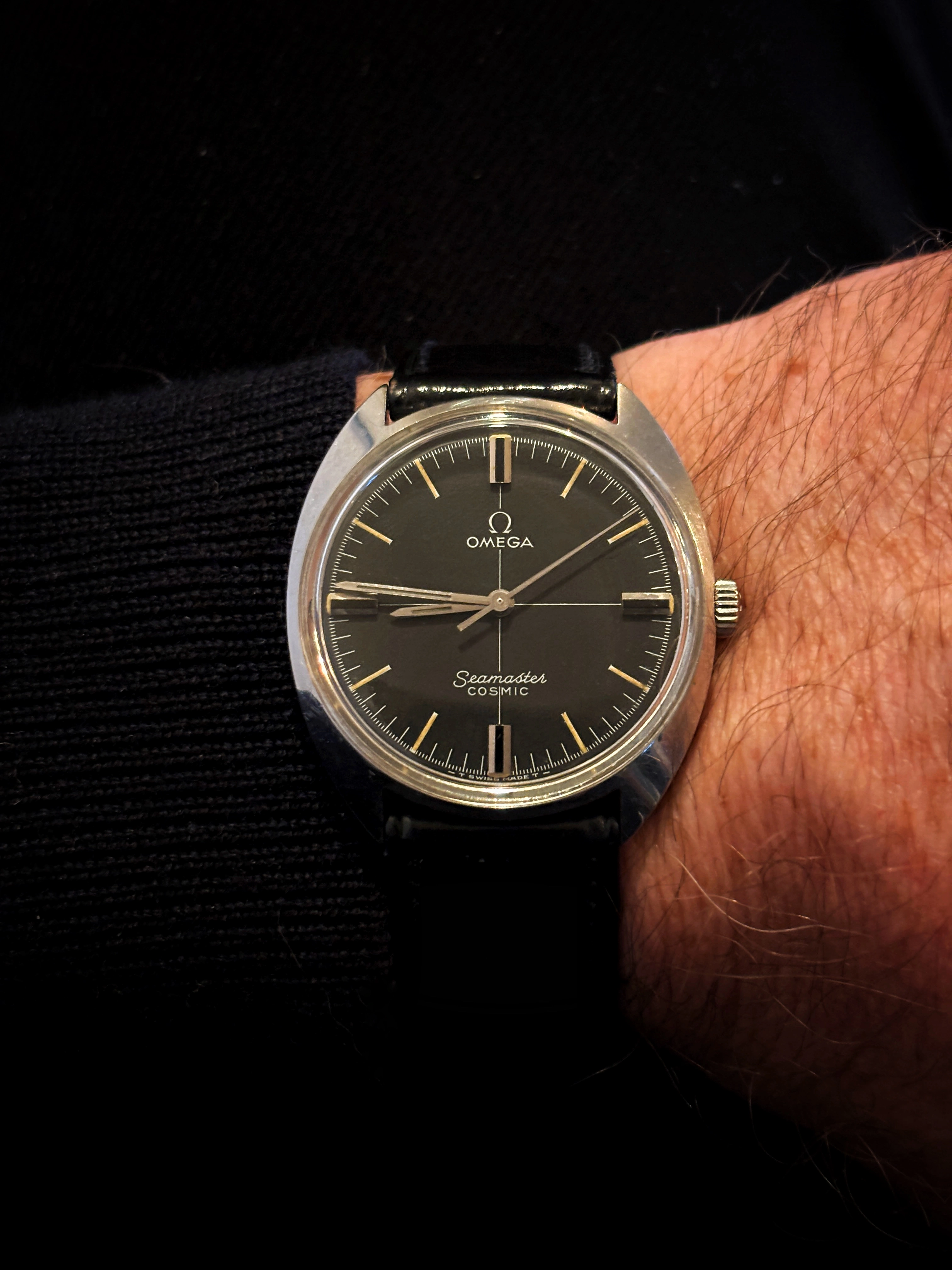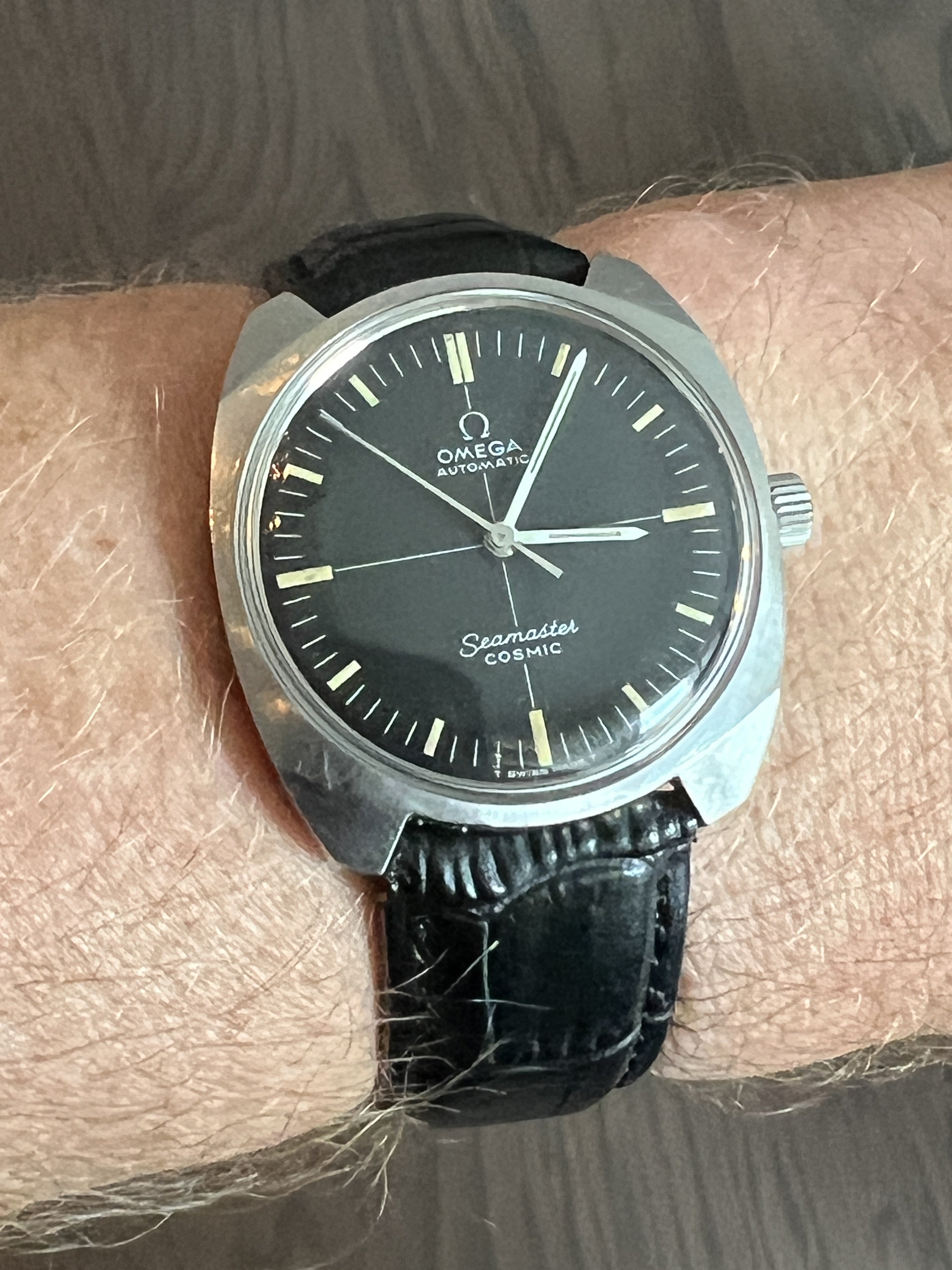 My grandfathers cosmic from what I remember was a retirement gift and now handed down to me. Recently handed in for service with a broken foot which rotated the dial and a scratch on the crystal. Now feels brand new and given new life. The manual winding sounds and feels much more crisp. REF 166026-TOOL-107. Liking the black dials with cross hairs and would love owning one for the contrast and a beautiful set with my goldie.