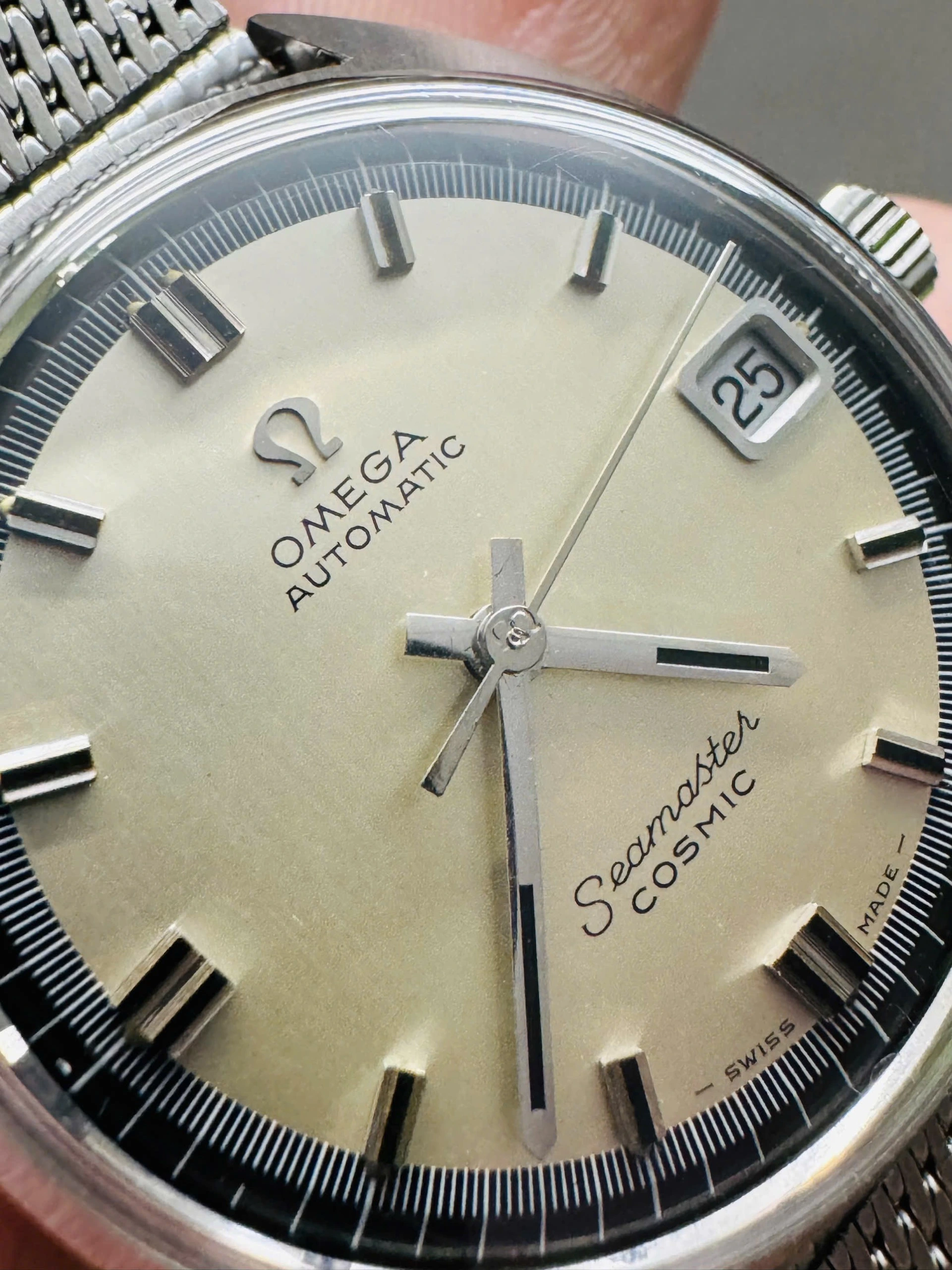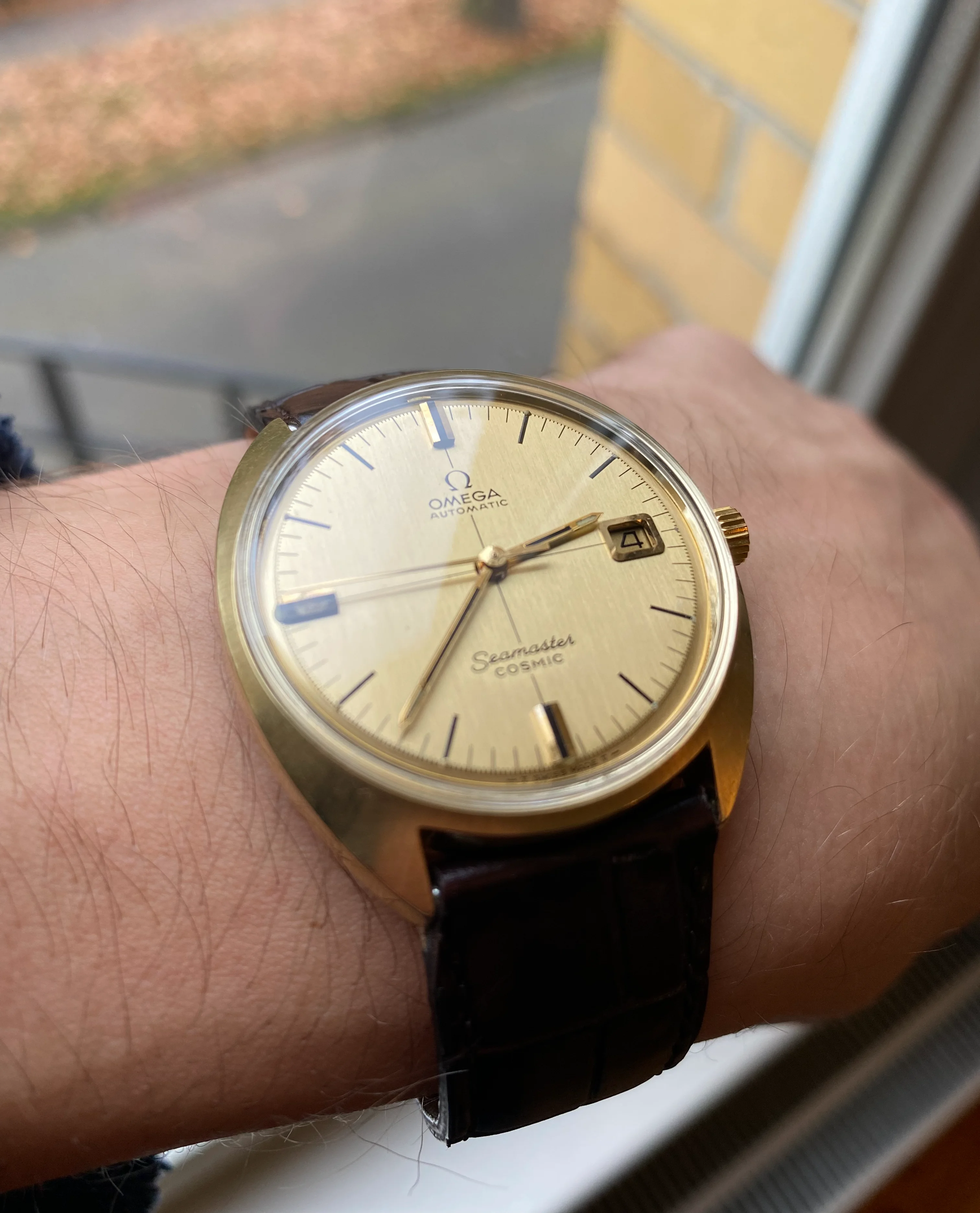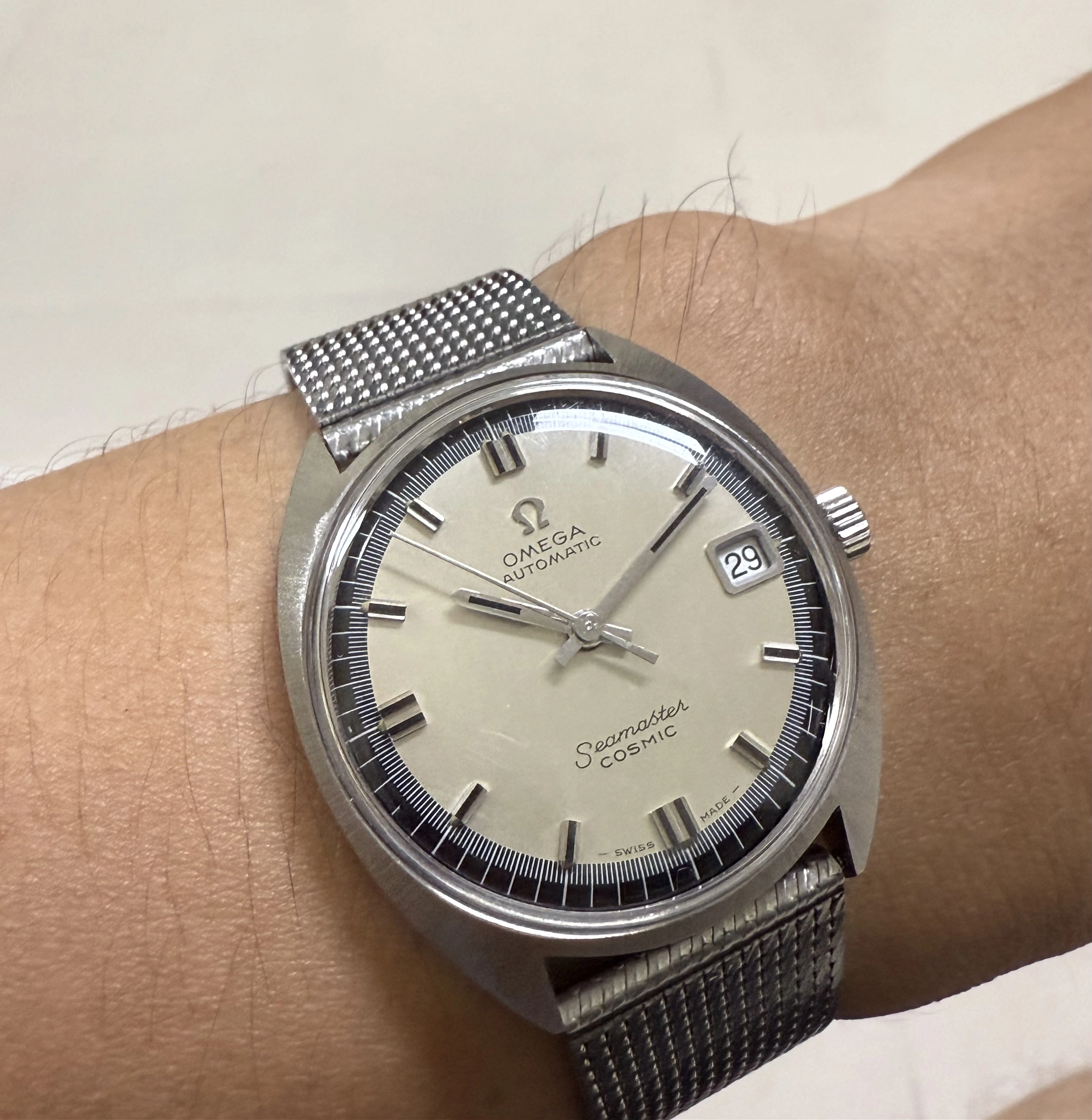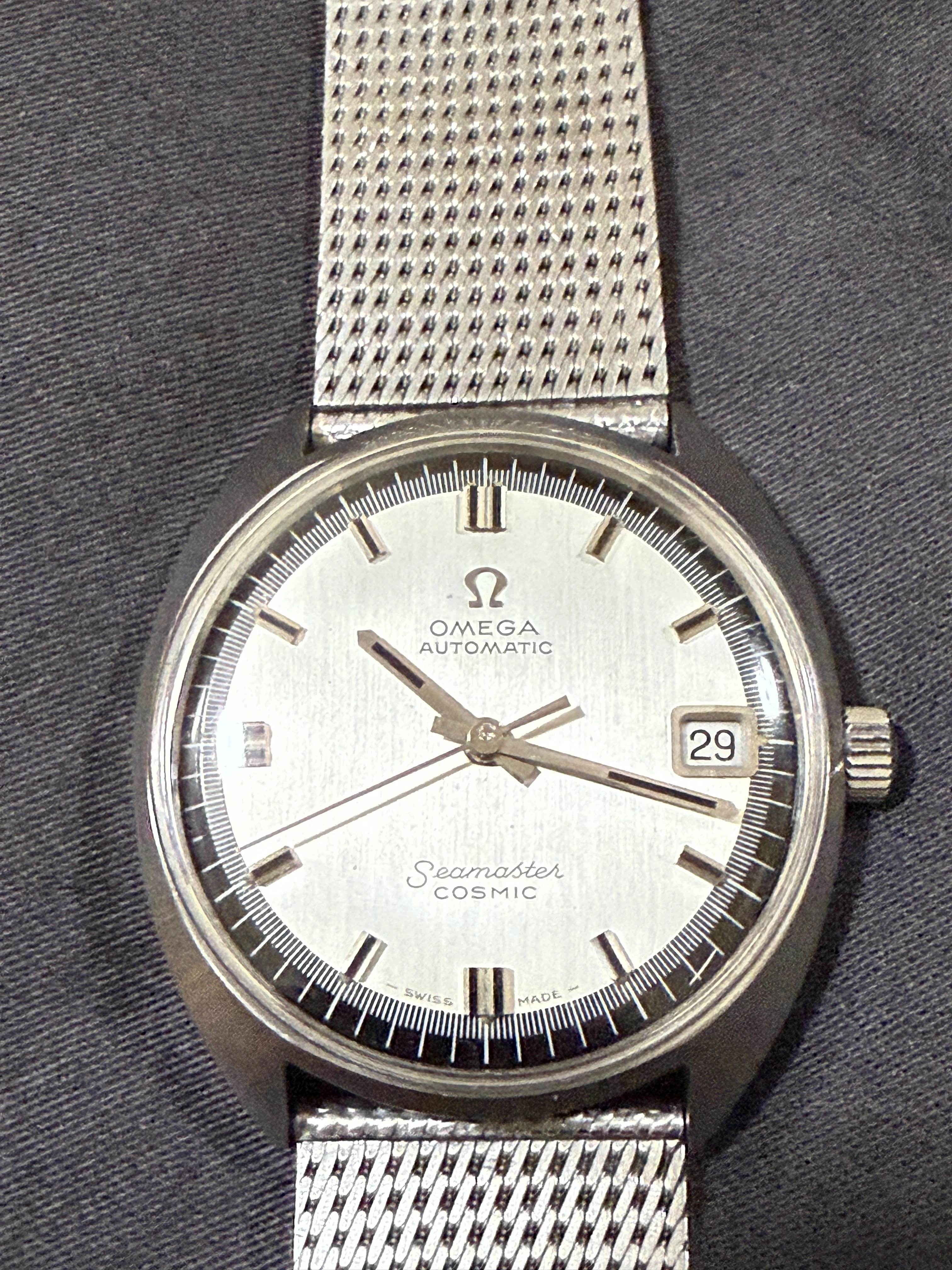 My grandfathers cosmic from what I remember was a retirement gift and now handed down to me. Recently handed in for service with a broken foot which rotated the dial and a scratch on the crystal. Now feels brand new and given new life. The manual winding sounds and feels much more crisp. REF 166026-TOOL-107. Liking the black dials with cross hairs and would love owning one for the contrast and a beautiful set with my goldie.