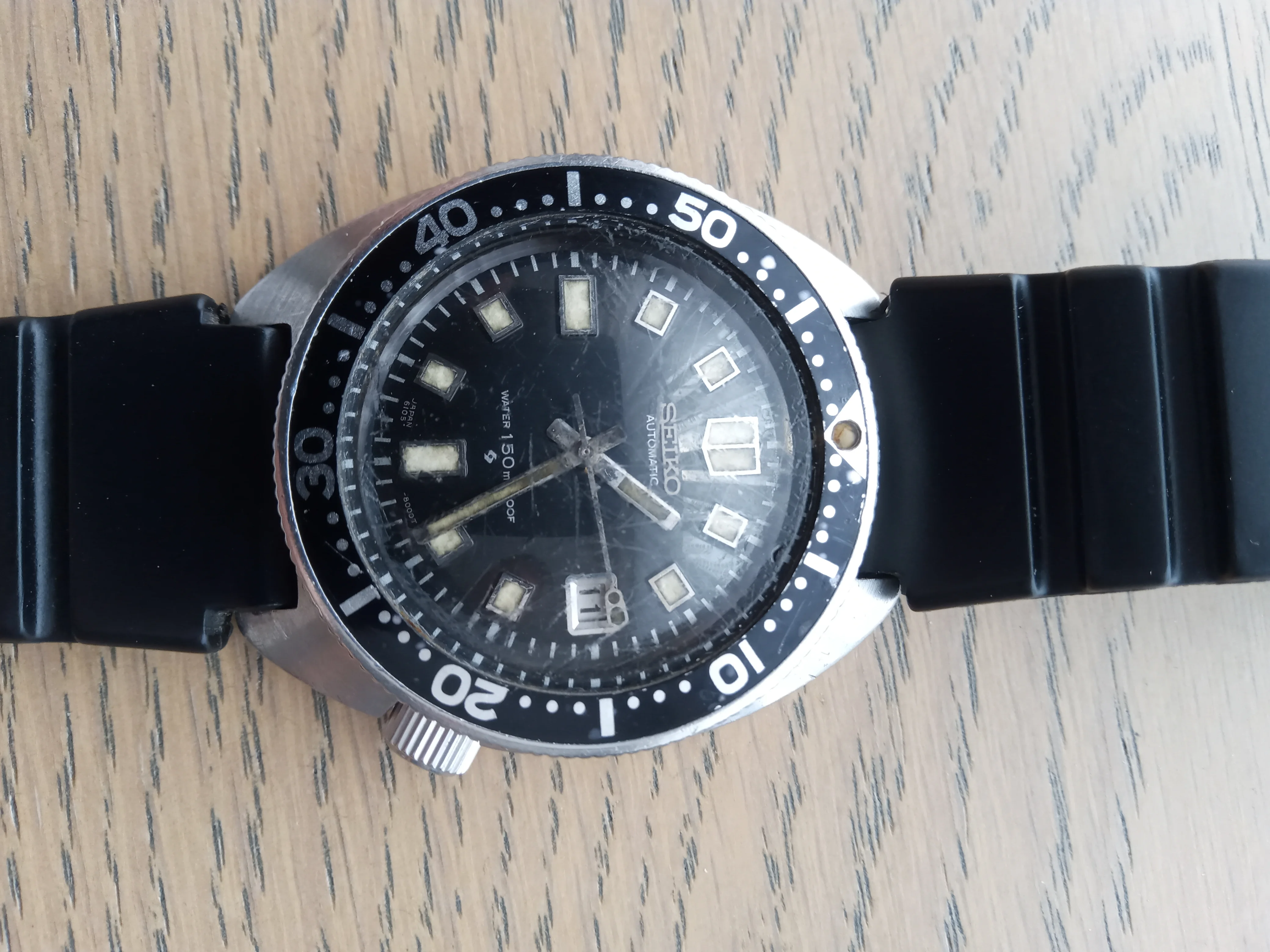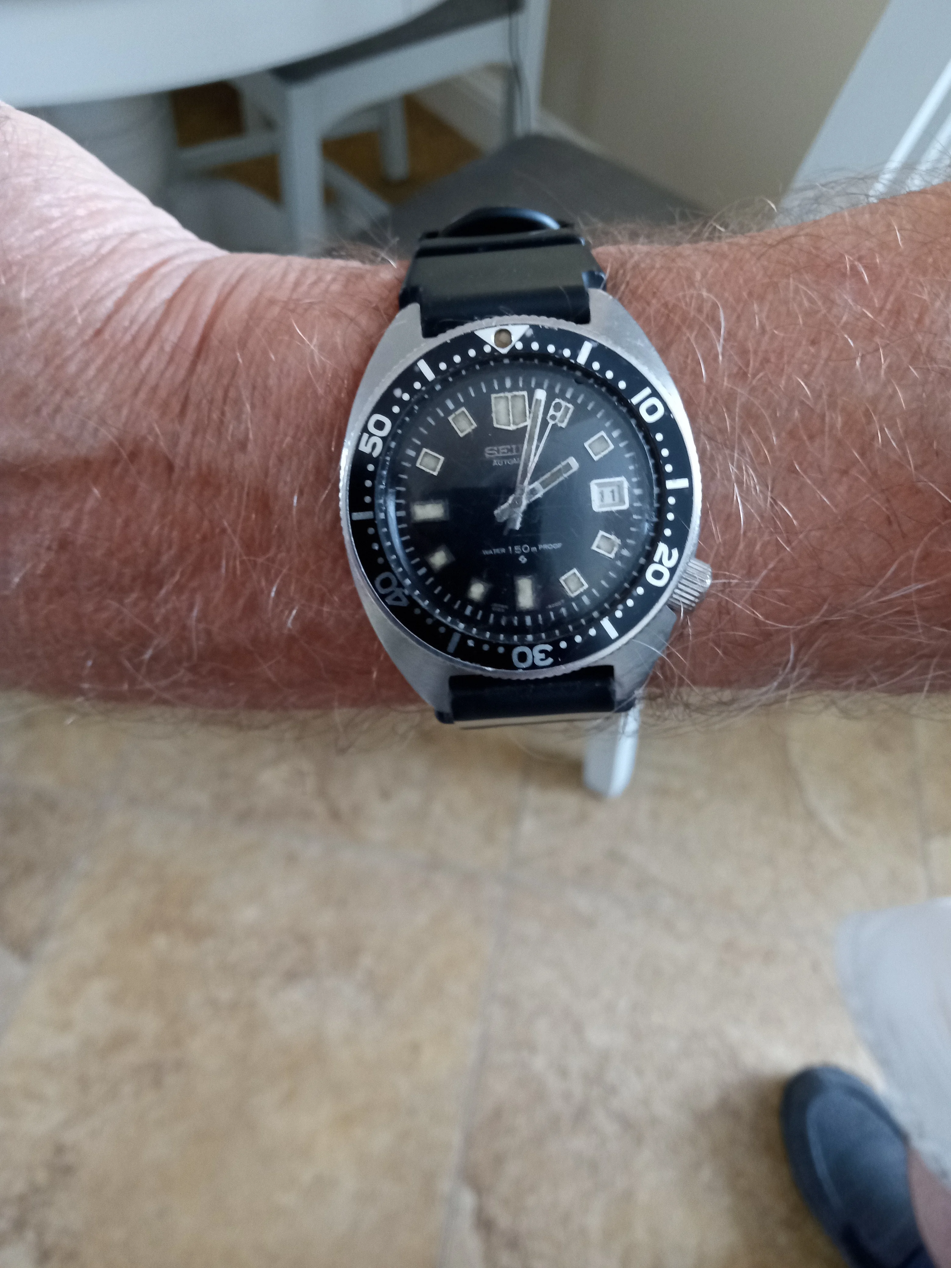 That's a heck of a find for 2GBP! July 1969 Proof/Proof with the hacking 6105B movement. You should have a really nice watch after a service and a new crystal. FYI: Spencer Klein sells correct replacement crystals that exactly match the OEM spec.