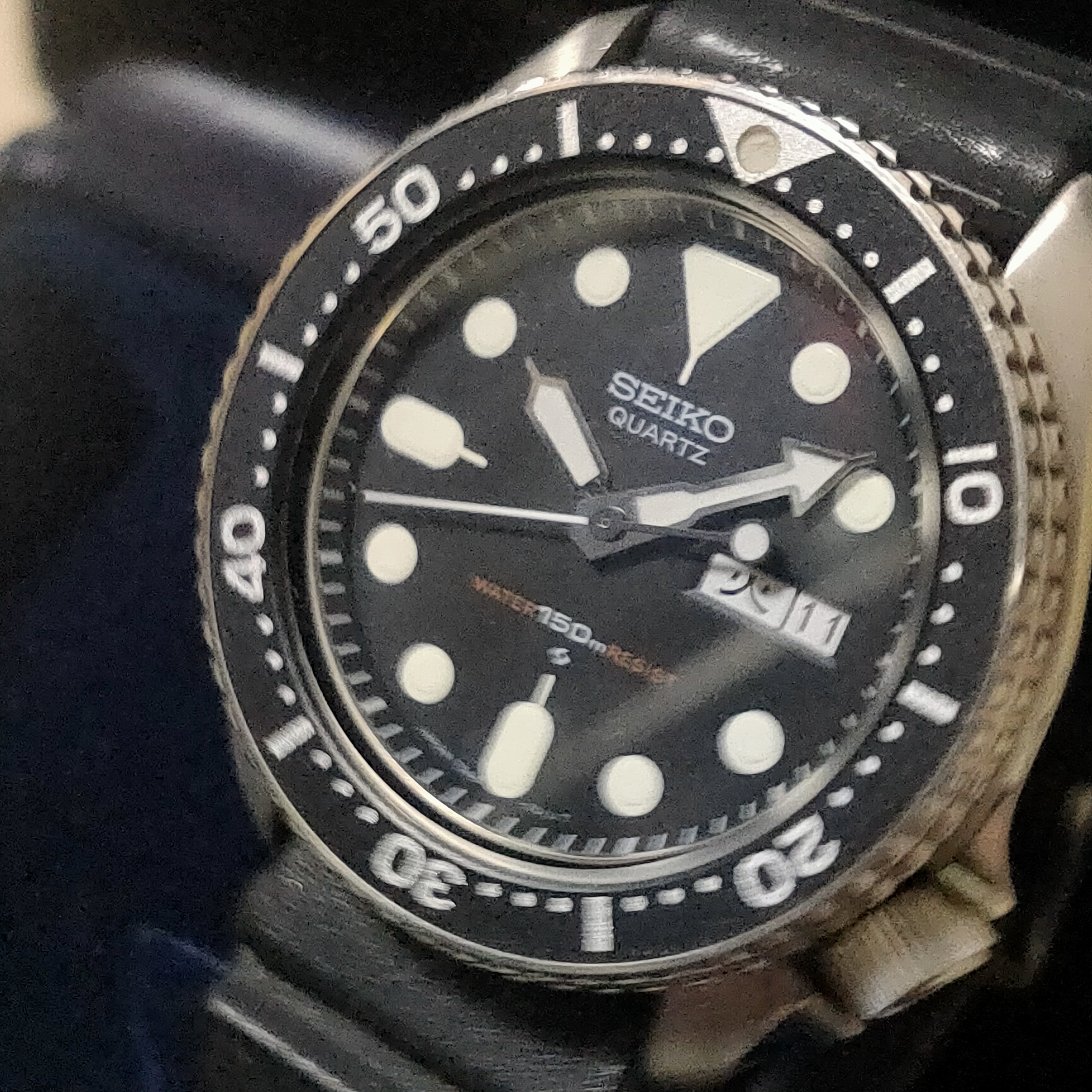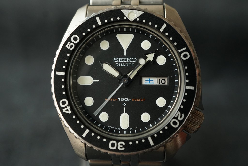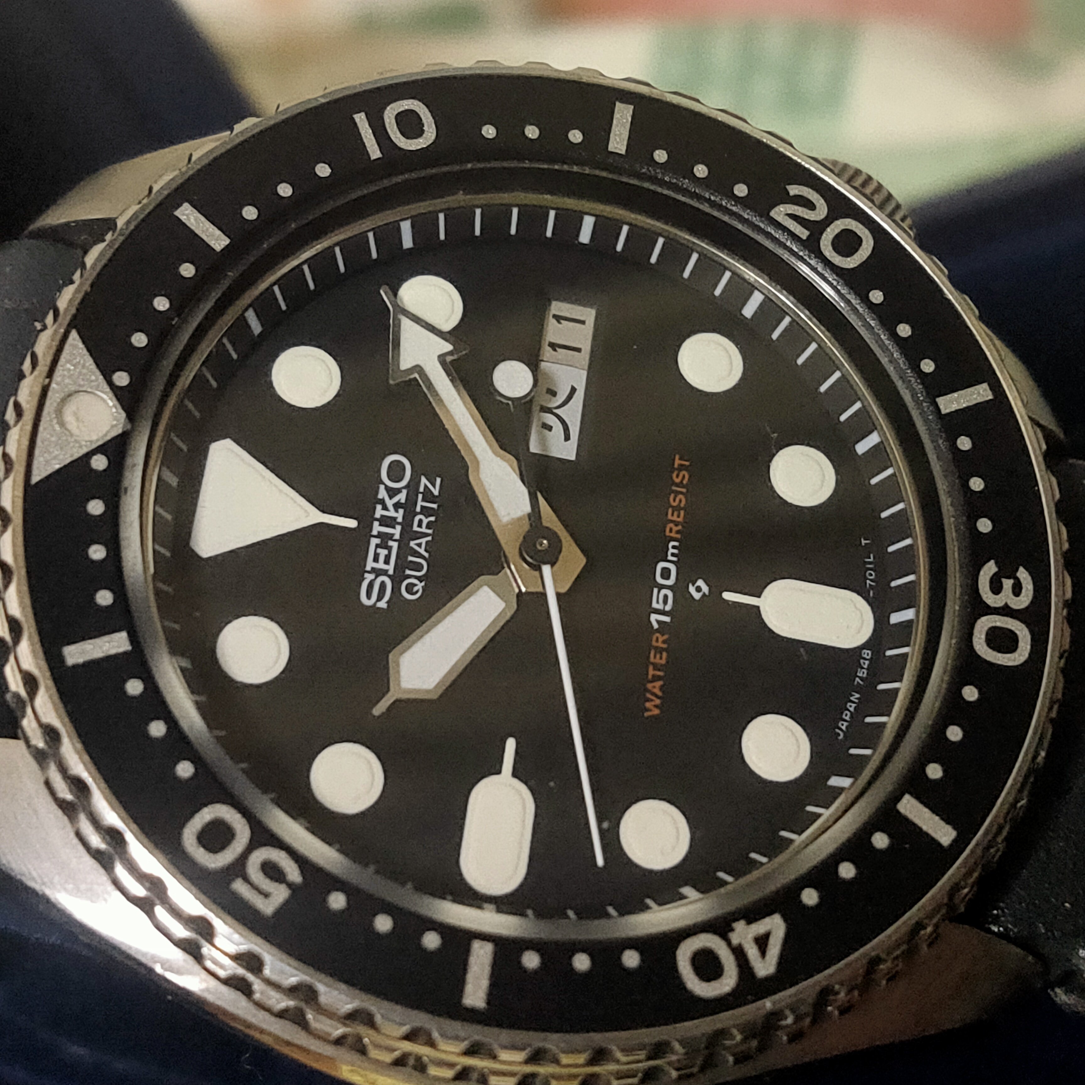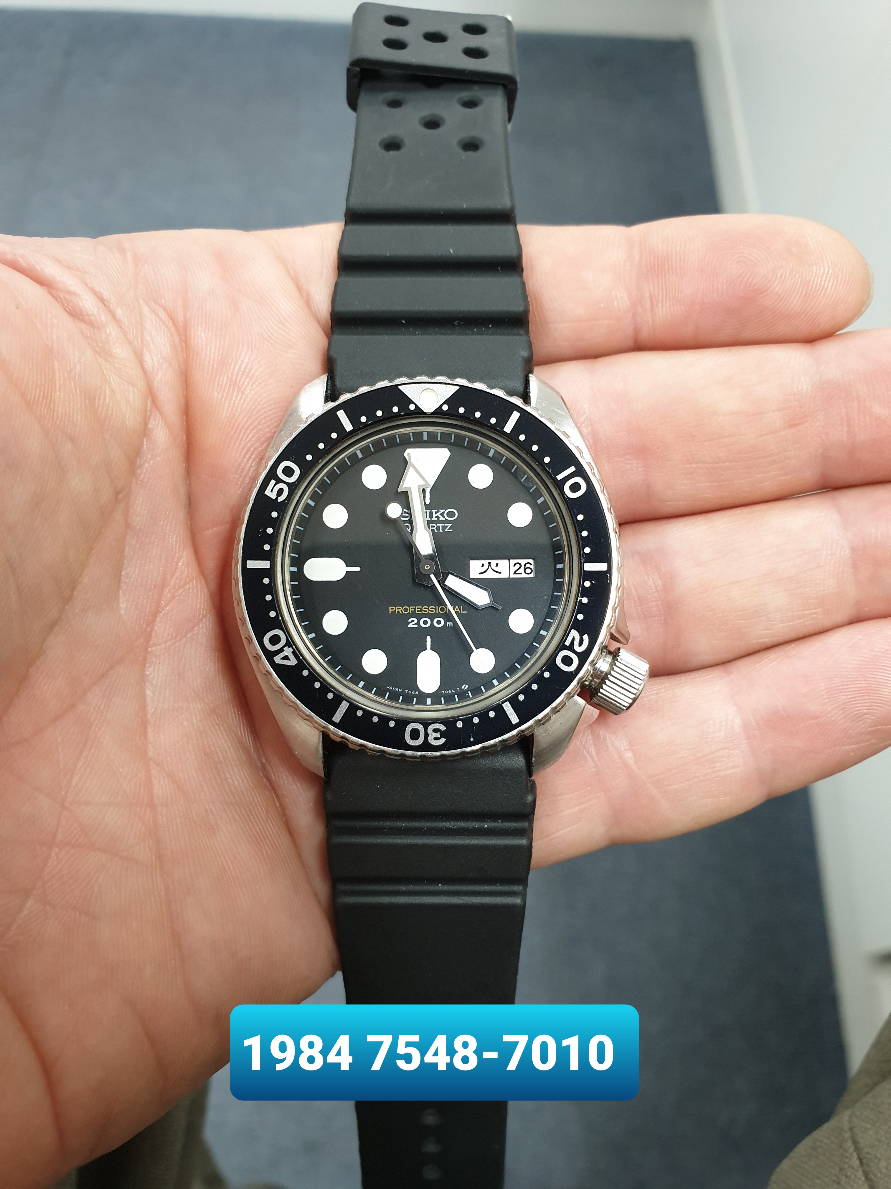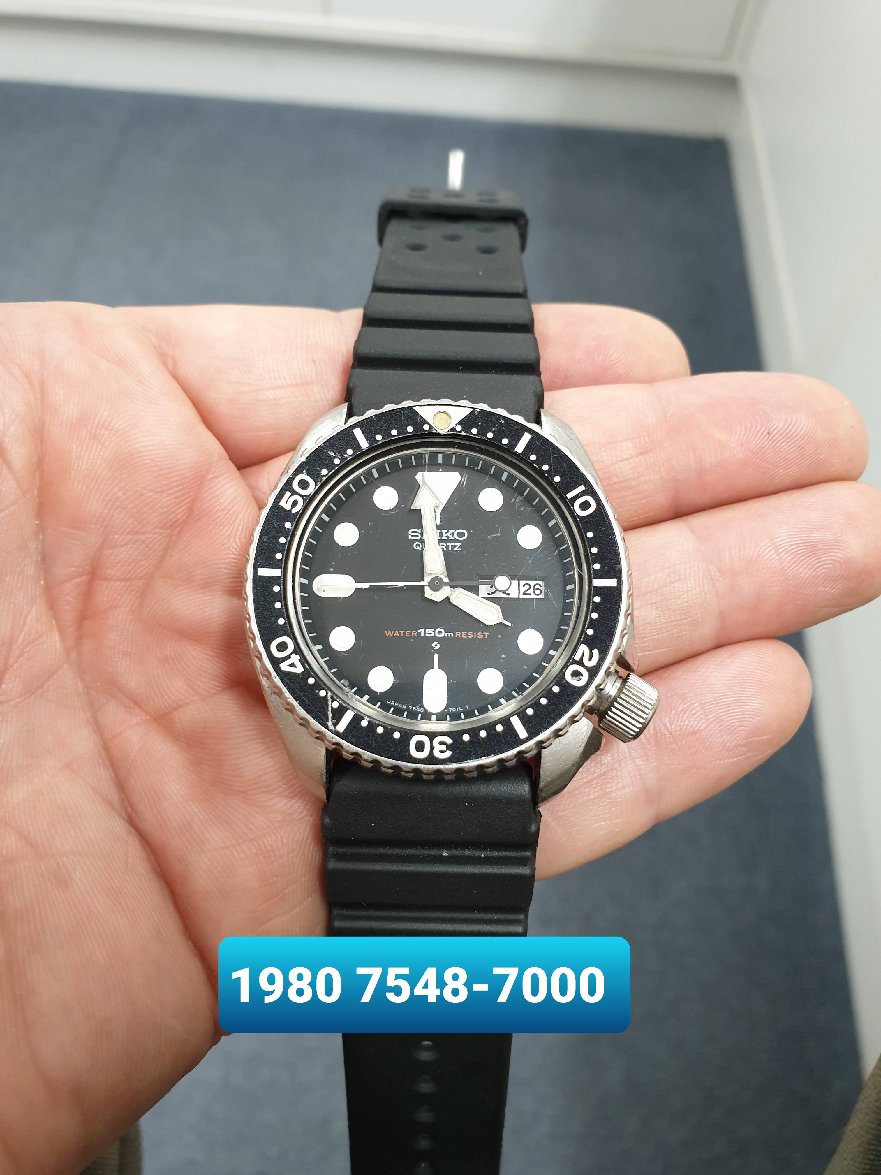 Since the early 80's, Seiko dive watches, especially the 150m quartz model pictured here, have been popular with US Navy divers. Collectors call them "Seiko 150m quartz diver," but more accurately, it is a "Seiko 7548 diver," because it uses a quartz movement labeled with that number.