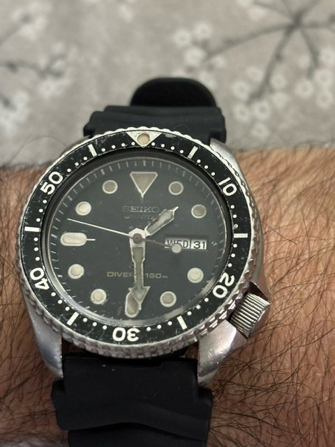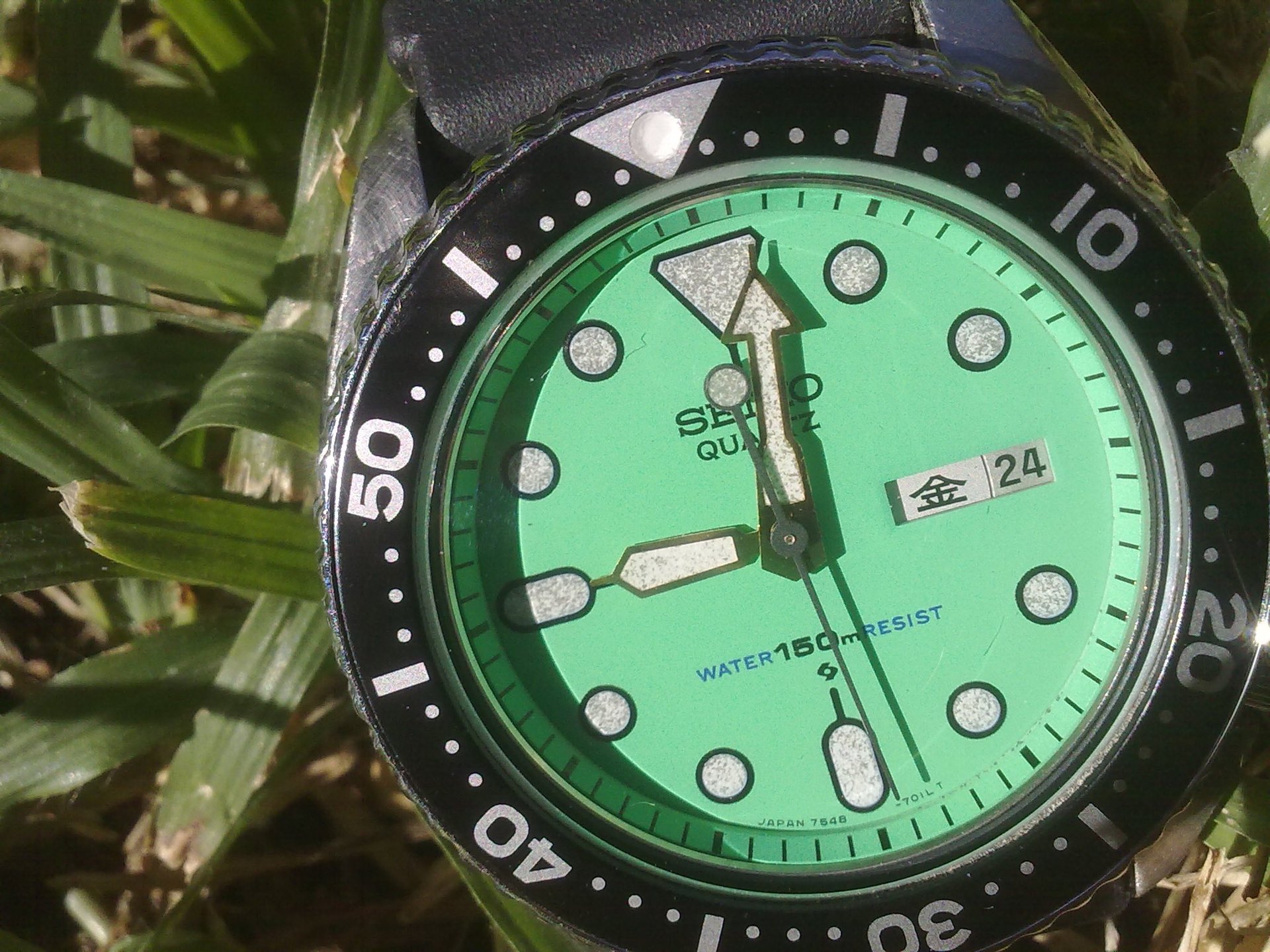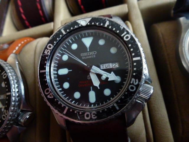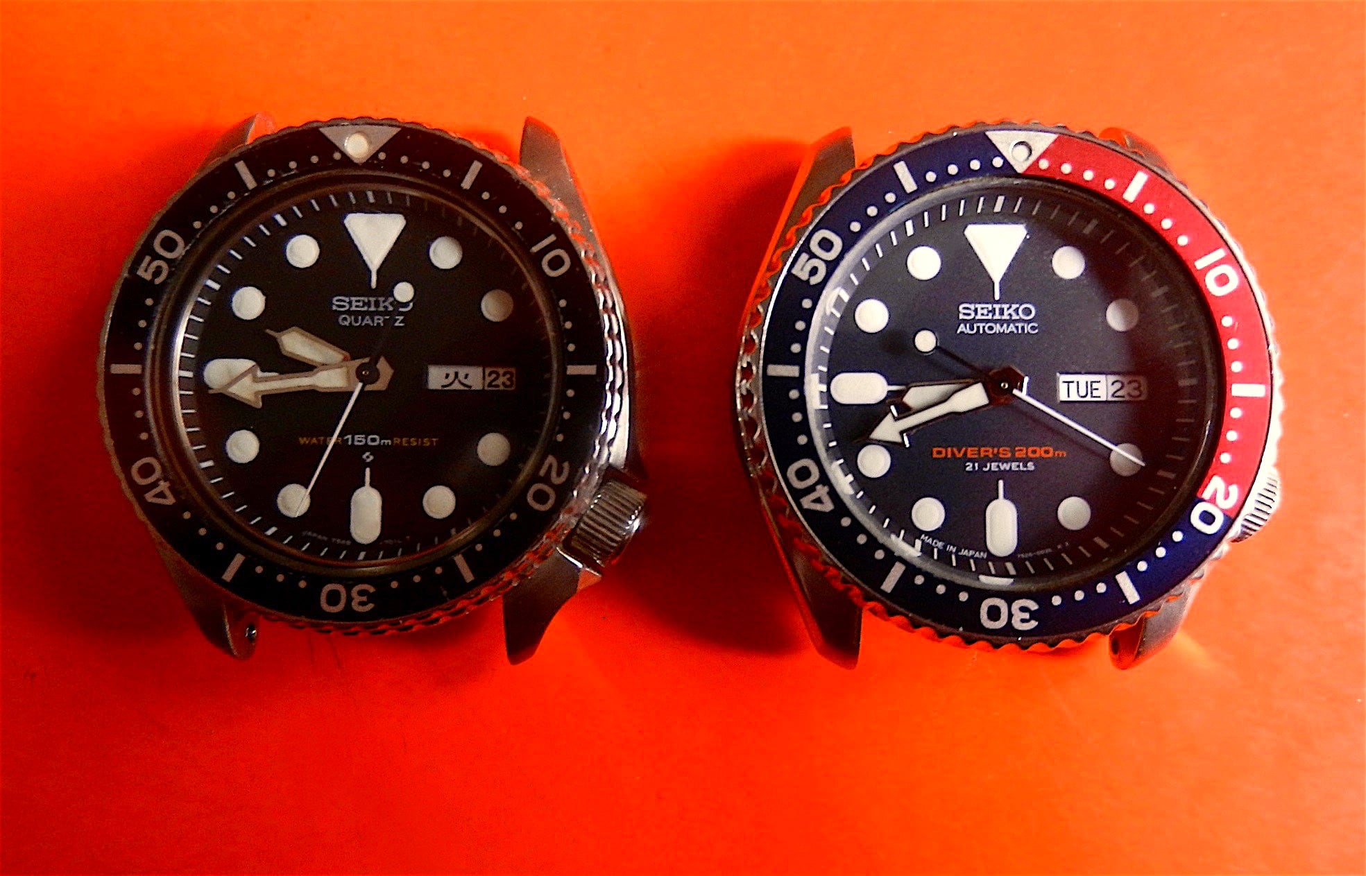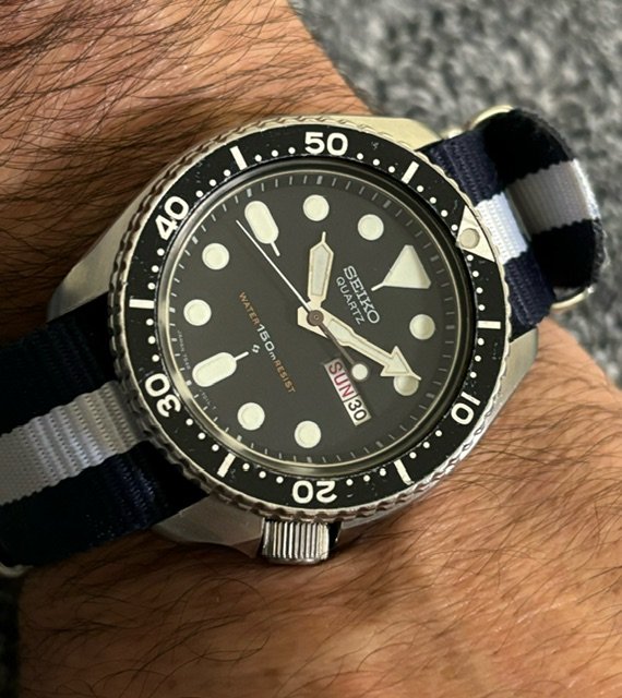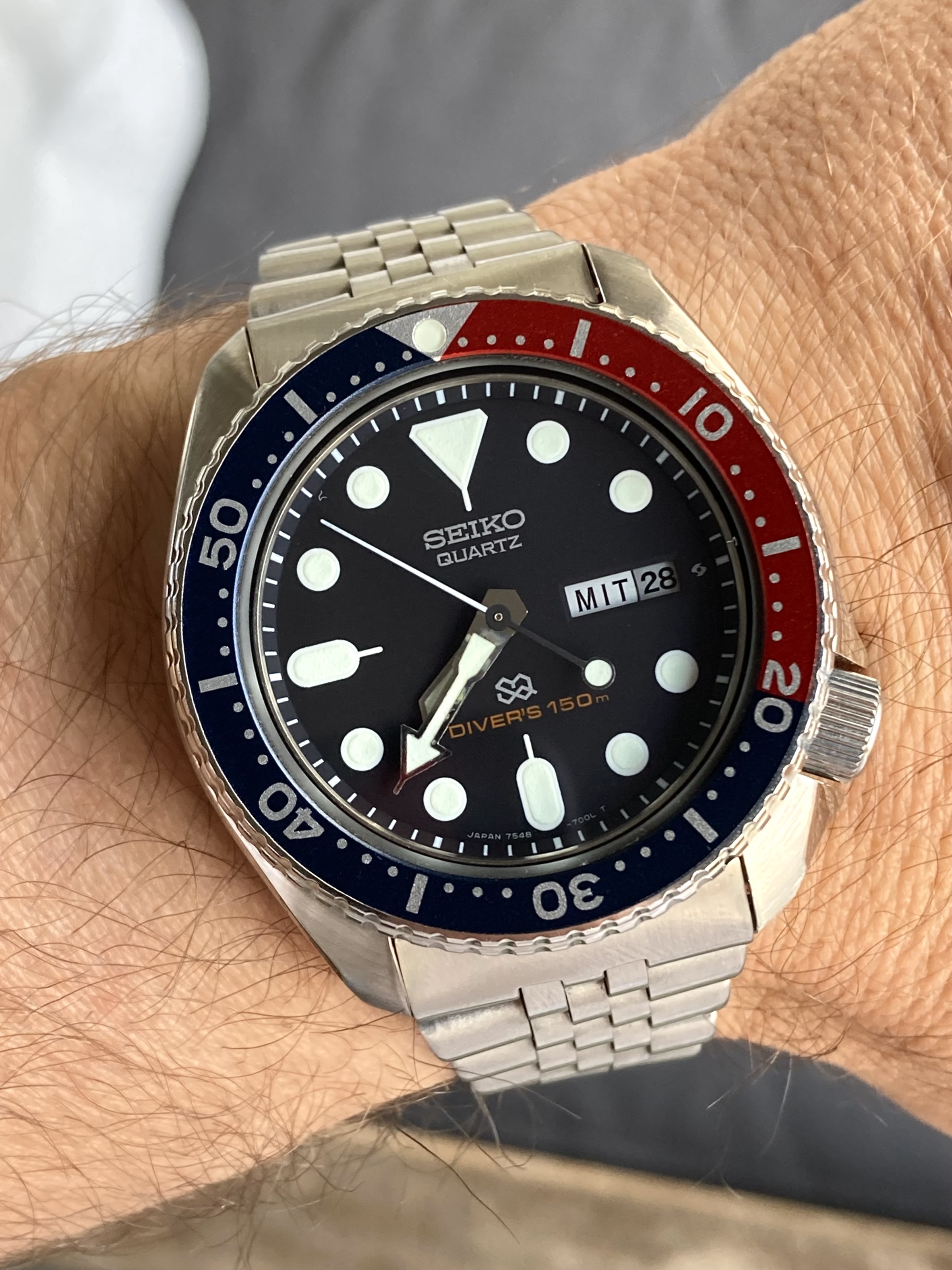 Since the early 80's, Seiko dive watches, especially the 150m quartz model pictured here, have been popular with US Navy divers. Collectors call them "Seiko 150m quartz diver," but more accurately, it is a "Seiko 7548 diver," because it uses a quartz movement labeled with that number.
