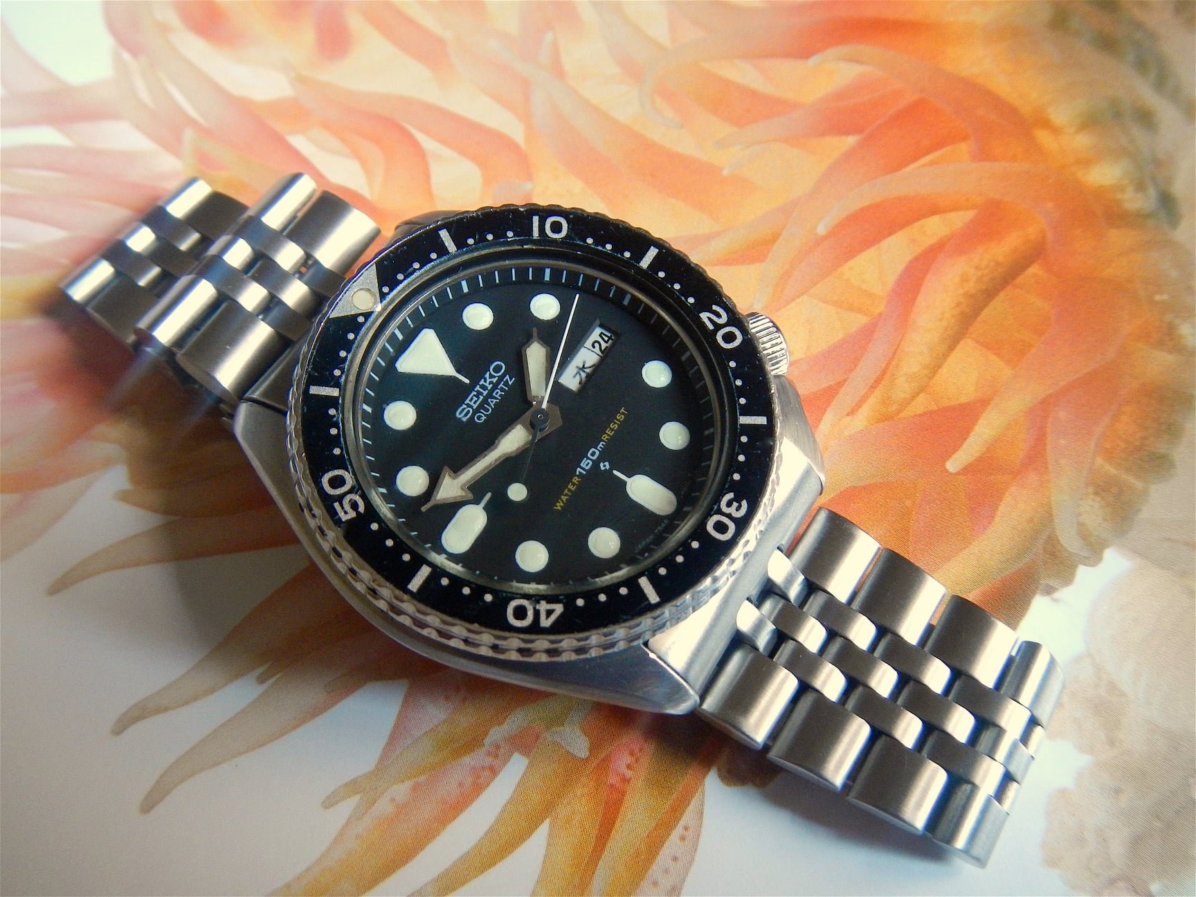 It is well known among vintage dive watch collectors that real US Navy divers wear Seiko dive watches--not the Rolex Submariner, as most vintage watch dealers want you to believe. US Navy divers perform a variety of underwater tasks on ships and submarines that include hull inspection and cleaning, installation and removal of equipment, and welding repairs to enable damaged vessels to continue steaming and complete their missions. While performing these tasks, they usually wear a Seiko either on the supplied rubber strap or, during off-duty hours, on a metal one such as a jubilee bracelet.