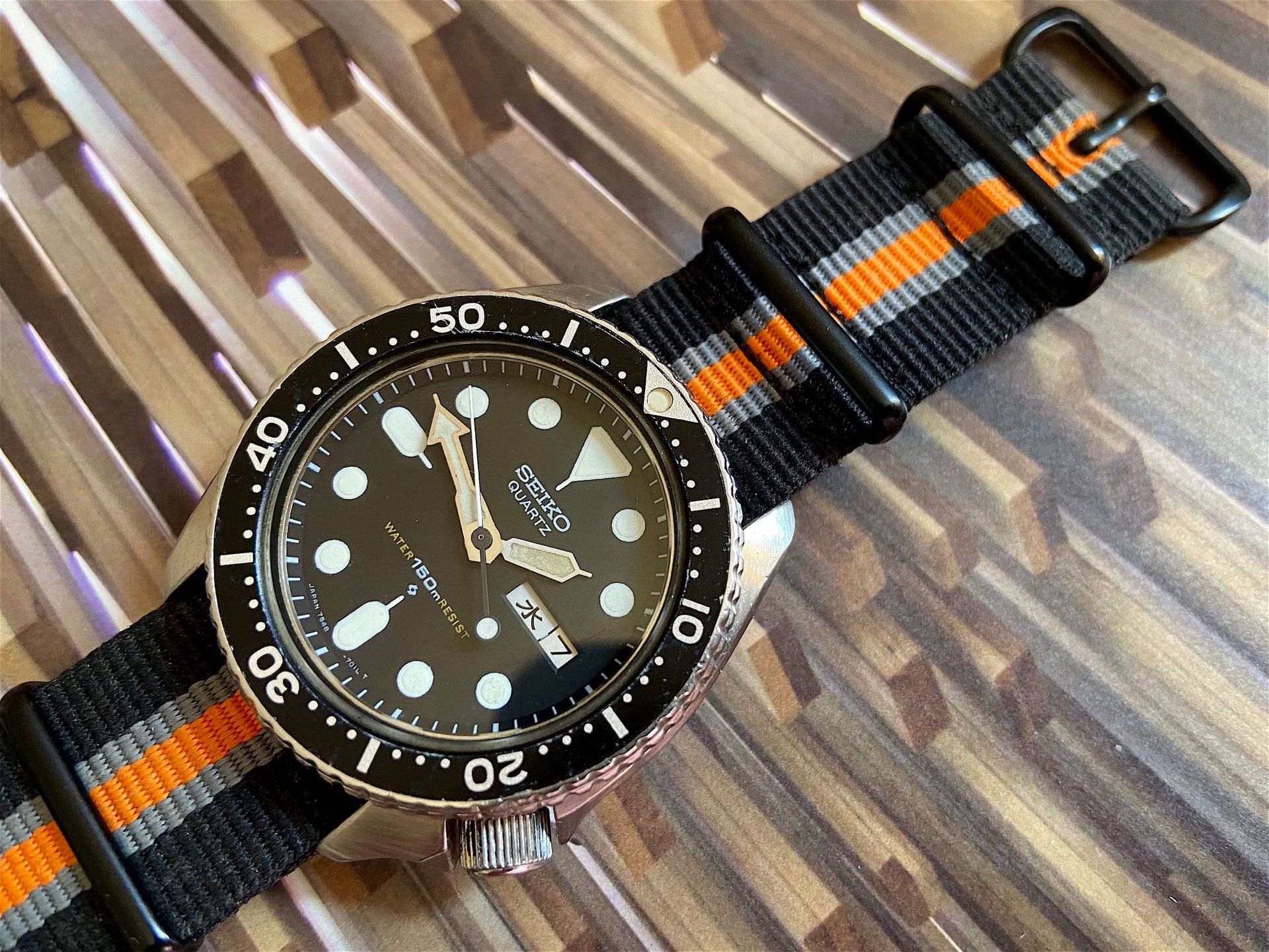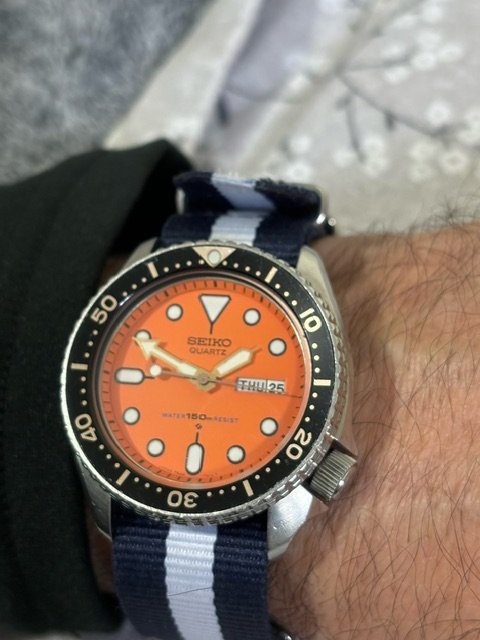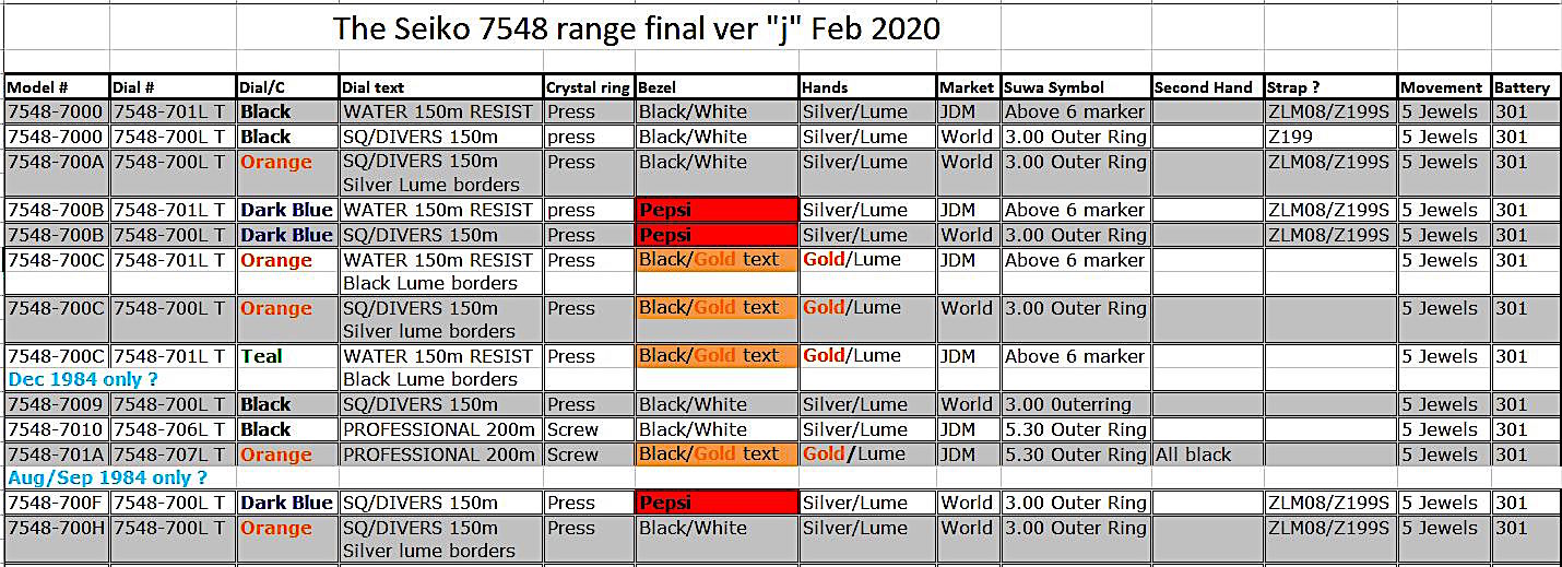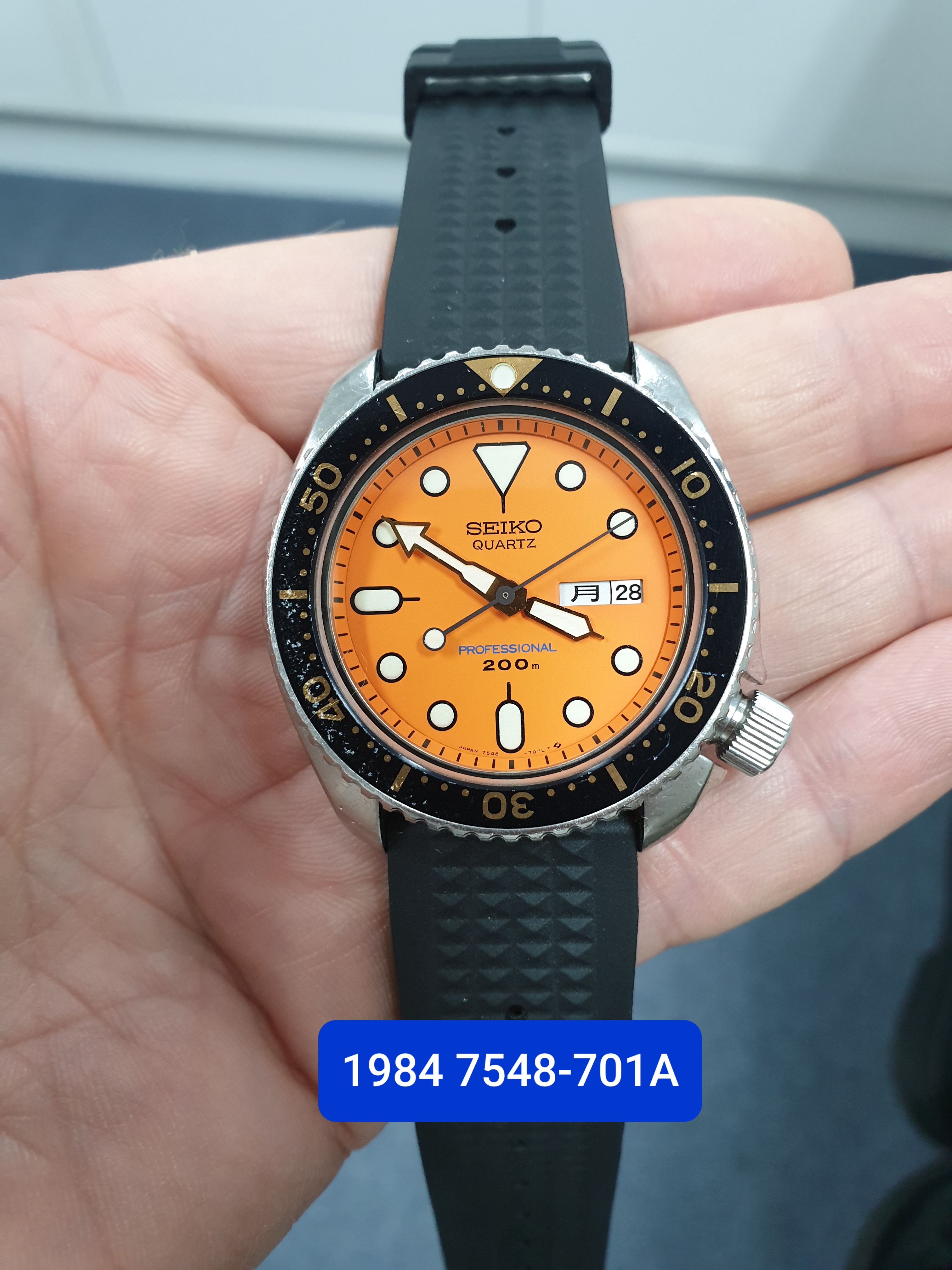 7548-700H Orange SQ dial with silver lume border and black bezel - maybe also non-SQ dial