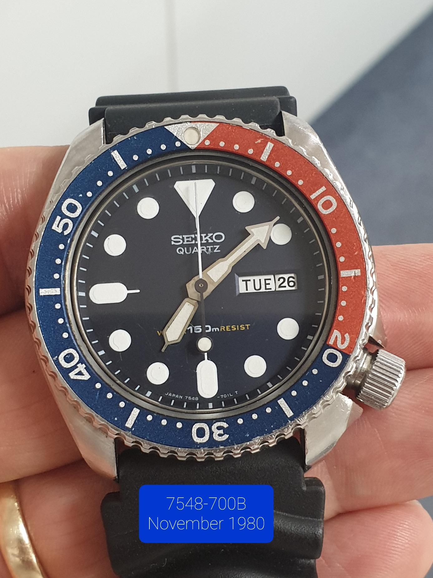 misc. In 1980 a SEIKO 6306-7000 JDM is priced at 25,000 Yen the SEIKO 7548-7000 was priced @ 35,000 Yen (40% more), in the same time period an OMEGA SEAMASTER AUTOMATIC DIVER ST 366.0858 " BABY PLOPROF " was priced @ 38,500 Yen in Japan.