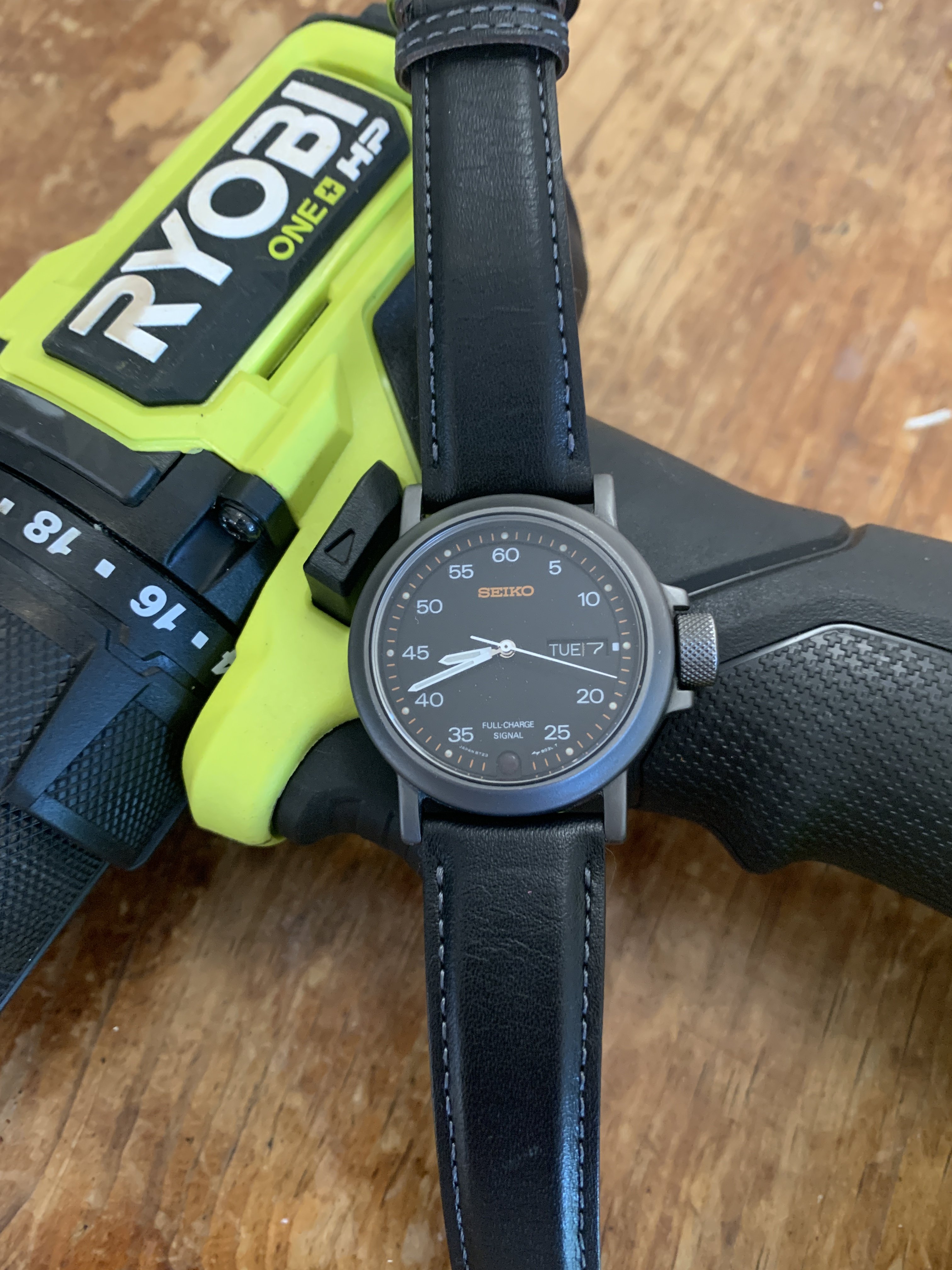 ·The Seiko 8T23 is a bit of an oddity. It's the grandfather of todays Kinetic line, but was not a sucess when it was released in the late 1980s because it took a hard three minutes of winding to charge the capacitor. With the invaluable help of @krogerfoot, I managed to find one on Yahoo Japan, but the vendor had replaced the OEM rechargable capacitor with a battery. Seiko doesn't make the capacitors any more, but found a place in France that still had some residual stock.
