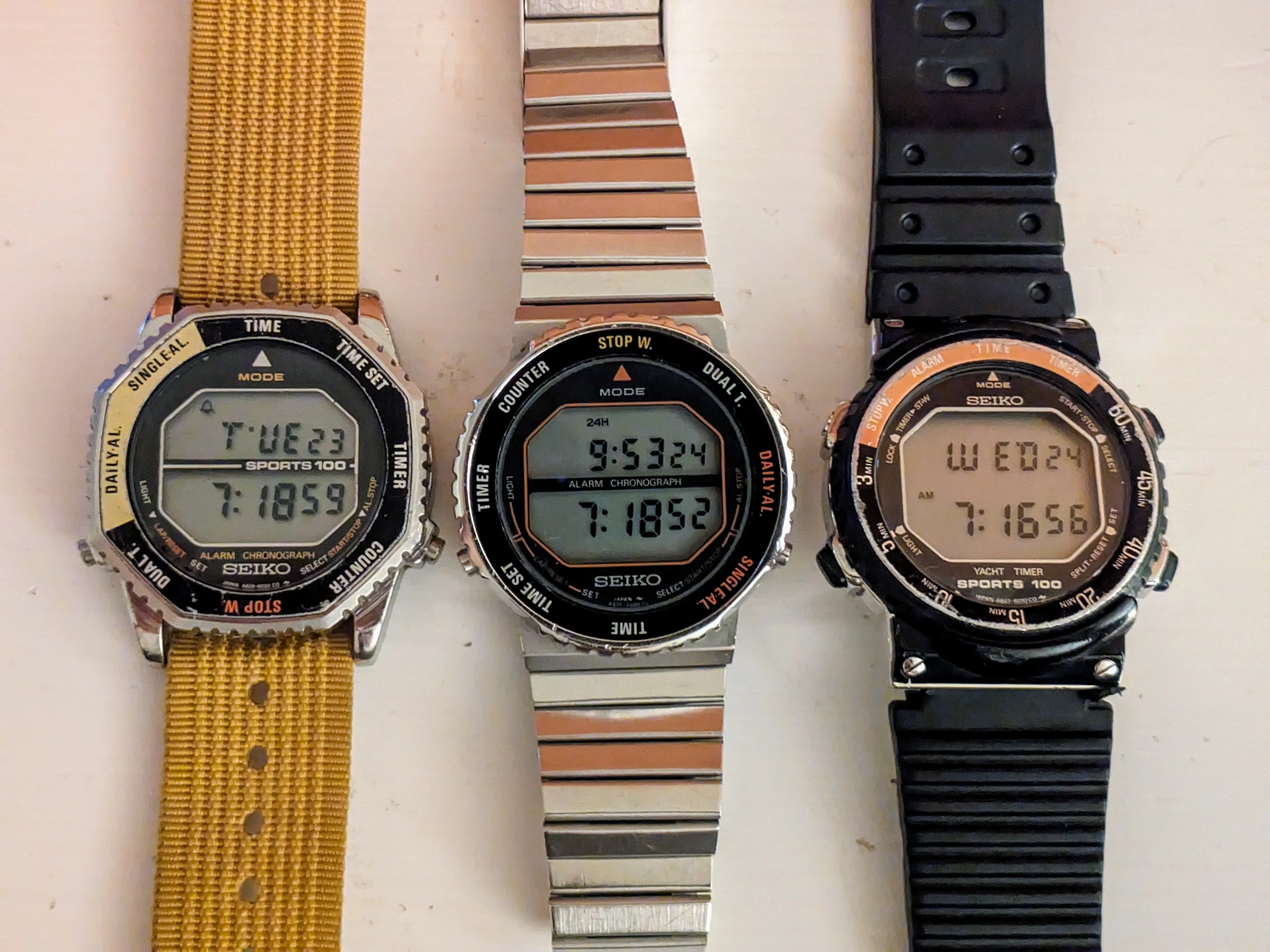 Three digital watches recall the classic '80s Seiko "Astronaut" A829-6029